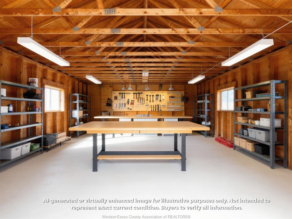 • Detached workshop and 2.5 car garage provide ample storage space.