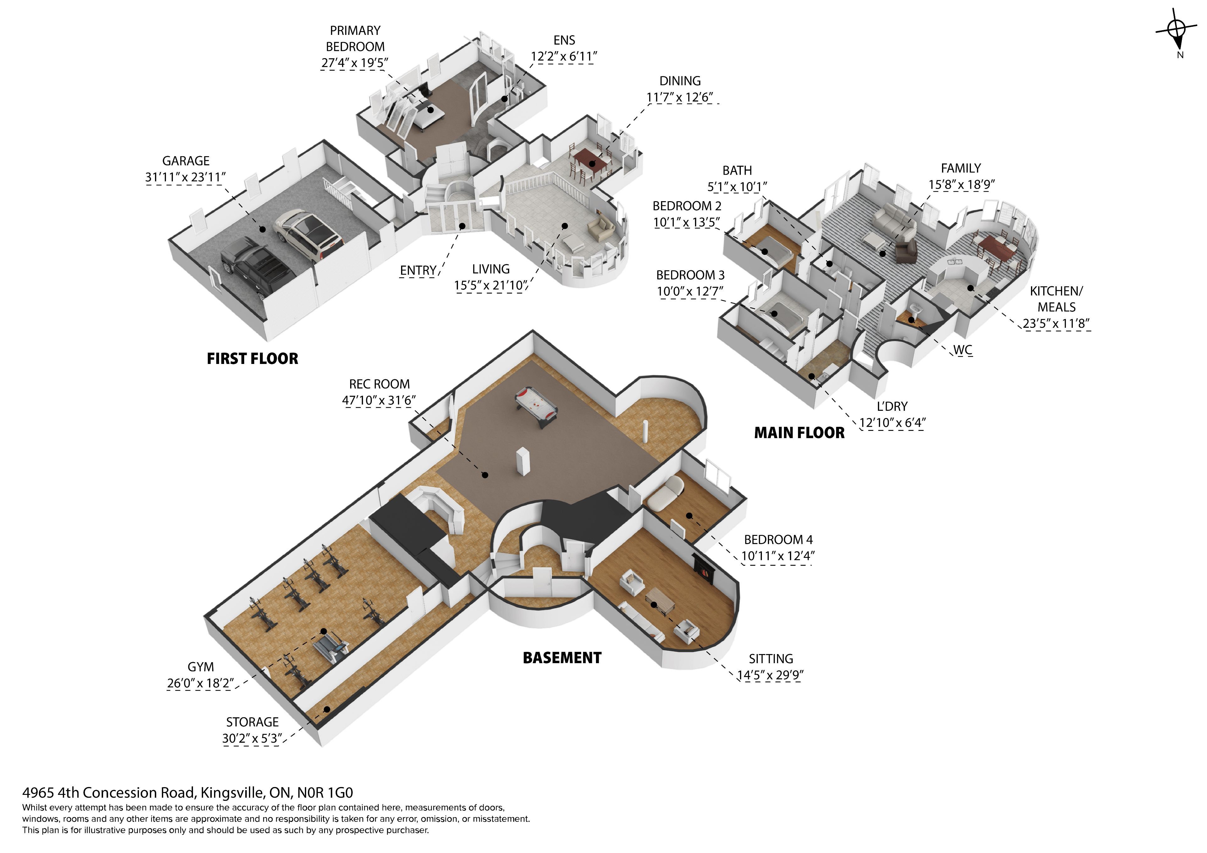 • Lower level has gym, party room, and bonus spaces for entertainment.