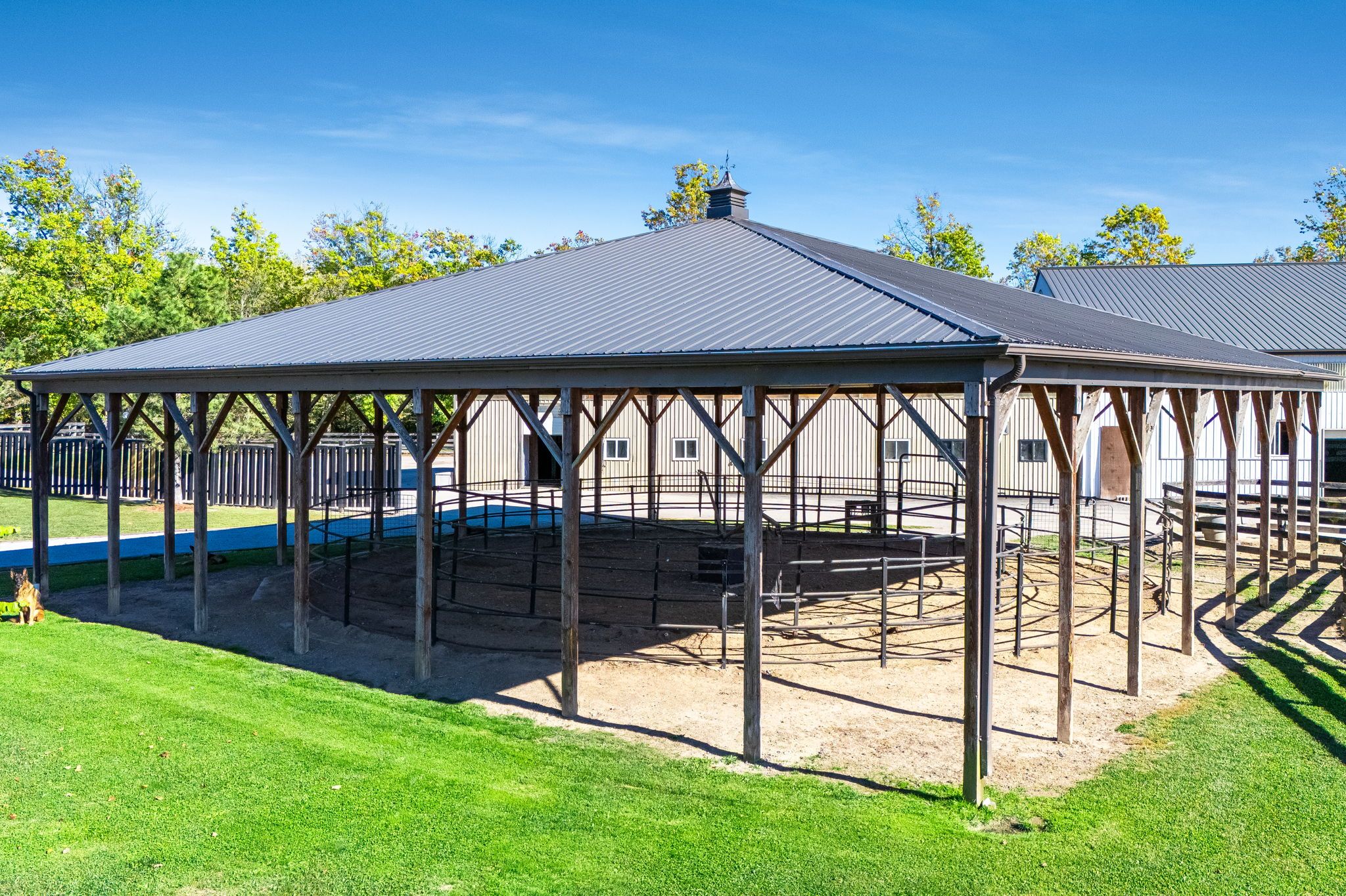 • Indoor arena features roll-up doors for excellent ventilation and light.