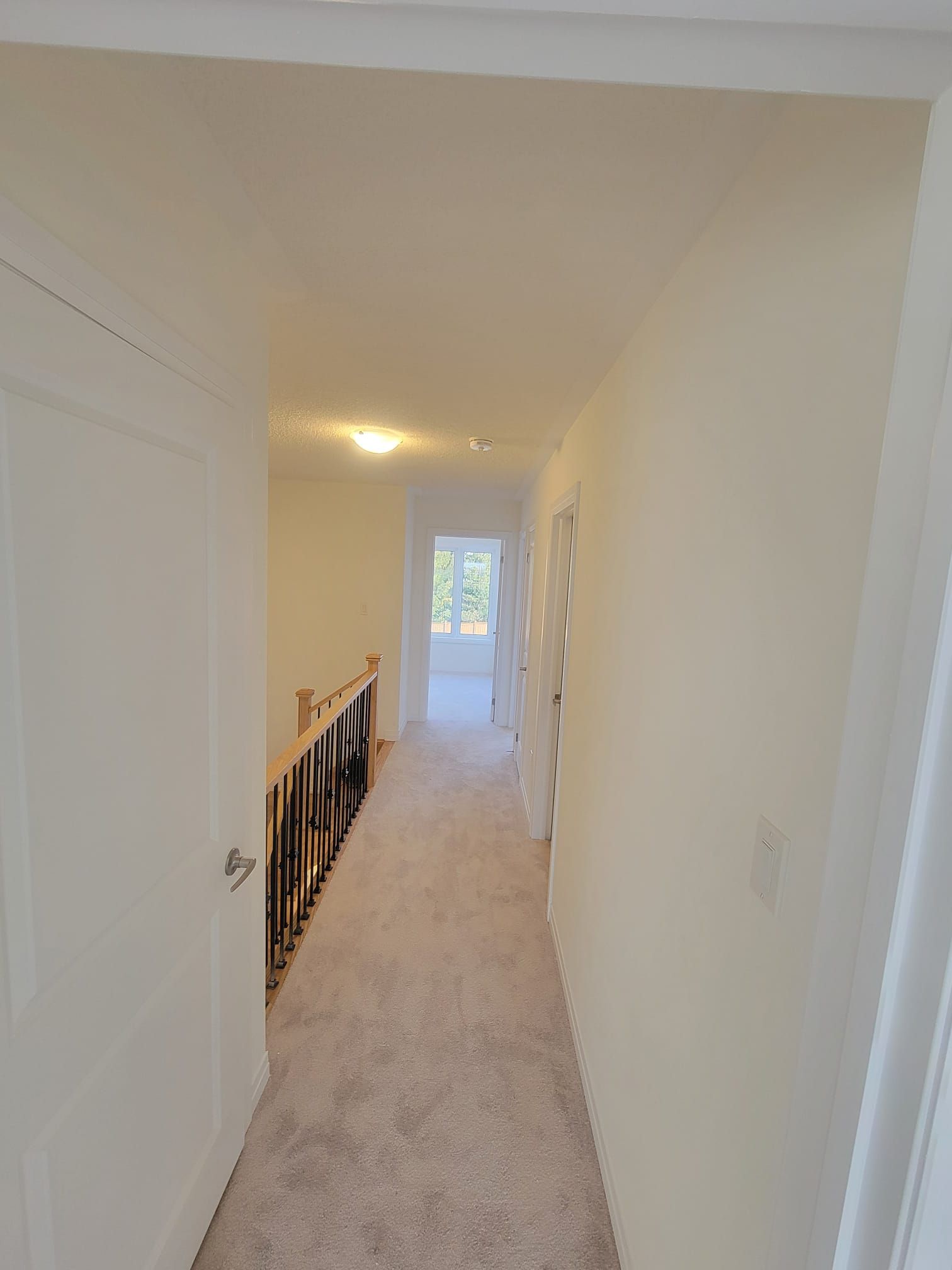 Welcome to this brand new move-in ready 3-bedroom, 3-bathroom townhome by cachet homes. The aspen style home combines modern design with a functional layout, to give a contemporary living with lots of light. Step from the garage door into a ample sized mud room. The main level offers a well lit open-concept living, dining, and kitchen, perfect for everyday living and entertaining, as well as a convenient 2-piece bathroom. This property features bright sun filled rooms and countless interior upgrades including natural hardwood flooring and soaring 9ft smooth ceilings on the main level. Entertain guests in style in the spacious living area, or gather around the stunning kitchen which including quartz countertops, marble back splash and extended high upper cabinets for ample soft close cabinet doors and drawers, waste recycle pull out and lots more. Take the oak stairs case upstairs to the upper floor which has a spacious primary suite which includes a 4-piece ensuite and an impressively large oversized walk-in closet. Two additional bedrooms, a full bathroom, and second-floor laundry with generous storage complete this level. This never lived in property is a stunner. Ideal for families and working professionals alike, this home features two parking spots (garage + driveway) and comes fully equipped with appliances and a garage door opener. Minutes from highway 401.
