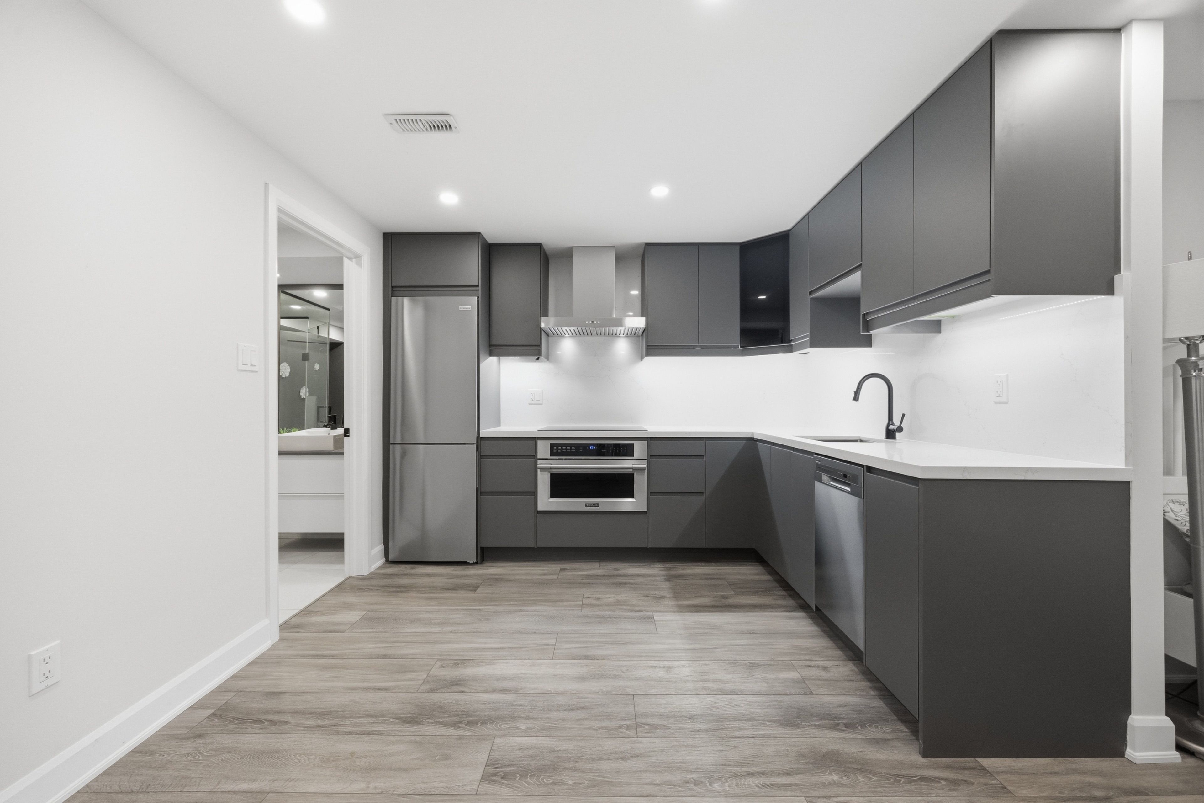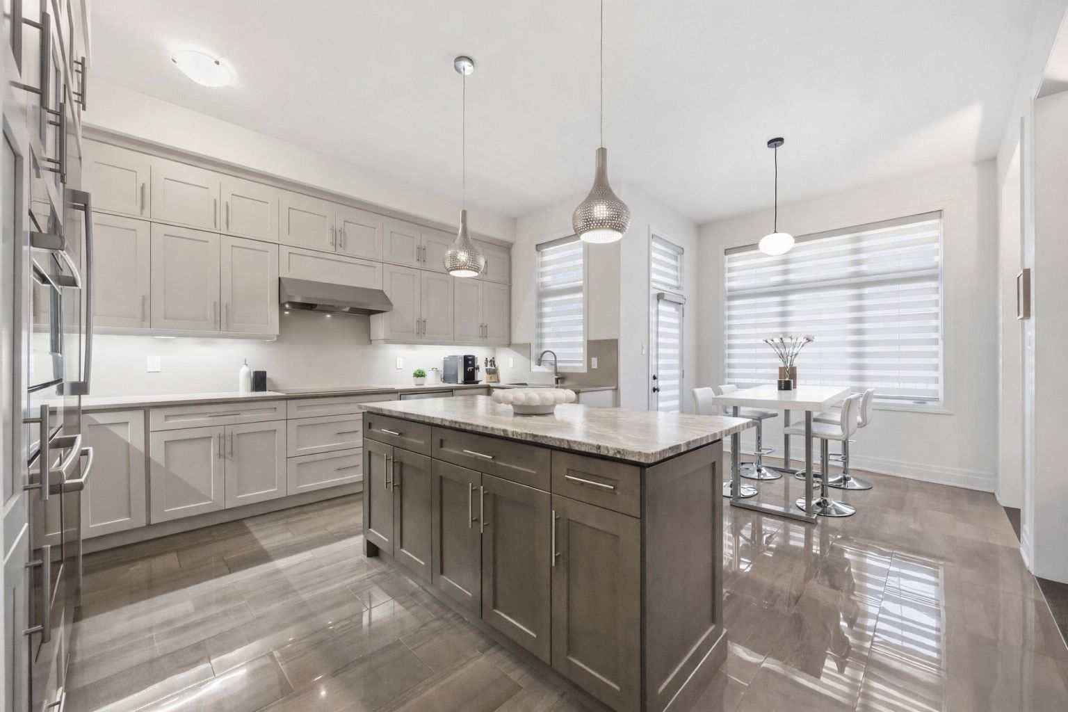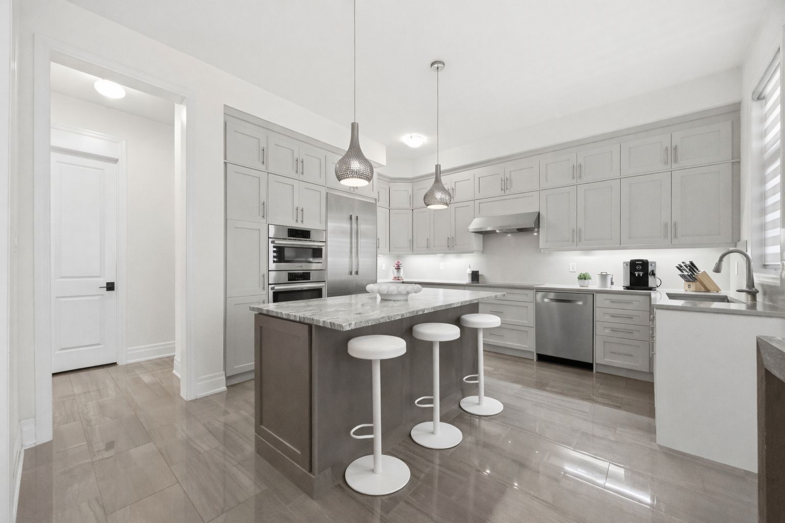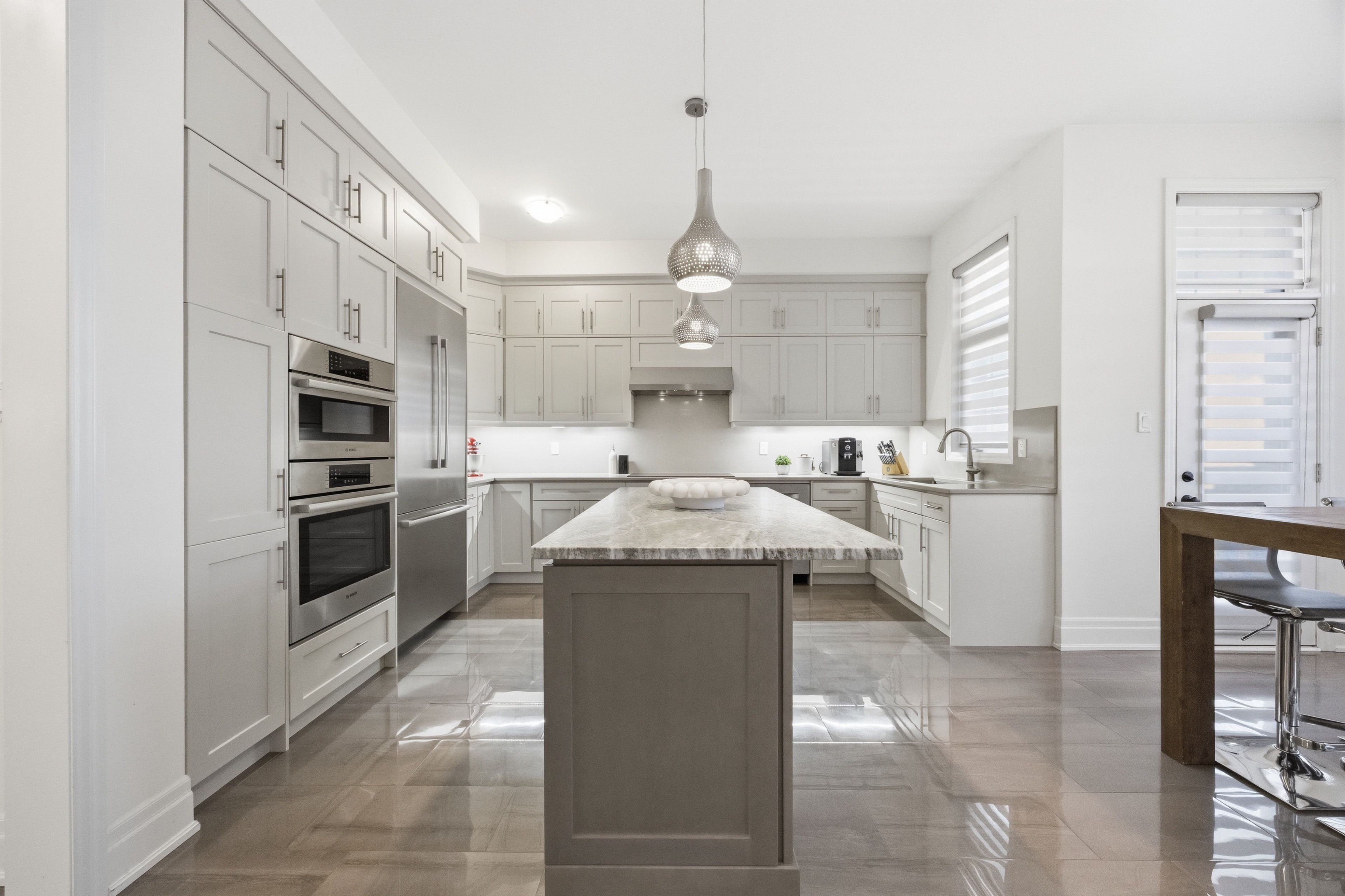 • Spacious chef's kitchen with premium appliances and oversized marble island.