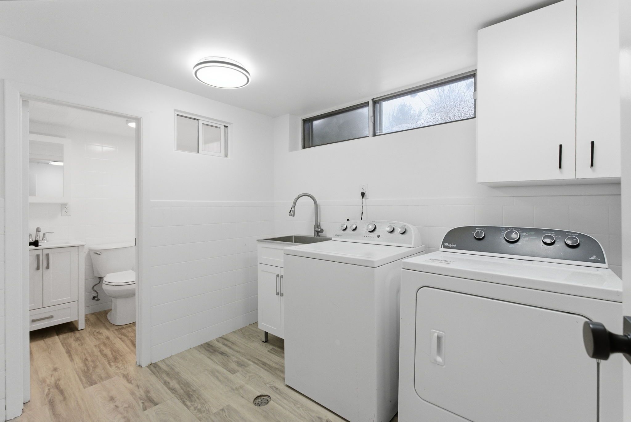 Turnkey fully furnished open concept layout combining living and dining with a wet-bar. With almost 1200sqft of living space and large windows exuding natural light throughout you won't feel like you are in a basement. Newly renovated kitchen with brand new stainless steel kitchen appliance. Two full 4-piece bathroom with exclusive use laundry. Access to a large shared covered backyard patio and exclusive single laneway parking space in the garage. With a walk score of 96 you are conveniently located in one of the hottest toronto areas with nearby shops, restaurants, transit, parks, place of worship and so much more!! Don't miss your chance to make this your new home. Shared 1. 5gb high speed internet included. Tenant pays 25 percent of all utilities(gas, water and hydro)