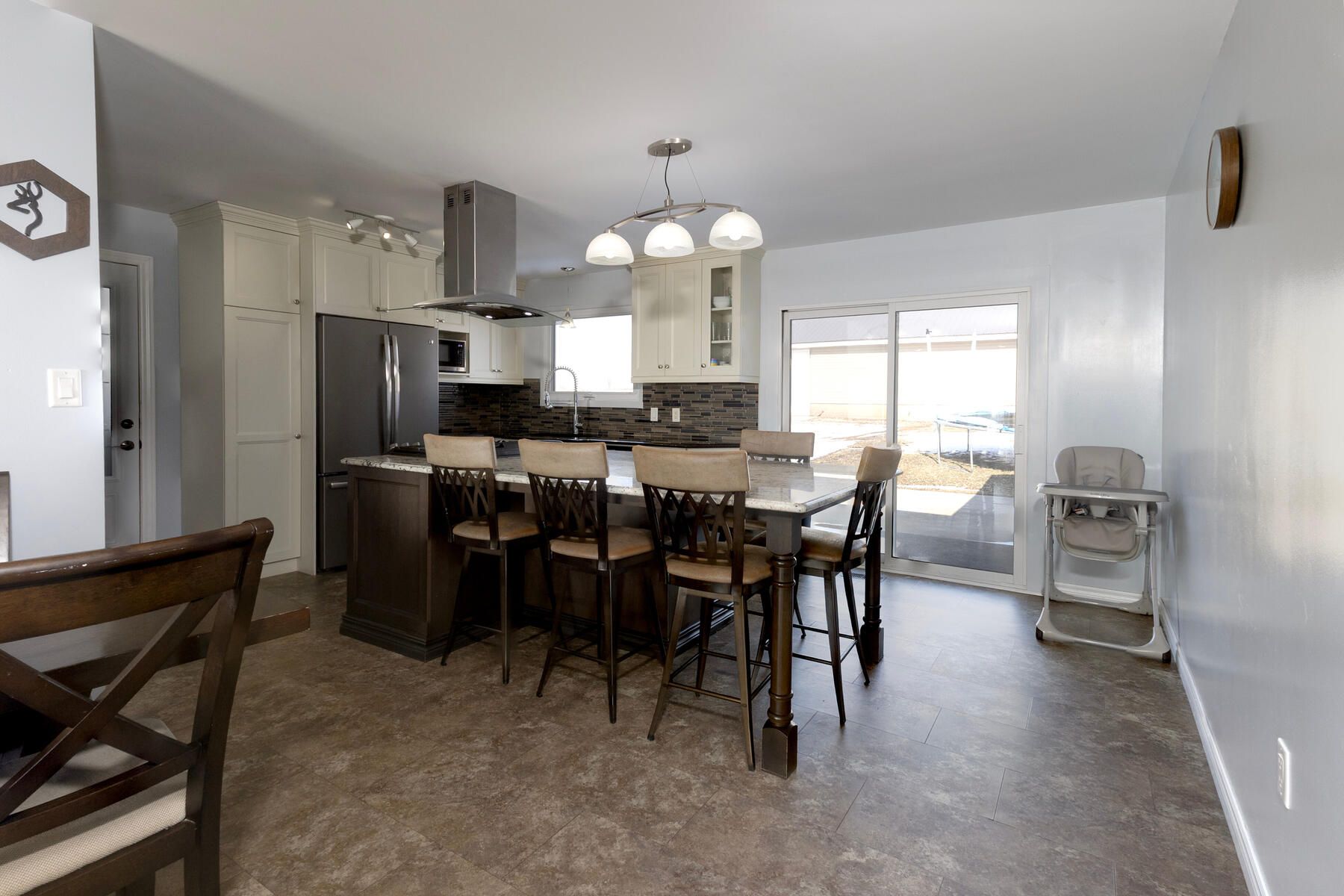 • Recently updated country kitchen with granite island and modern appliances.