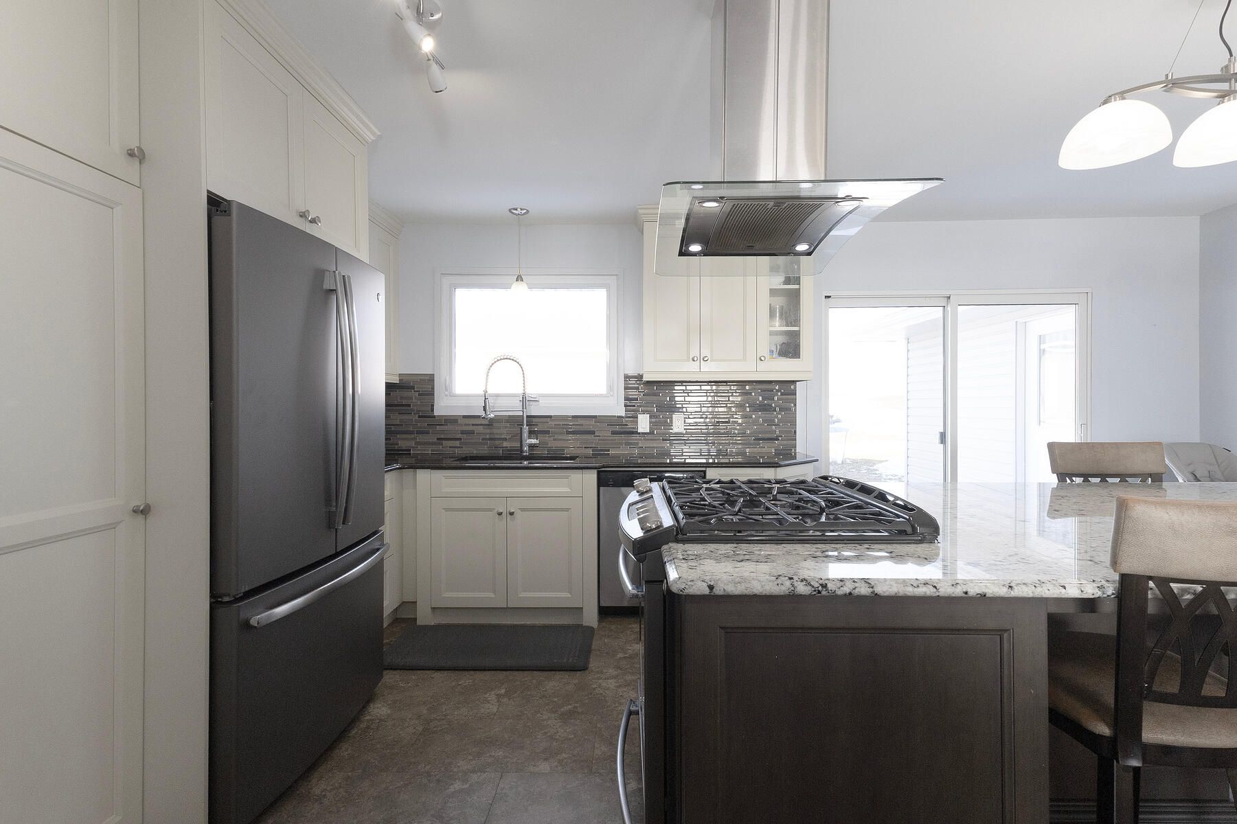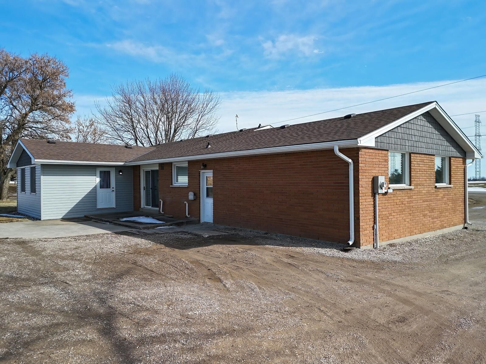 This impressive brick ranch, situated on nearly an acre and surrounded by peaceful farmland, features an attached double garage and a separate shop. The main floor boasts a spacious country kitchen installed in 2019, complete with a large granite island, built-in oven, overhead range hood, and ample cupboard space. Patio doors lead from the kitchen to a patio overlooking the fields. The layout includes a bright living room, an oversized master bedroom with its own patio access, two additional bedrooms, a renovated four-piece bathroom with granite counters, a two-piece bath off the entry, and main-floor laundry. Key updates include shingles , windows and doors (2023), kitchen (2019), siding in the back of the house (2022) , soffit , fascia and eaves troughs (2022)as well as a furnace and central air system installed (2020). A separate entrance installed through the garage leads to a 2 bedroom granny flat, which was completely renovated from top to bottom in 2023. This unit features its own laundry, a new kitchen with dishwasher, and a four-piece bathroom. The exterior includes a 22x66 shop with two entries, including a 10x12 foot roll-up door. The main shop is heated with an overhead propane furnace, and is equipped with built-in cupboards, a workbench, and 220-amp service. Don't miss this opportunity to own your private country oasis.