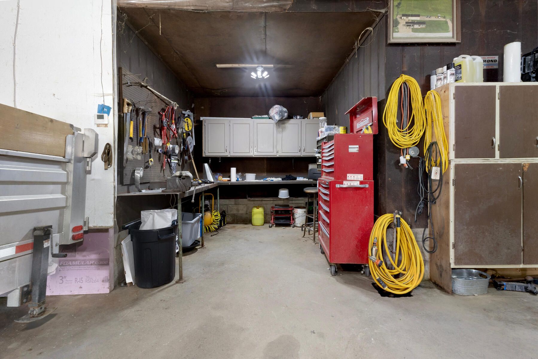• 22x66 heated shop with workbench, perfect for hobbies or projects.