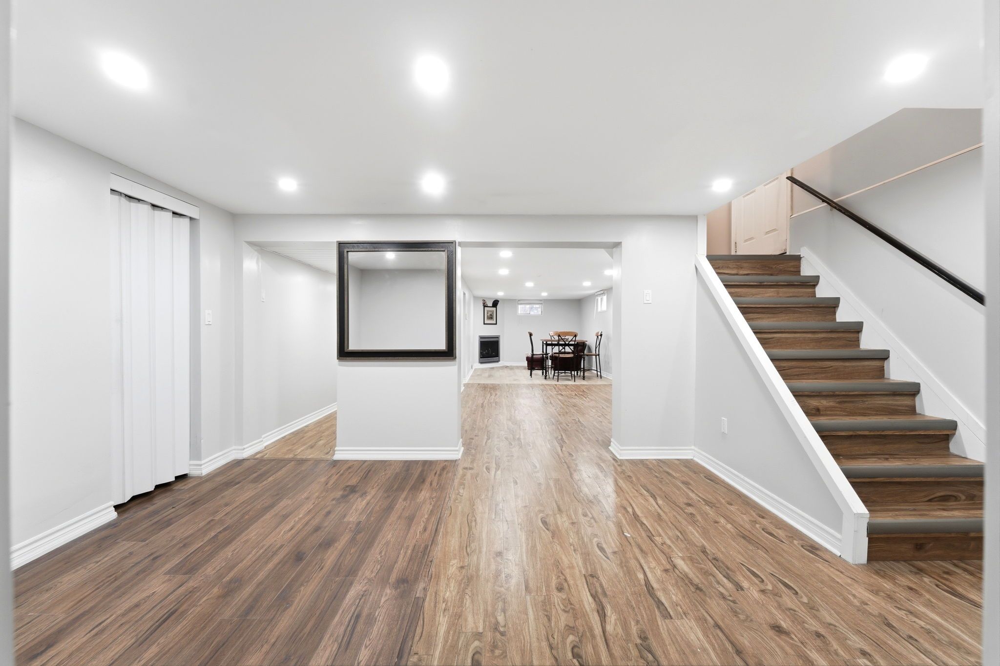 • Finished basement with a rec room, gas fireplace, and additional bathroom.