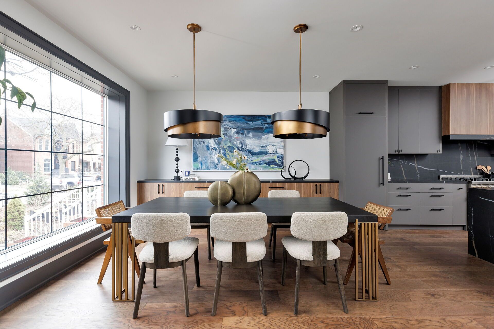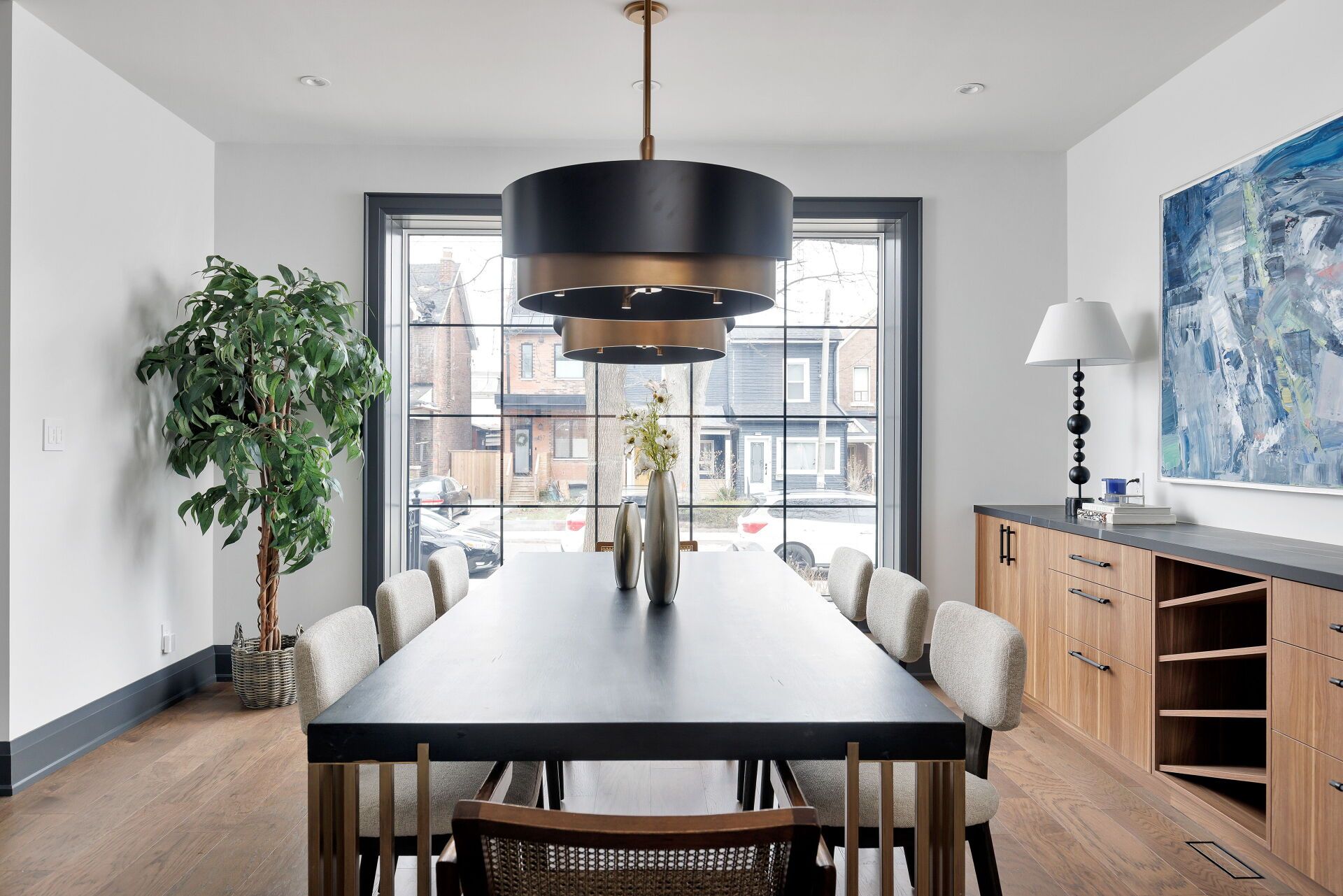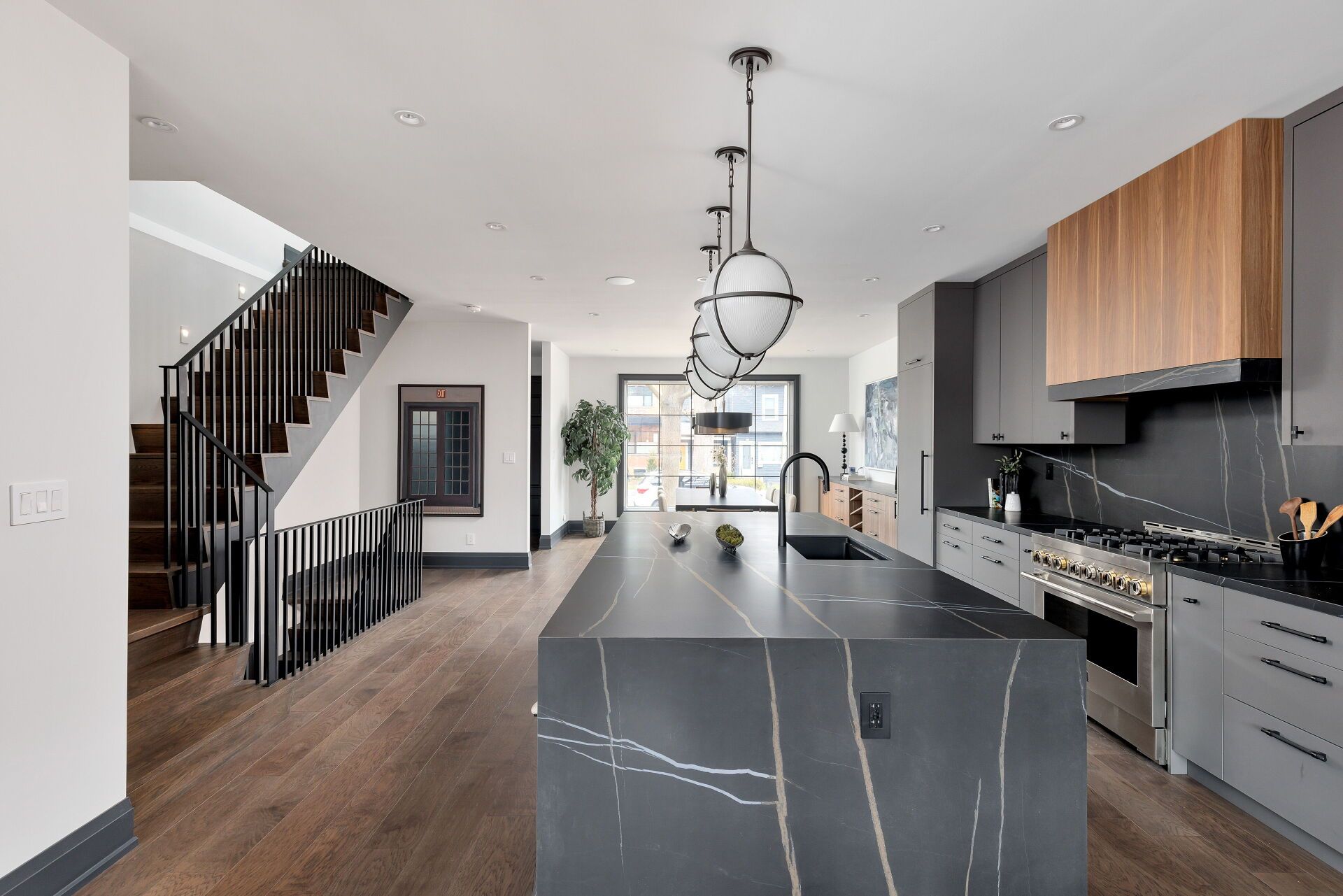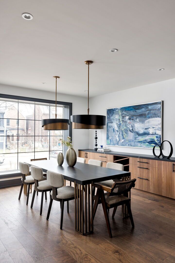 Toronto's take on a new york-inspired industrial soft loft. A rare detached family home offering nearly 4,500 sq ft of living space across four levels, with approximately 3,100 sq ft above grade, set on a 27. 98-ft wide lot. Neighbourhood-defining interior design by glen peloso. The bright, wide-plank main level features an east-facing dining area flooded with natural light, flowing into a custom chef's kitchen with oversized island, separate built-in refrigerator and freezer, bespoke lighting, and exceptional storage. Factory-inspired glass walls and double doors lead to an elegant family room with fireplace, custom built-ins, and a full wall of glass opening to a large outdoor deck. A rear mudroom with built-in seating and storage adds everyday functionality. Powder room finished with custom new york streetscape wallpaper. The primary retreat occupies the entire third floor, introduced by a dramatic landing with an east-facing sunroom wrapped in floor-to-ceiling windows, complete with coffee station and wet bar. Step out to a city-view observation deck with open eastern exposure. The primary bedroom features abundant natural light, and fireplace, complemented by a spa-like ensuite and an exceptional walk-in dressing room with centre island, skylight, and extensive shelving. The second floor offers a large bedroom with private 4-pc ensuite, two additional generous bedrooms with balcony access, a full laundry/utility room, and an additional 4-pc bath. The lower level spans approximately 1,200 sq ft, featuring a substantial recreation room, glass-enclosed wine cellar, nanny or guest suite, 4-pc bath, and cantina. Large 2. 5-car garage with laneway access. Dual hvac systems.