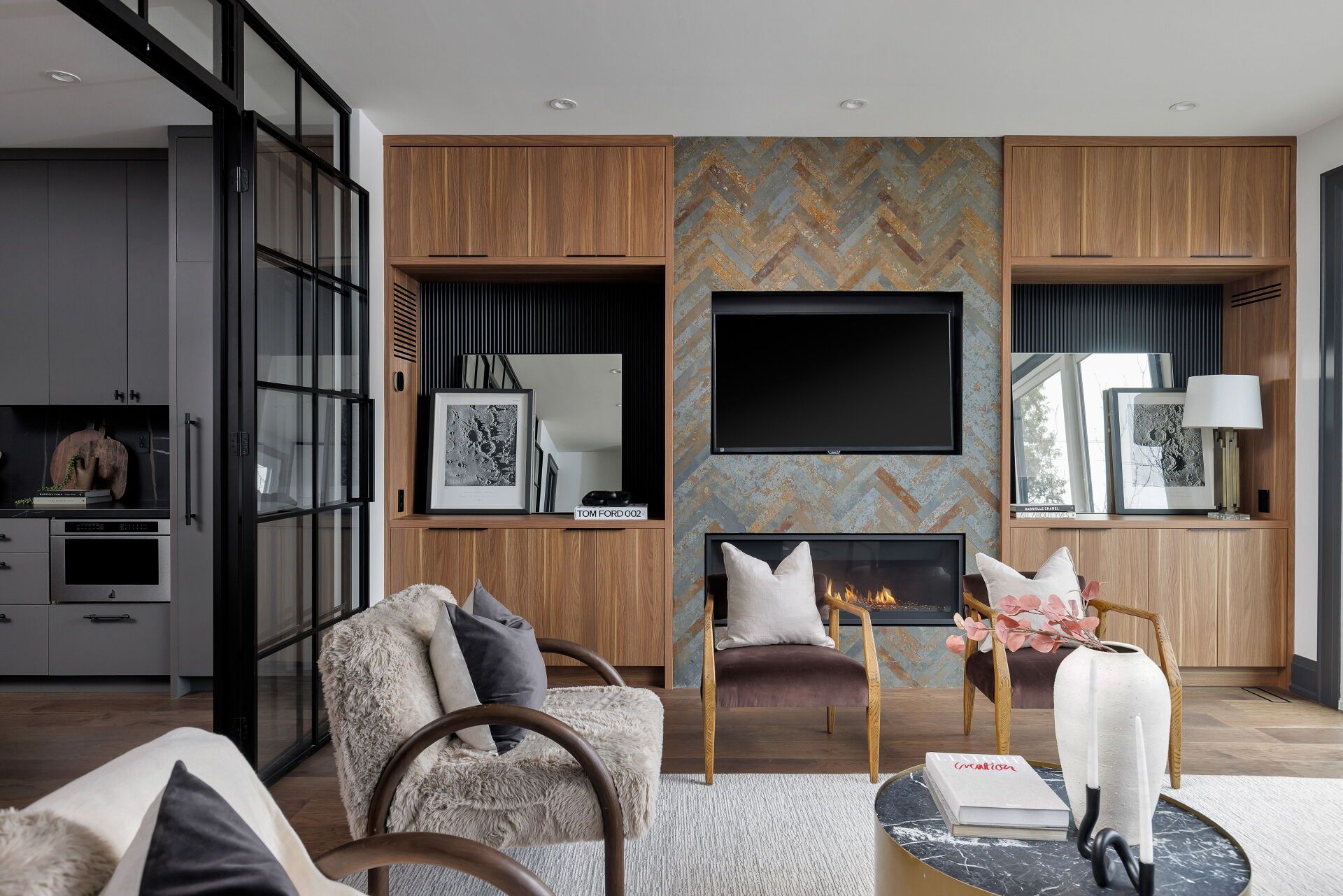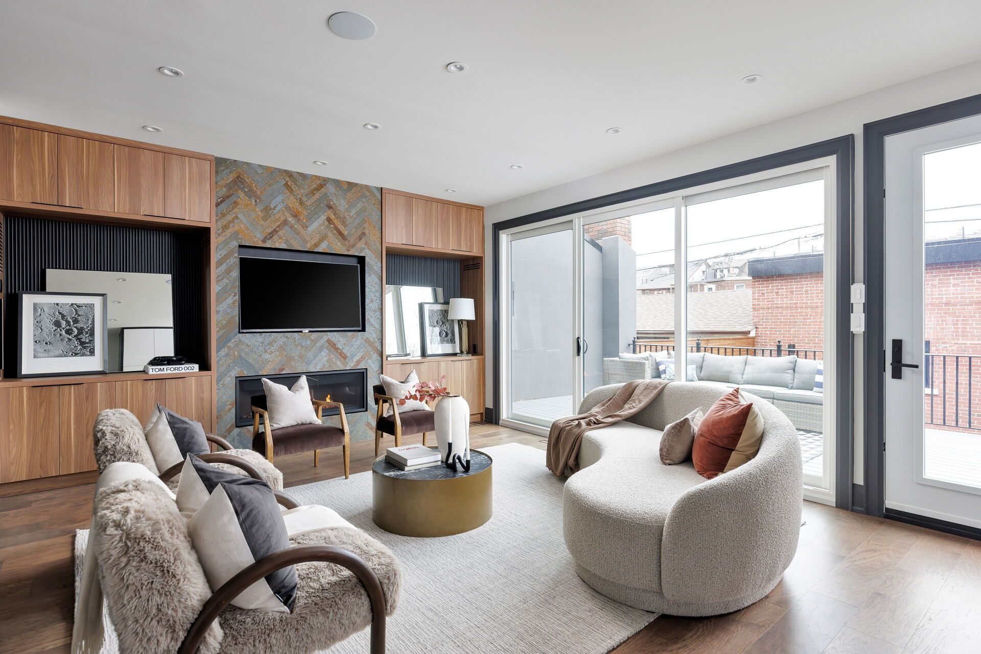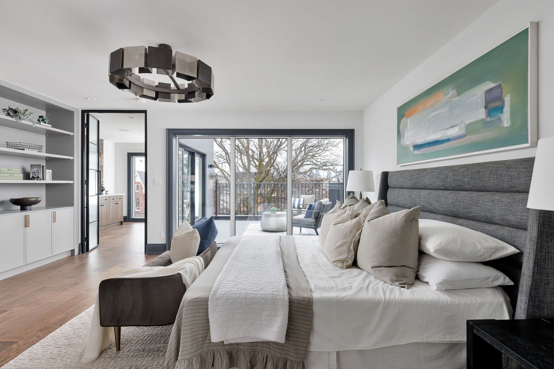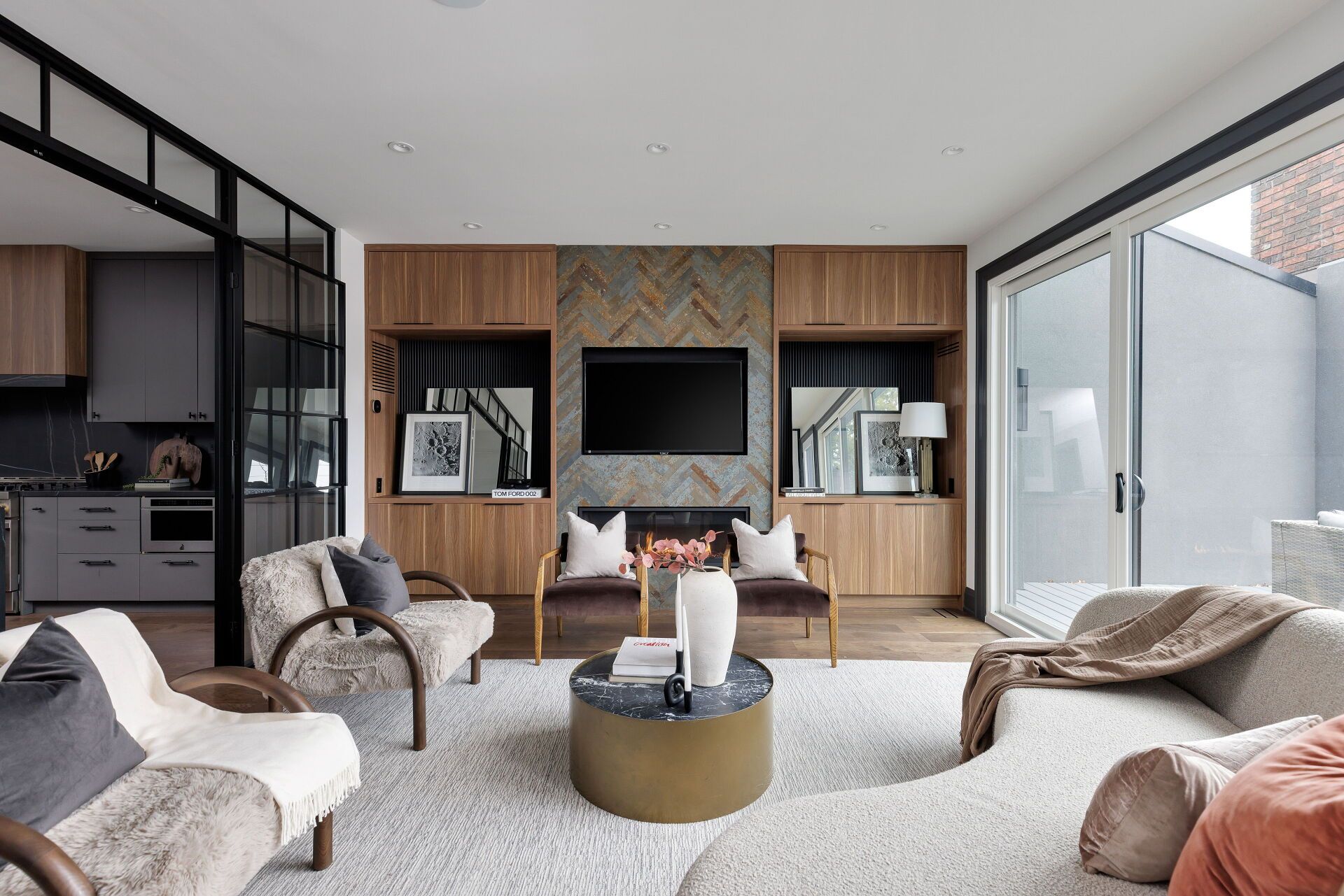 Toronto's take on a new york-inspired industrial soft loft. A rare detached family home offering nearly 4,500 sq ft of living space across four levels, with approximately 3,100 sq ft above grade, set on a 27. 98-ft wide lot. Neighbourhood-defining interior design by glen peloso. The bright, wide-plank main level features an east-facing dining area flooded with natural light, flowing into a custom chef's kitchen with oversized island, separate built-in refrigerator and freezer, bespoke lighting, and exceptional storage. Factory-inspired glass walls and double doors lead to an elegant family room with fireplace, custom built-ins, and a full wall of glass opening to a large outdoor deck. A rear mudroom with built-in seating and storage adds everyday functionality. Powder room finished with custom new york streetscape wallpaper. The primary retreat occupies the entire third floor, introduced by a dramatic landing with an east-facing sunroom wrapped in floor-to-ceiling windows, complete with coffee station and wet bar. Step out to a city-view observation deck with open eastern exposure. The primary bedroom features abundant natural light, and fireplace, complemented by a spa-like ensuite and an exceptional walk-in dressing room with centre island, skylight, and extensive shelving. The second floor offers a large bedroom with private 4-pc ensuite, two additional generous bedrooms with balcony access, a full laundry/utility room, and an additional 4-pc bath. The lower level spans approximately 1,200 sq ft, featuring a substantial recreation room, glass-enclosed wine cellar, nanny or guest suite, 4-pc bath, and cantina. Large 2. 5-car garage with laneway access. Dual hvac systems.