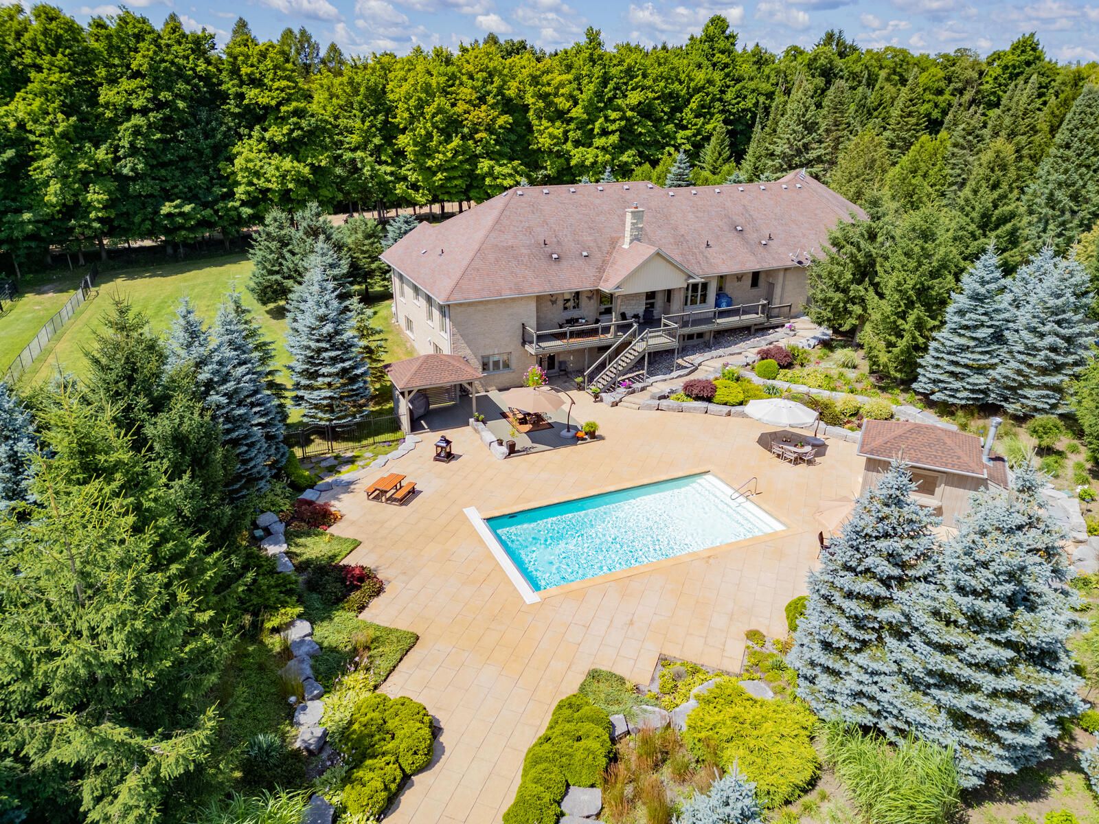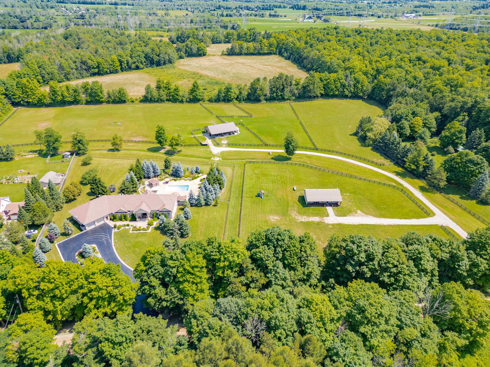 Welcome to this stunning multi-generational country property situated on 44 acres near acton. Enter the main house through automated electronic front entry gates. Features of the main house include nearly 5000 sq. Ft. Of luxury living. Maple kitchen w/ granite countertop and backsplash overlooking a large eat-in area with walk-out to large deck overlooking the pool and backyard. Thermador and miele s/s appliances. Separate and formal open-concept dining room. Open-concept living room w/ cathedral ceiling and wood burning fireplace. Main floor office. Primary bedroom w/ walk-in closet 4 pc ensuite and walk-out to deck overlooking the 18 x 36 heated salt water pool w/ electric pool cover. Main floor laundry and a second laundry in the basement. Huge 9 car attached garage with access to the house and backyard. Fully finished walk-out basement set up as an in-law suite with full kitchen with granite countertop and centre island, large and bright bedroom with 3 pc semi-ensuite bath, , living , dining and games room and tons of storage. Gorgeous backyard with extensive wrought iron fencing. Multiple dining areas. 10 x 10 pool cabana. Approximate 4000 sq. Ft. Of stone decking with extensive landscaping and stunning gardens. 12 zone, 60 head sprinkler system for front and rear gardens. New roof 2025. 30 x 60 gara farm structures barn with 6 system fencing stalls, separate tack room and large hay storage area. 5 large oak-board paddocks with room for more and a separate driveway to the barn. Lots of room to add an indoor arena if desired. Updates include new geo-thermal furnace in 2022, new pool pump 2024, new pool heater and chimney 2023, miele dishwasher 2024, miele induction stove-top and wine fridge 2023. Generator for the full main house. The secondary dwelling features 3 +2 bedrooms. 2. 5 baths, partially finished basement. Main floor laundry. Large eat-in kitchen. Separate septic system and drilled well. Propane furnace & central air conditioning. Built in 2018.