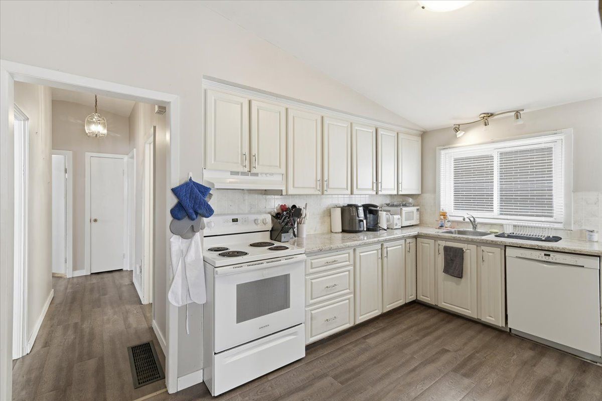 Lovely well maintained bright northend brick bungalow, quiet super low traffic street close to parks, trails, public transit, shopping etc., vaulted ceilings on the main floor. Front, side & rear walkouts - the side door is at the top of the basement stairs, 3+2 bedrooms, (dining room converted to 3rd bedroom - easily converted back if desired), partially fenced yard, deck, he gas heat + central air, updated 5pc bath with new double sink vanity on main, 3 pc bath downstairs with shower, includes 5 appliances. Lots of storage space. Other recent updates also include a new high efficient gas furnace, new windows + basement egress window added, new carpet downstairs, new eavestroughs, updated appliances +++ view the virtual tour, photo gallery, mapping & floor plans under "virtual tour" link.
