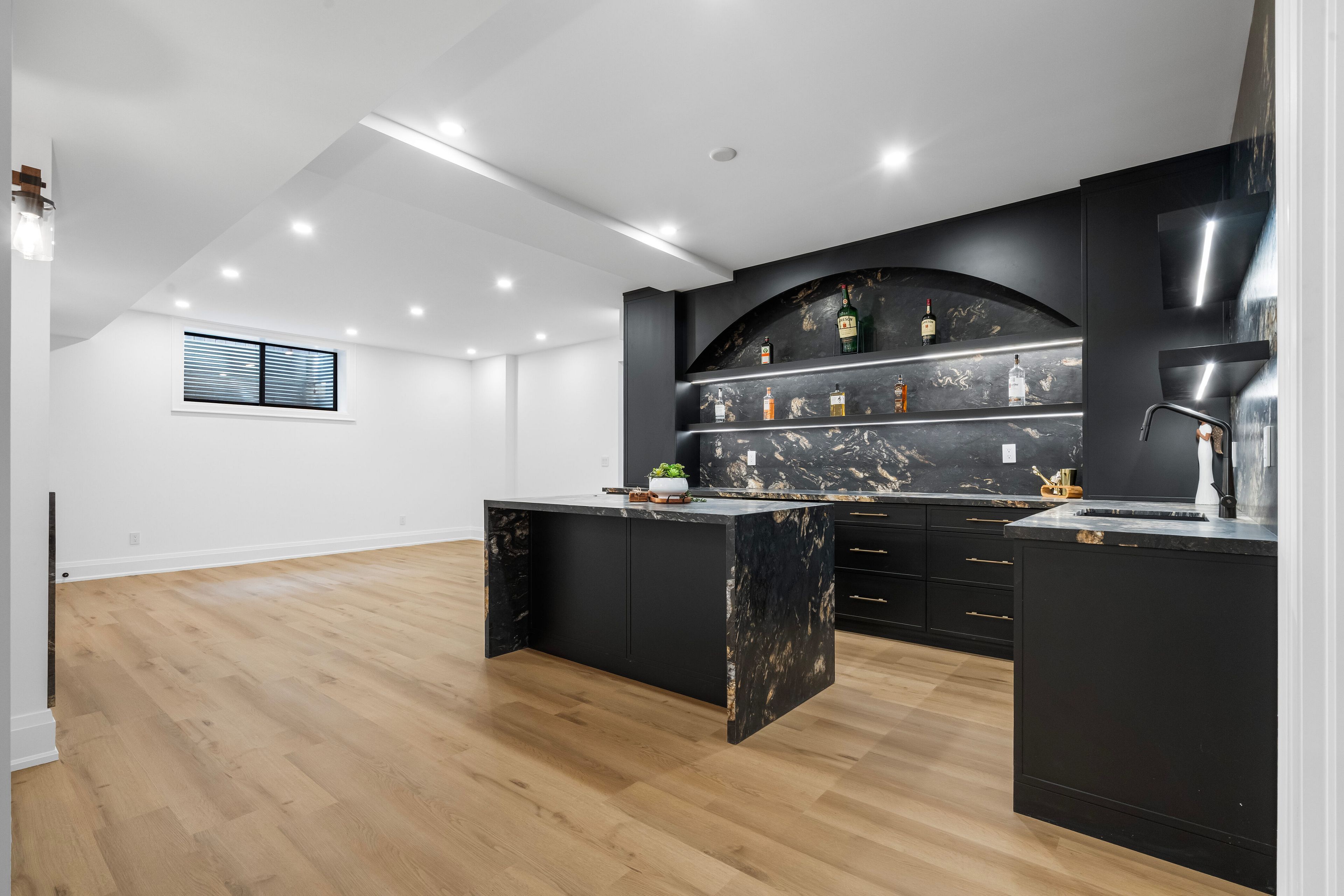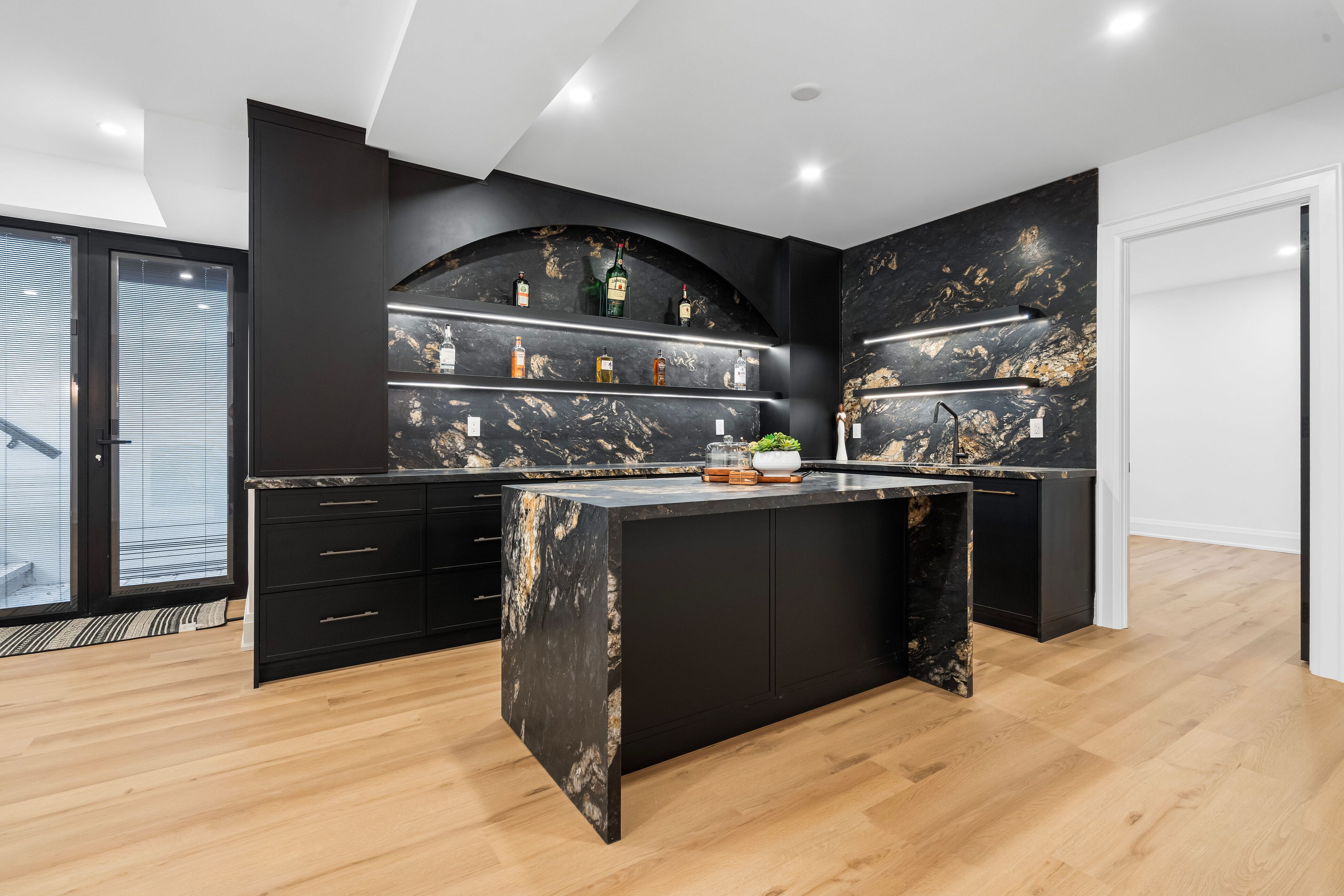 • Finished lower level with a home theatre, sauna, and wine bar.
