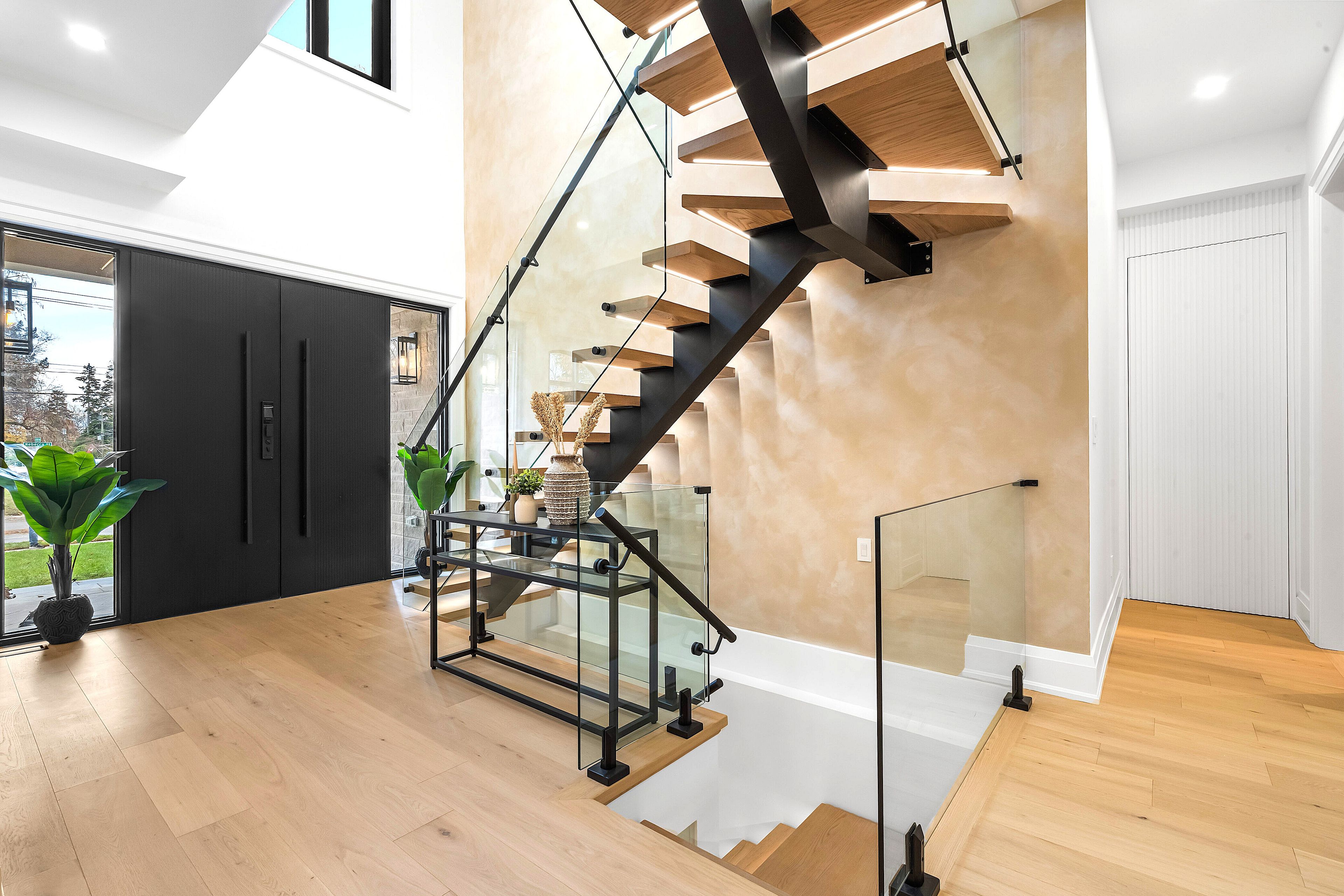 You will forget everything you know about luxury living in oakville after visiting this masterpiece. Just walking distance from lake ontario, this beautiful detached home on a premium lot offers a level of design, craftsmanship and modern elegance rarely seen in the market. Thoughtfully custom built in 2025 with over 5,000 sq. Ft. Of refined living space, the residence showcases a striking stone & stucco facade, aluminum windows, metal/flat roofing, and an impressive fluted double-door entry that hints at the sophistication inside. With 10-ft ceiling, engineered white oak floors, designer lighting, led-lit mono-stringer stairs, limewashed feature walls and expansive windows, every inch of this home radiates warmth and intention. The chef-curated kitchen features natural marble counters, sub-zero & wolf appliances, dual-tone cabinetry, a coffee/pantry room and a showpiece waterfall island-perfect for grand entertaining and daily luxury. The family room's sculpted stone fireplace, integrated speakers and full aluminum bifold doors create a stunning indoor-outdoor flow. Beside the dining area, a beautifully crafted glass-enclosed wine cellar with an aluminum frame adds an unforgettable touch of elegance-an architectural statement that elevates every gathering. Moving upstairs, the second level also features 10-ft ceiling and four spacious bedrooms, each with its own ensuite. The primary retreat impresses with double-door entry, his-and-her walk-in closets with led-lit custom cabinetry and a spa-inspired ensuite with marble finishes, rain shower, porcelain slab walls, heated towel rack and a standalone tub. The finished 9-ft ceiling lower level enhances lifestyle living with a sauna, home theatre, exercise room, marble-clad wine bar, guest bedroom, luxury bath, and large windows. Located minutes from appleby college, st. Thomas aquinas, w. H. Morden school, scenic trails, boutique shopping. This residence delivers an exceptional blend of location and luxury architecture.