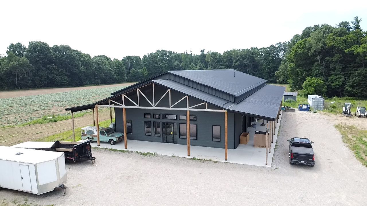 Secluded farm property with dream garage & house permit in place. Set on a peaceful country road, this unique and versatile farm property offers the perfect blend of seclusion, functionality, and future potential. Nestled on a private ravine lot backing onto a wooded area, this rare opportunity features workable land, natural bush, and scenic views ideal for those seeking space, privacy, and connection to nature. A major highlight is the custom-built garage/workshop, designed with the automotive enthusiast or serious hobbyist in mind. The building includes six 10x12ft garage doors and one 10x10ft door, there is 400-amp hydro service, it is fully insulated, all-led lighting throughout, 1 forced air furnace which heats the office, large work area, and accessible bathroom, additionally there are another 2 unit heaters and starlink internet. The exterior of the building features a 14ft covered overhang great for use of a patio or carport, a metal roof, and durable hardy board along the front of the building with metal along the sides. The shop is only a couple years old and thoughtfully constructed to serve multiple purposes from secure vehicle storage and workspace to entertaining under the large covered patio. A building permit for a residential home is already in place, with hydro and gas lines from the shop prepped and ready for hookup during construction. Whether you're looking to build your dream country home or simply expand on the existing infrastructure, the groundwork has been laid for your vision. This is more than just a lot, it's a turnkey rural lifestyle opportunity, ready for your custom home and whatever passions you bring with you.