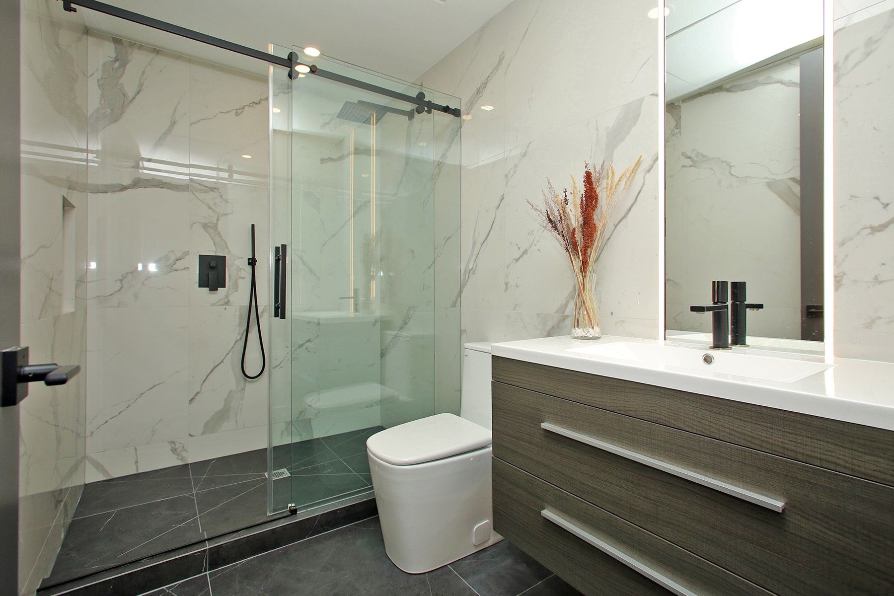 Be the first to enjoy living in this luxurious contemporary home designed with every kind of lifestyle in mind! With over 2000 sf, this newly constructed home can easily accommodate a large family of 6. The private front porch leads you to this 3 bed/2. 5 bath townhome. The open concept main floor is a great entertaining space, with dedicated living, dining and kitchen areas. Sunlight pours in through the triple glazed, thermally insulated windows revealing the large italian porcelain tiles and decorative fluted panels, creating a clean and contemporary feel. An electric fireplace provides warmth & create a visual anchor for the living area. The kitchen features a large peninsula with porcelain counters & the gorgeous backsplash provide a stunning backdrop. Custom millwork provide ample storage with the stacked washer/dryer secretly tucked away. A convenient powder room is located right on the main floor. Solid oak staircases lead to the upper levels with white oak hardwood running throughout the upper floors. On the second level are two large bedrooms served by a 3-piece bath. A den provides a family gathering area or a home office but can be easily converted into a fourth bedroom if desired. The third floor primary bedroom is a true retreat with a walk-in closet and 4-piece ensuite with double sinks. The walkout from the 3rd floor to the south-facing balcony allows for various outdoor activities. High-quality exterior finishes, including phenolic, powder-coated aluminum & composite fluted panels highlight the modern style of this building. Unbeatable location: 5 min to sherway gardens, 15 min to pearson, 20 min to toronto/mississauga financial districts, oakville border & yonge/sheppard. 24-hr lakeshore streetcar, go station nearby, excellent schools, community centre with swimming pool and a public library, grocery stores (farm boys & no frills), boutique shops and restaurants on the lakeshore, the beach and park on lake ontario, and nature trails at your doorstep.