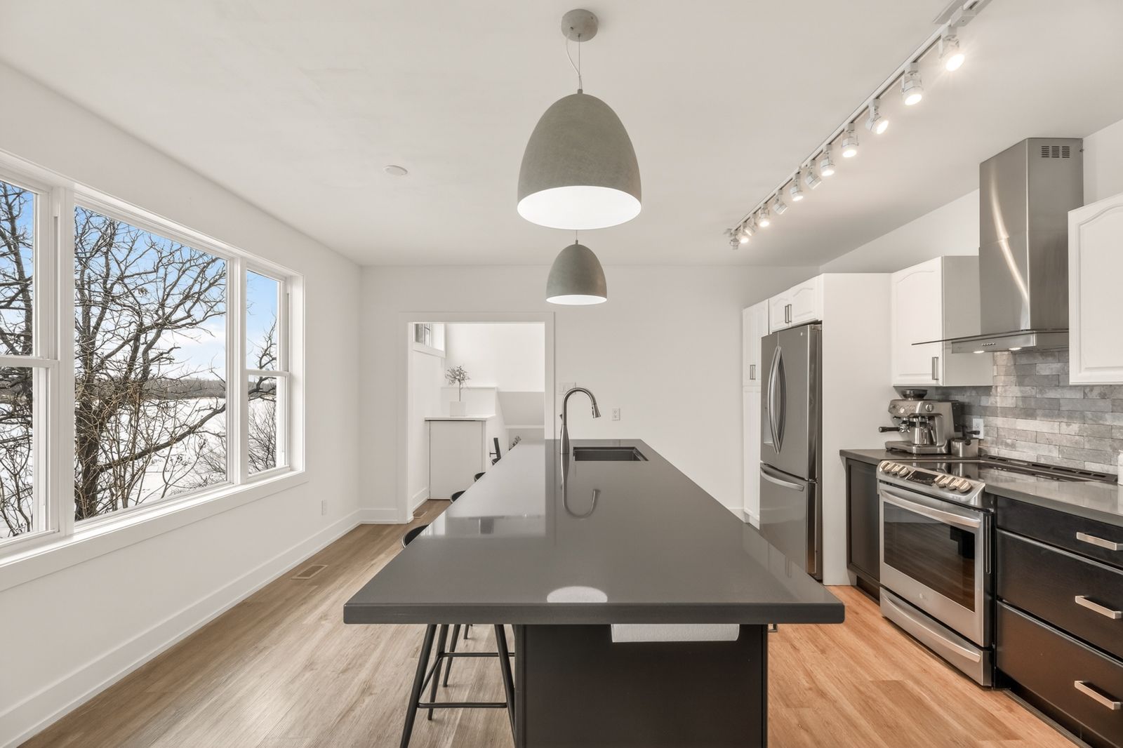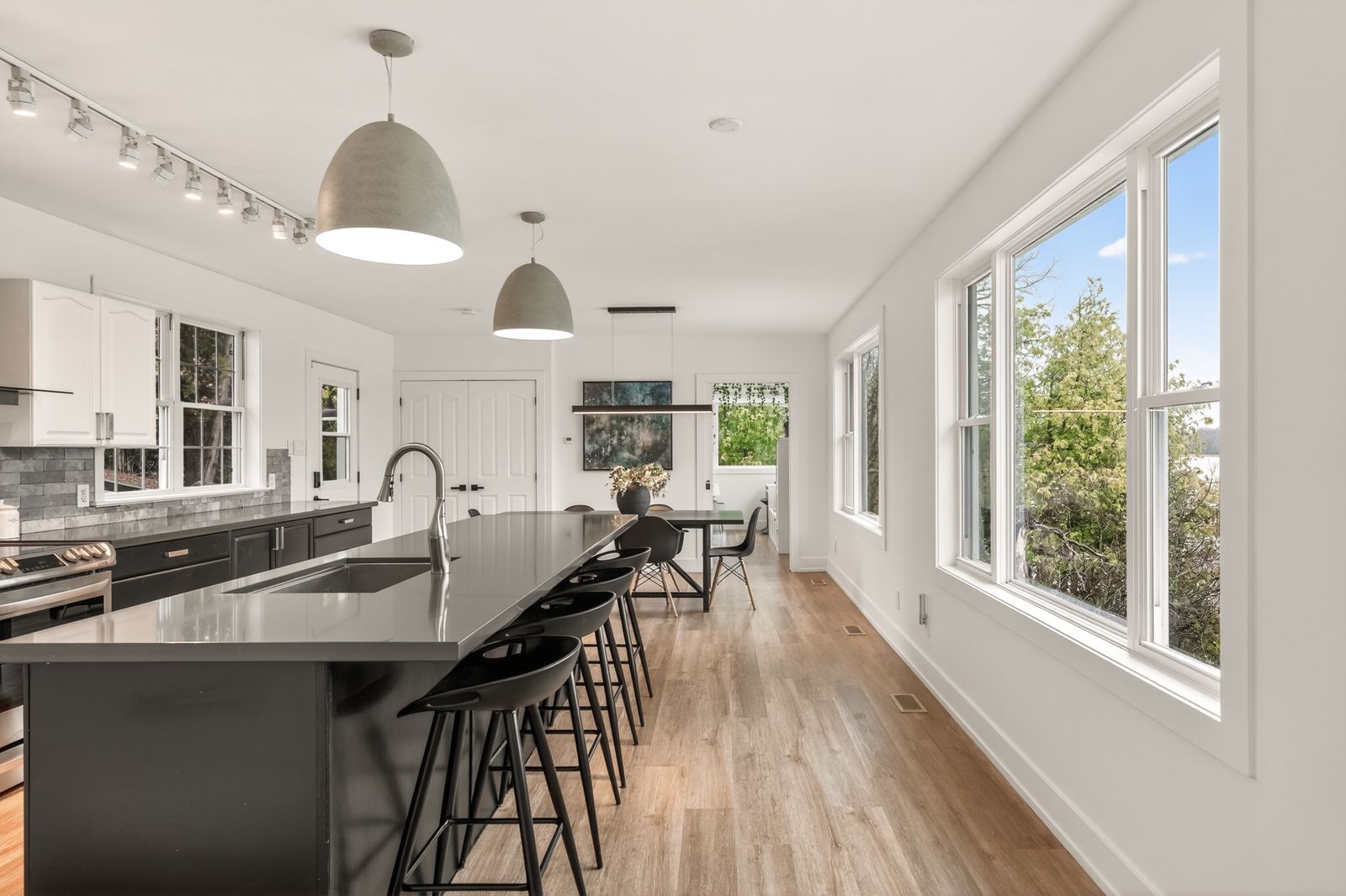 Open house friday 5-7pm //waterfront living at its absolute finest!! A super short drive from kanata north & you feel a million miles away! Enjoy the 100 feet of waterfront & the southern exposure that allows for sunsets in your backyard year round, that is a very rare feature on the water!! Totally tastefully renovated! The 2400 square feet of finished space is so sleek yet so homey & fabulous!! This home definitely has the cool factor! Radiant heat floors on the entry level & first floor. The kitchen overlooks the water, it's joy to cook in this space with that view, endlessly captivating!! Over 20 foot cathedral ceilings in the family room where you will find a modern wood stove that heats the entire home & looks amazing! The loft overlooks the family room & could be a formal space, office or another bedroom! Lots of different options for living as there are 5 bedrooms & 3 full baths (2 of 3 are ensuites)! This home is not on the floodplain! Constance lake is known as a very relaxed "hidden" lake that offers incredible fishing! Roof 2016, septic 2020, boiler 2023, most windows 2024, 14kw generator & sooo many more updates! High speed internet. You do not want to miss this one!!