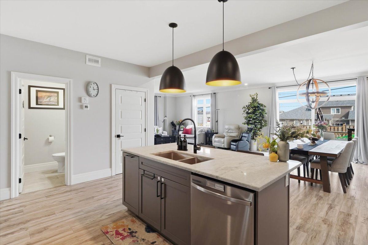 Beautifully designed and thoughtfully laid out, this 3+1 bedroom, 3. 5 bathroom home offers the perfect balance of space, comfort and functionality for modern family living. Situated on a desirable corner lot with mature gardens, the property features a fully sodded yard, paved driveway and attached two-car garage. The bright main floor offers an open-concept living, dining and kitchen area filled with natural light from large windows and providing direct access to the fully fenced backyard with a two-level deck, ideal for entertaining or relaxing outdoors. The spacious kitchen offers abundant cabinetry and storage, while the layout makes everyday living effortless. A versatile office, den or playroom and convenient powder room complete the main level. Upstairs, the impressive primary suite serves as a private retreat with an extra-large walk-in closet and spa-inspired ensuite featuring a soaking tub with built-in tv and a large walk-in shower. Two additional bedrooms, each with walk-in closets, share a well-appointed bathroom, and a separate upper-level laundry room adds everyday convenience. The partially finished basement expands the living space with an additional bedroom, full bathroom, partially finished recreation area, cold room and ample storage. With bright interior spaces, a functional layout and inviting outdoor living, this home offers exceptional family living in a well-established neighbourhood close to parks, trails and everyday amenities.