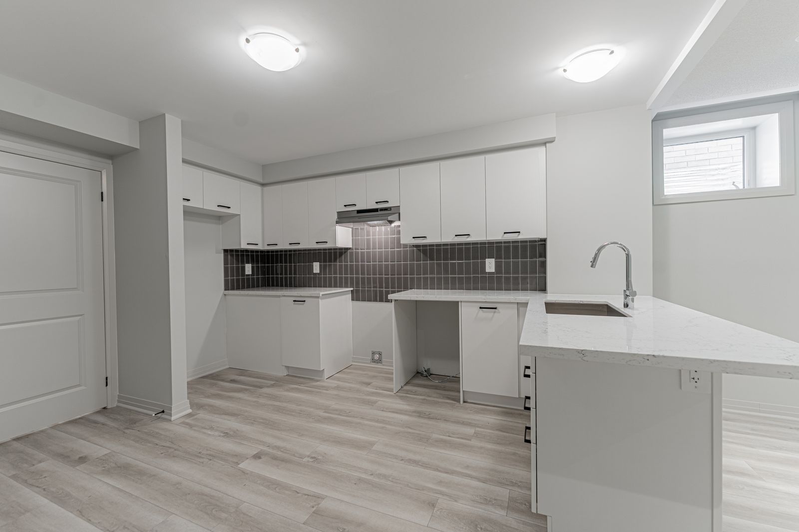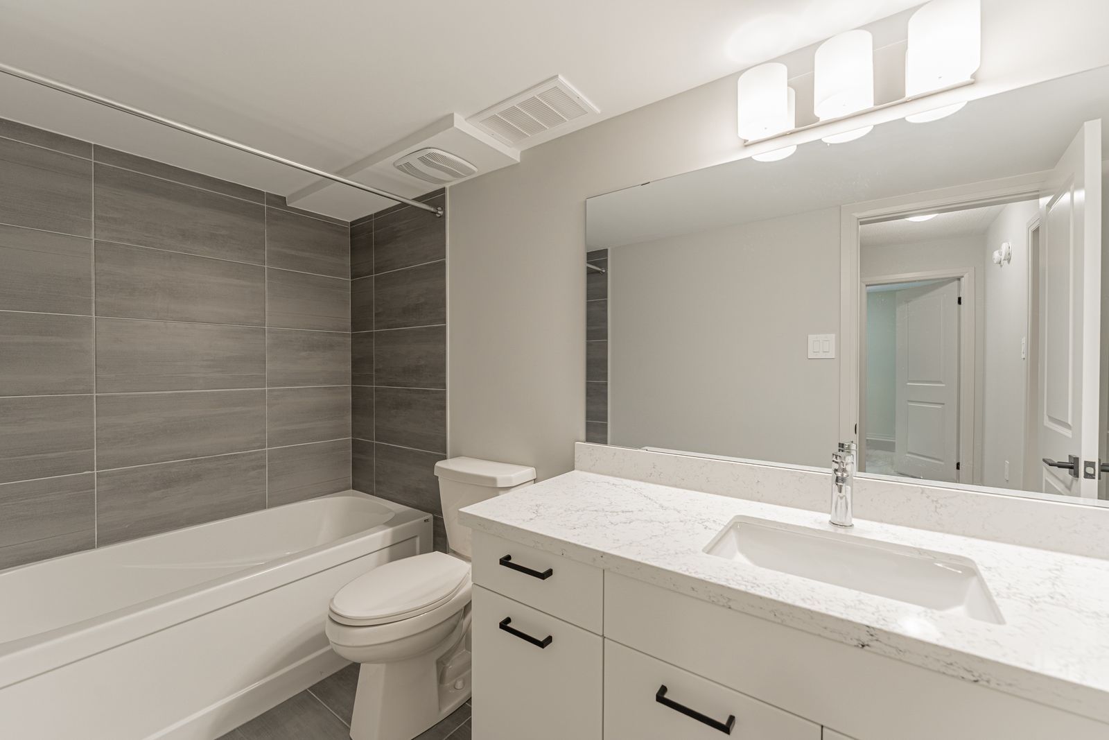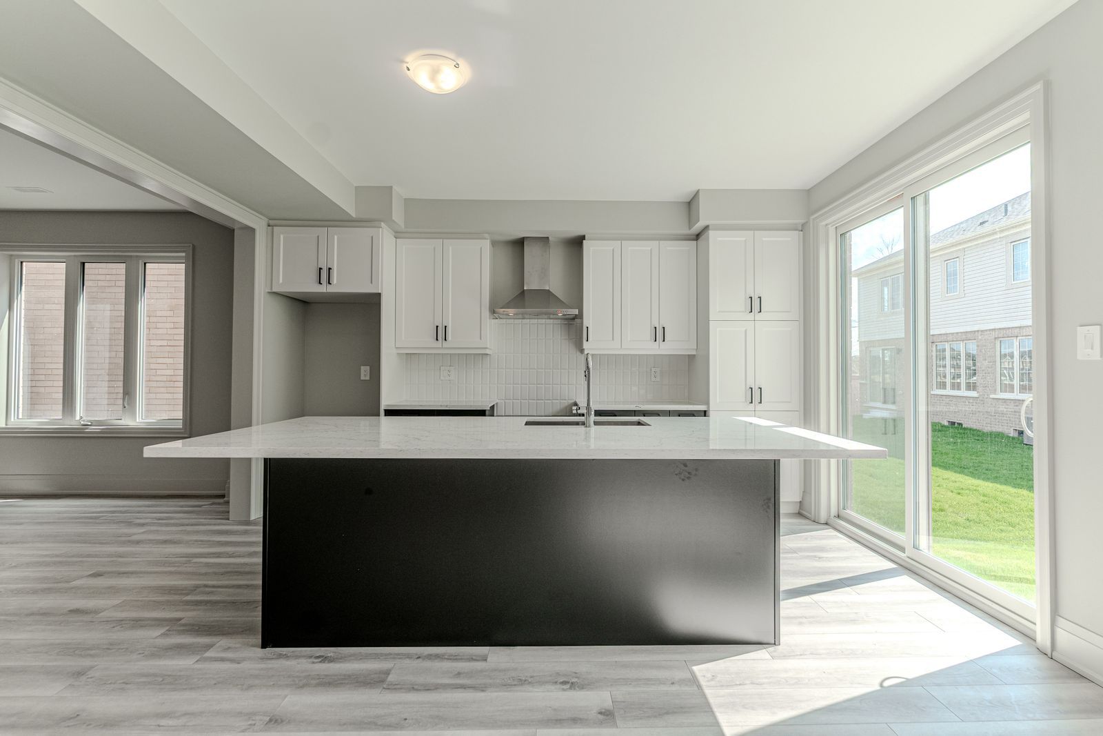 • Stylish kitchen includes quartz countertops, large island, and stainless steel appliances.