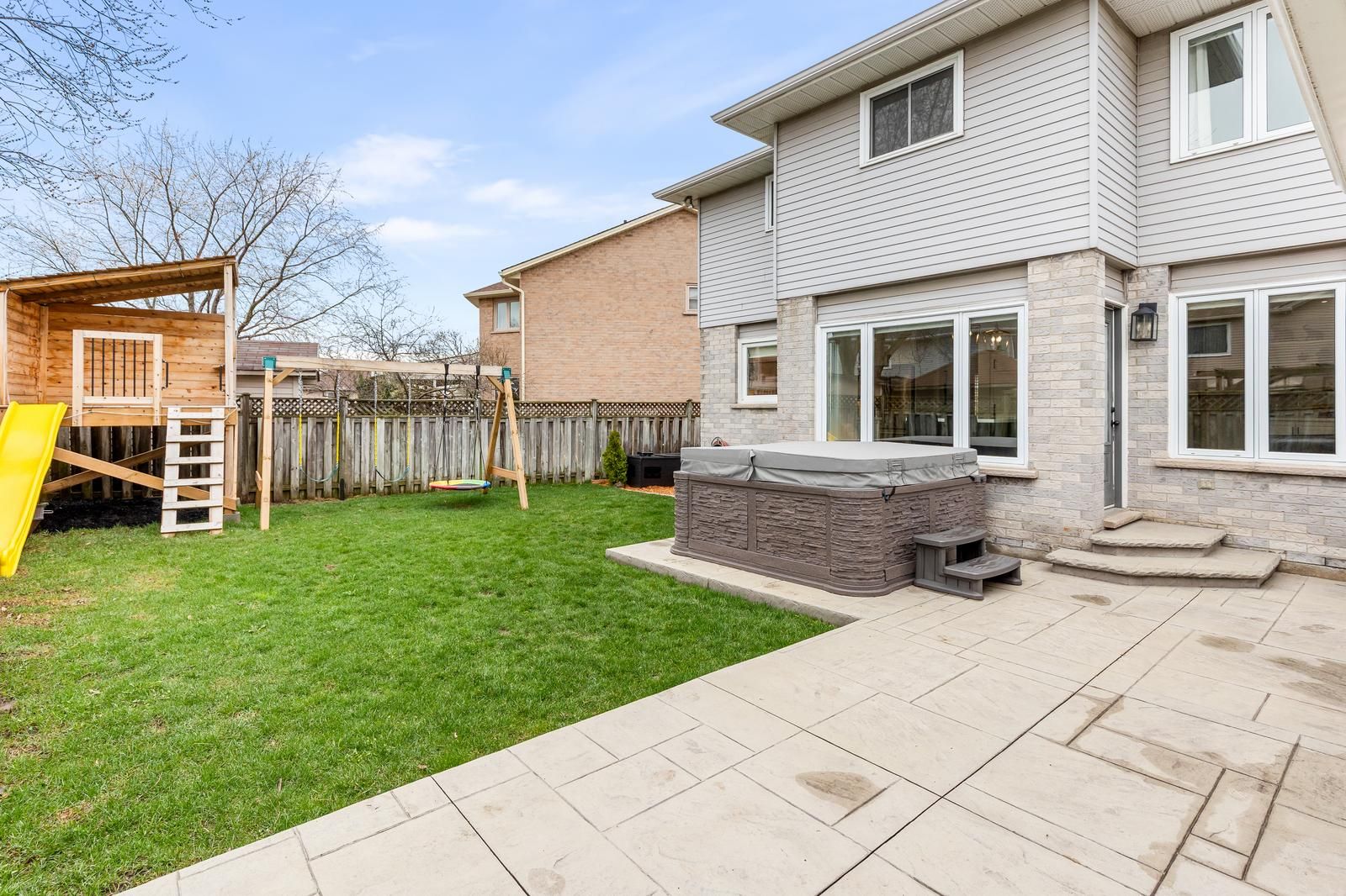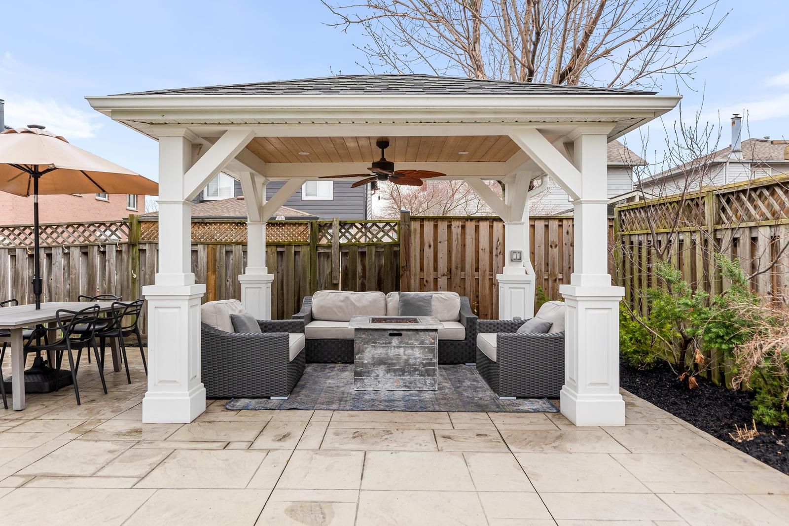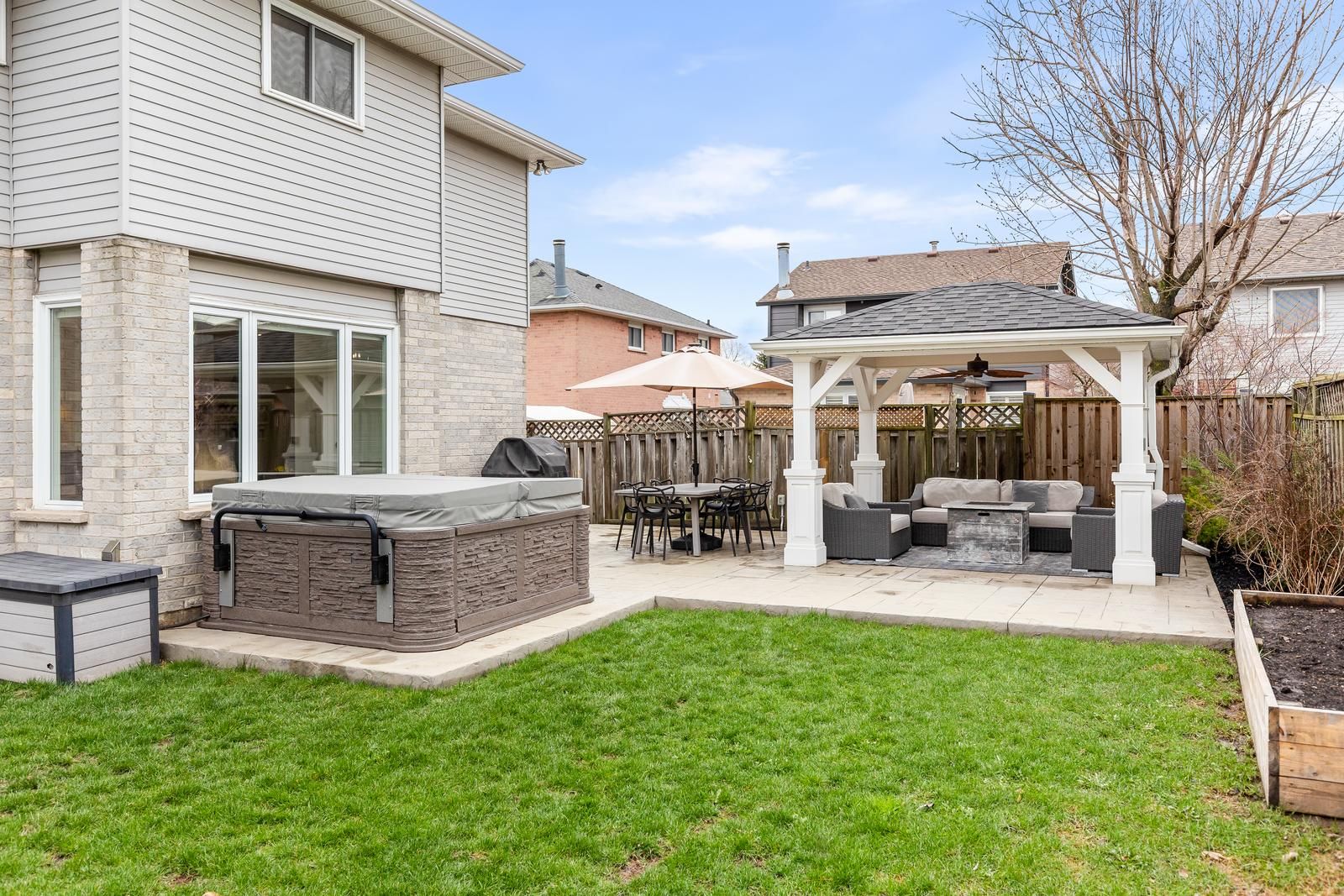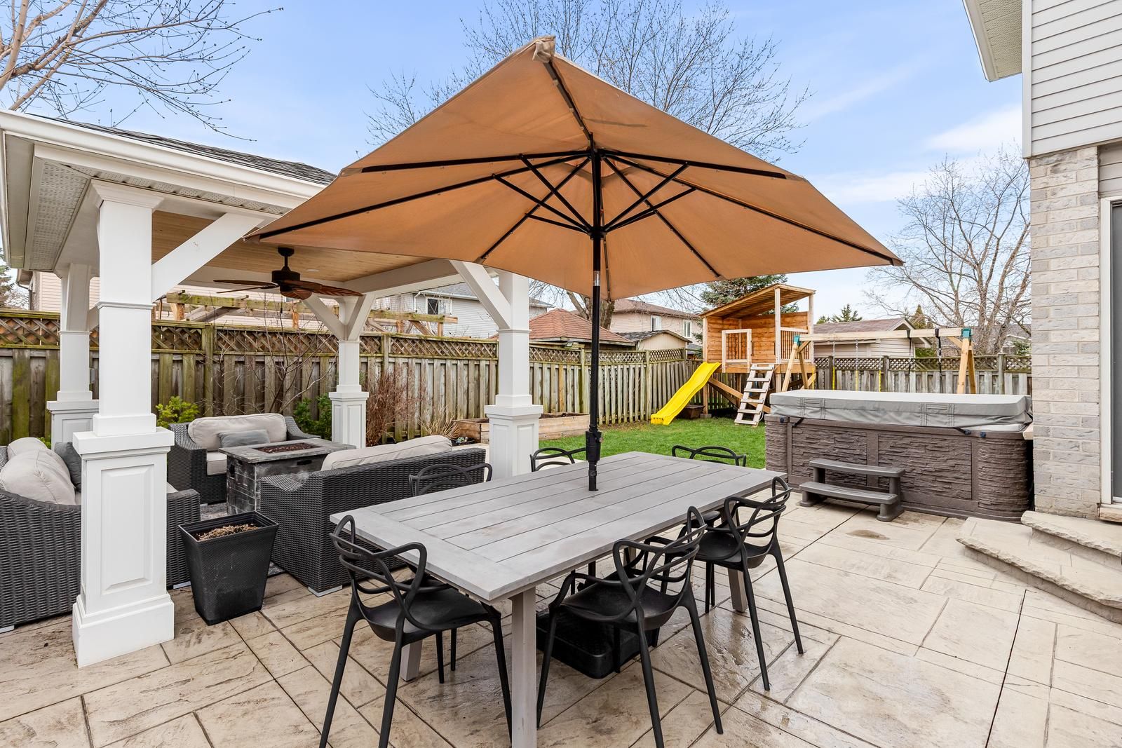 • Backyard oasis with stamped concrete, gazebo, and gas BBQ hookup.
