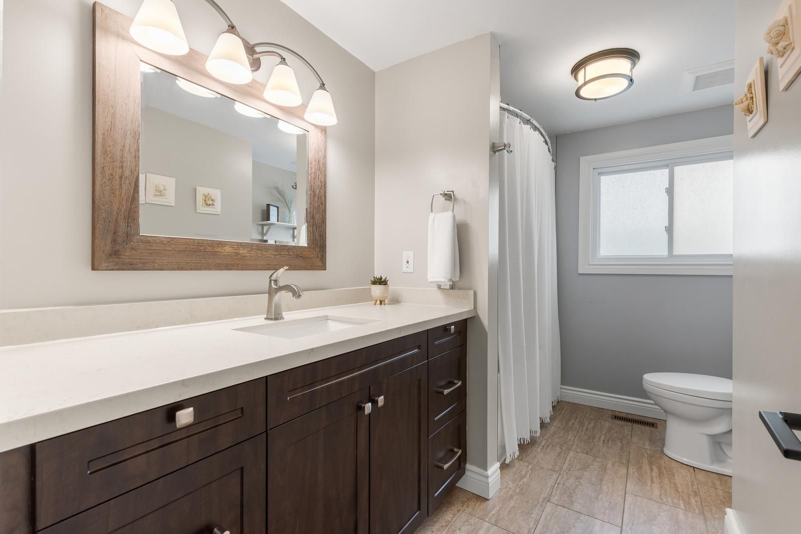 Incomparable value in this gorgeous, sun filled newly renovated family home set perfectly on a quiet, family friendly, highly coveted cul-de-sac. Move in ready in this thoughtful (just shy of) 2000 square foot home plus fabulous finished basement with rec room, wet bar, and 2 rooms ready to be used as either bedrooms or offices plus bathroom with full size shower and furnace room with lots of storage capabilities. Not a stitch of carpet. Hardwood look alike high quality and durable vinyl plank flooring. Backyard oasis with stamped concrete, custom gazebo (with lighting and fan), gas bbq hookup and lots of space to roam and play make this the ultimate entertainers' home inside and out. Get that dreamy "new home feel" but with the mature lot size setting. A perfect combo! Perfectly located just minutes to all amenities, schools, parks and highways. Double wide concrete driveway with no sidewalk means extra parking ability for your use and no extra shovelling in the winter! Main floor laundry and access to garage. Side door to yard also from laundry room. Welcoming large foyer and inviting floor plan. 3 generous sized bedrooms, fabulous newly renovated main floor with no expense spared on high end appliances, quartz counter top and backsplash, coffee/beverage station, walnut kitchen island with room to sit around and use as table. Pot lights galore but who needs them when sunlight is just streaming through the windows? Truly a pleasure to view! Welcome home.