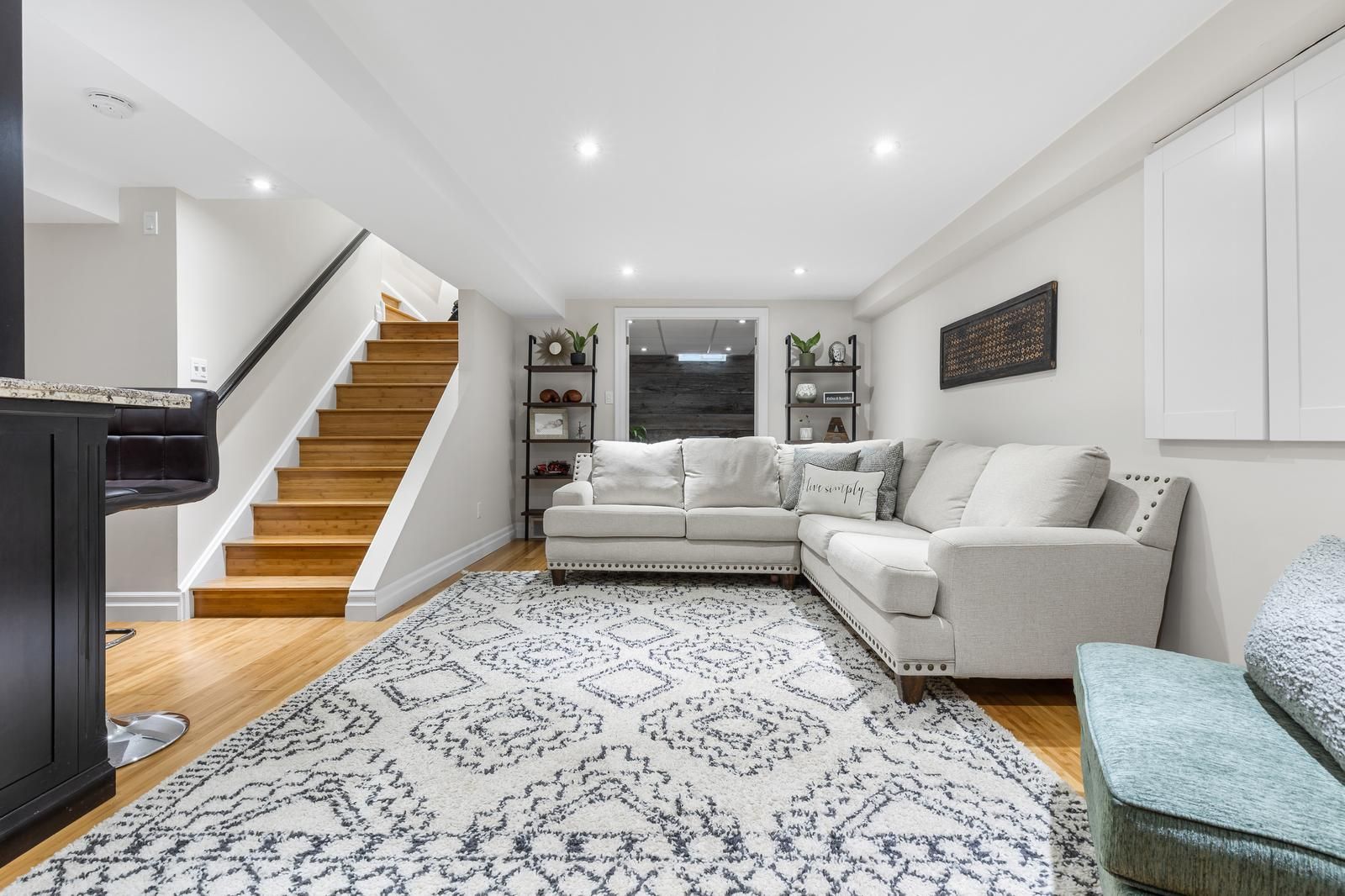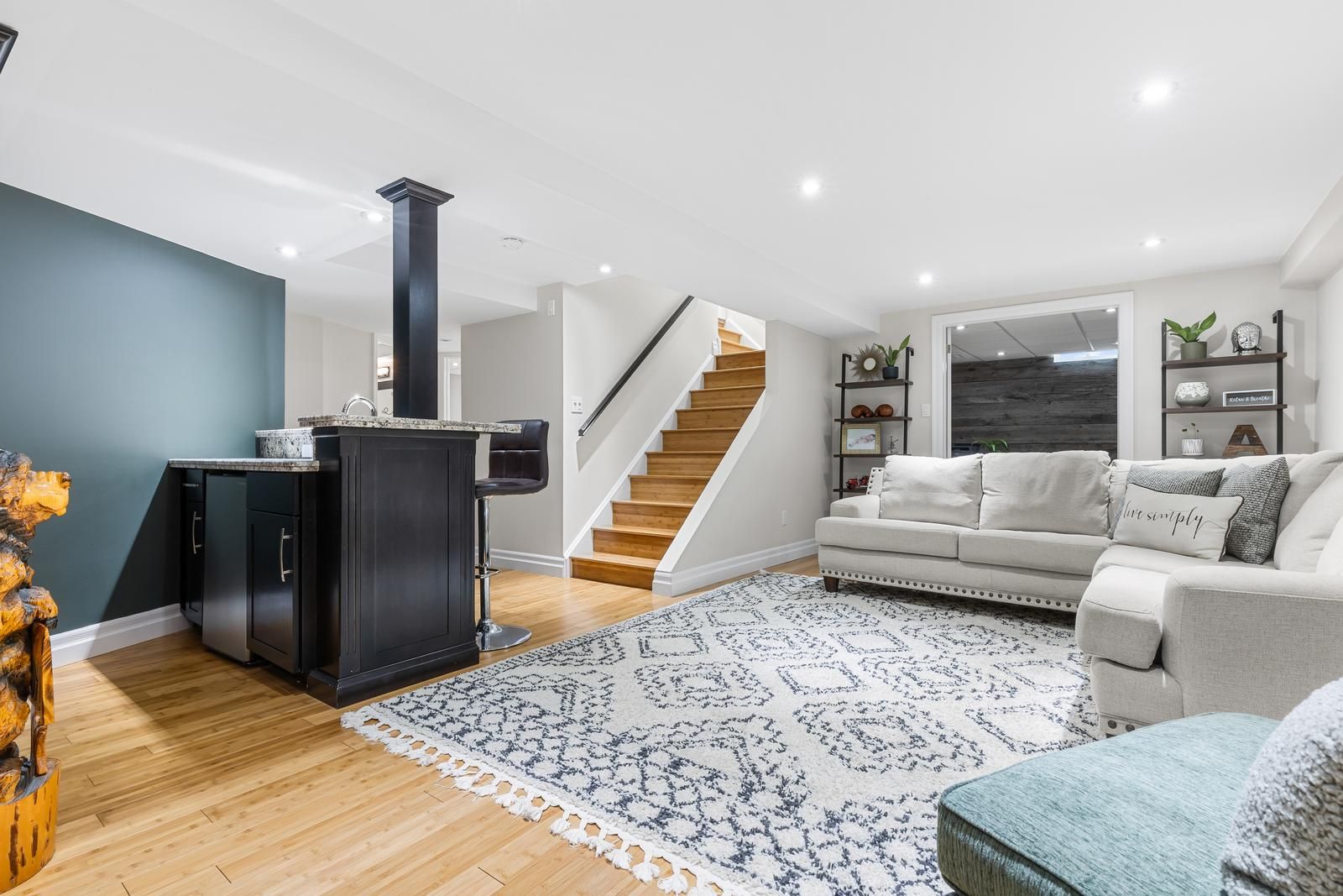 • Finished basement with rec room, wet bar, and extra flexible rooms.