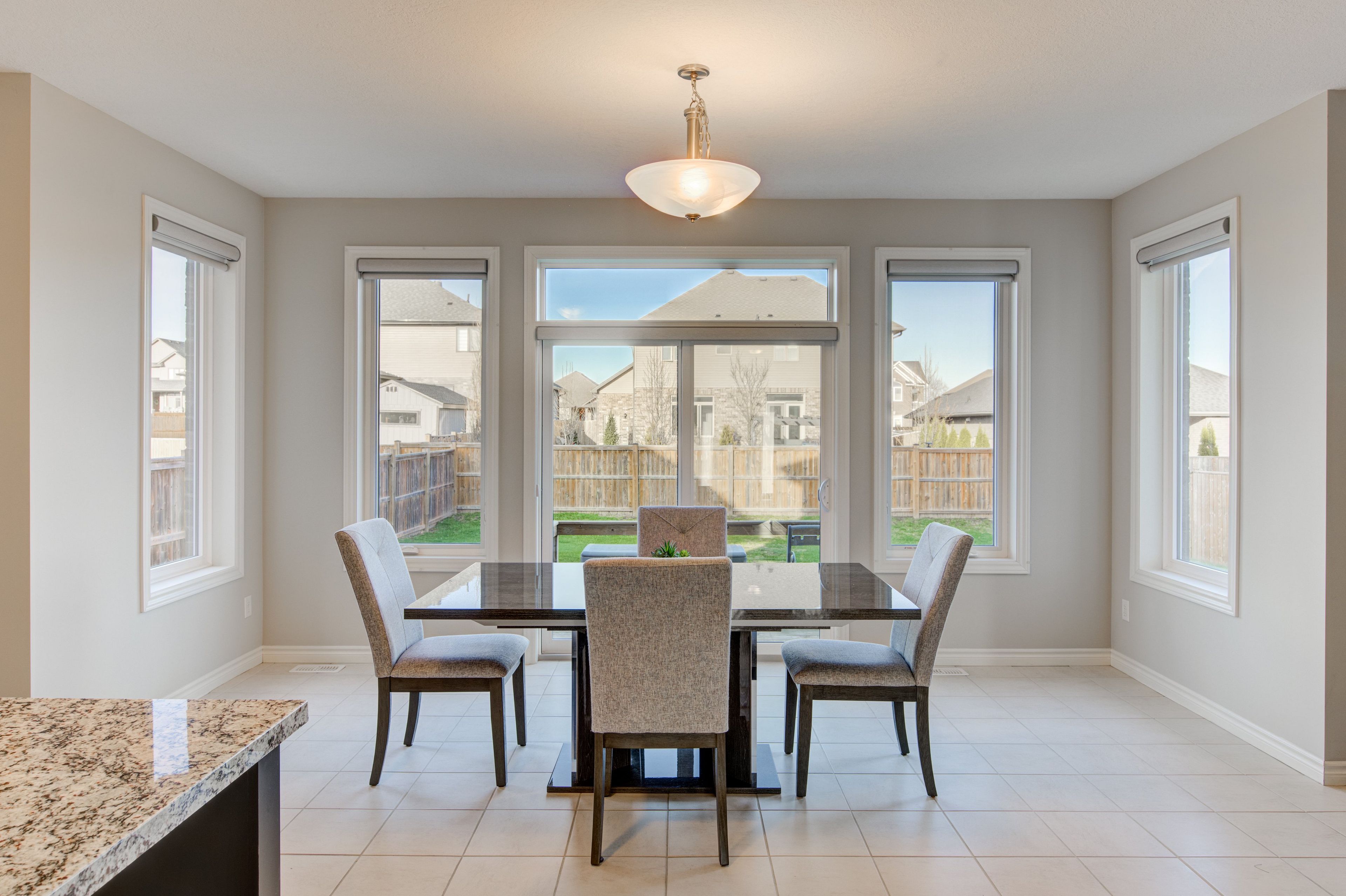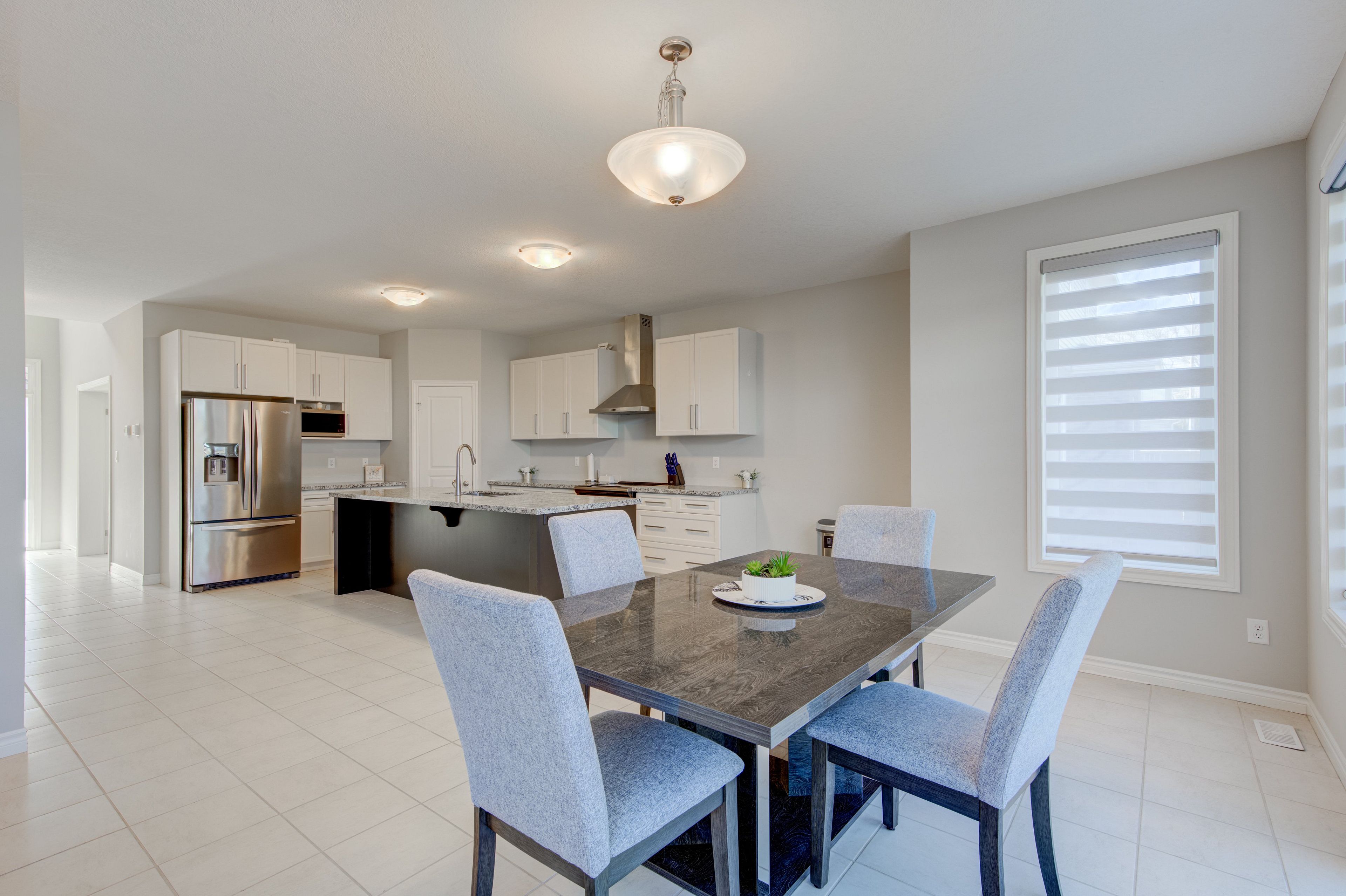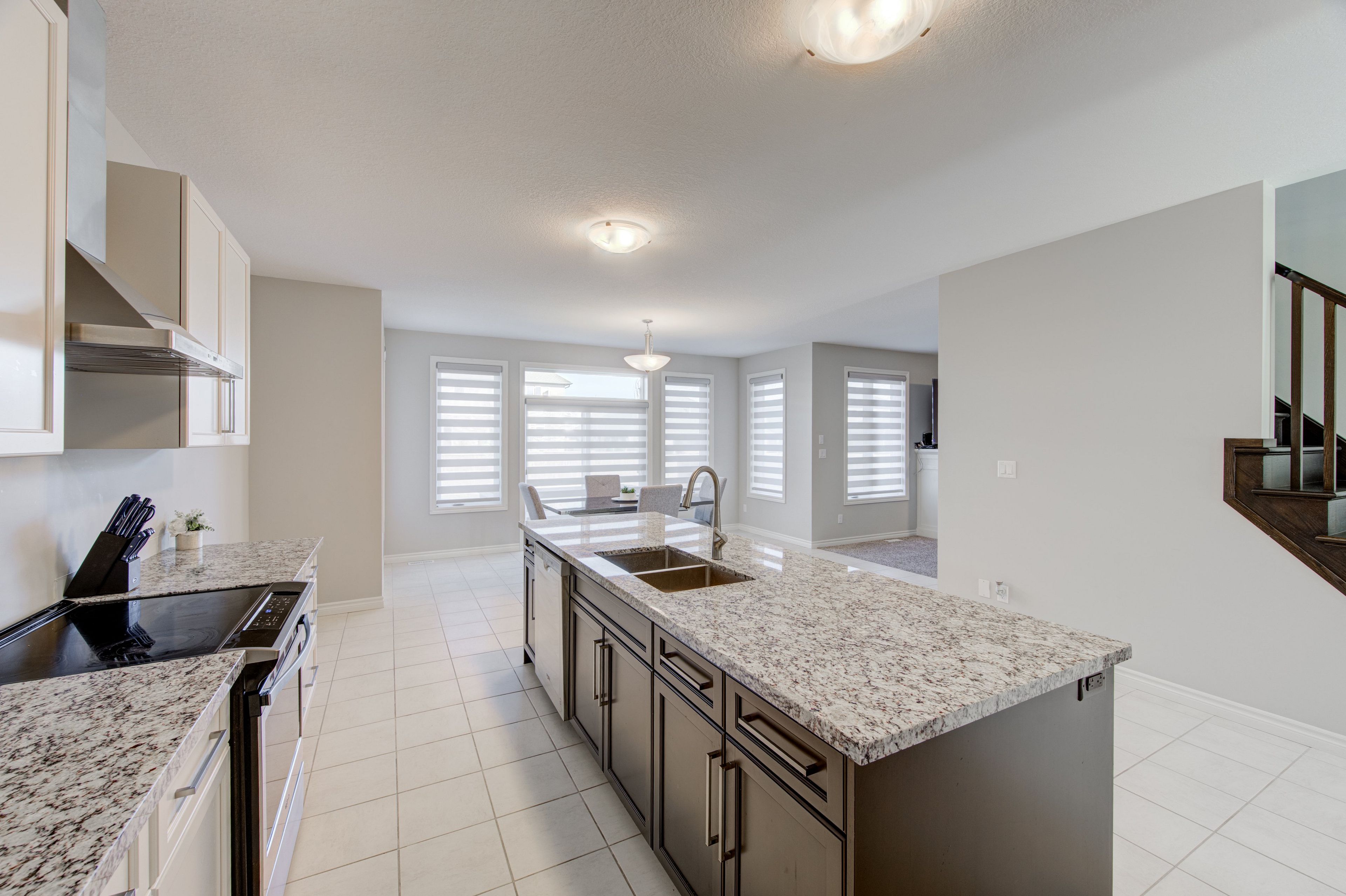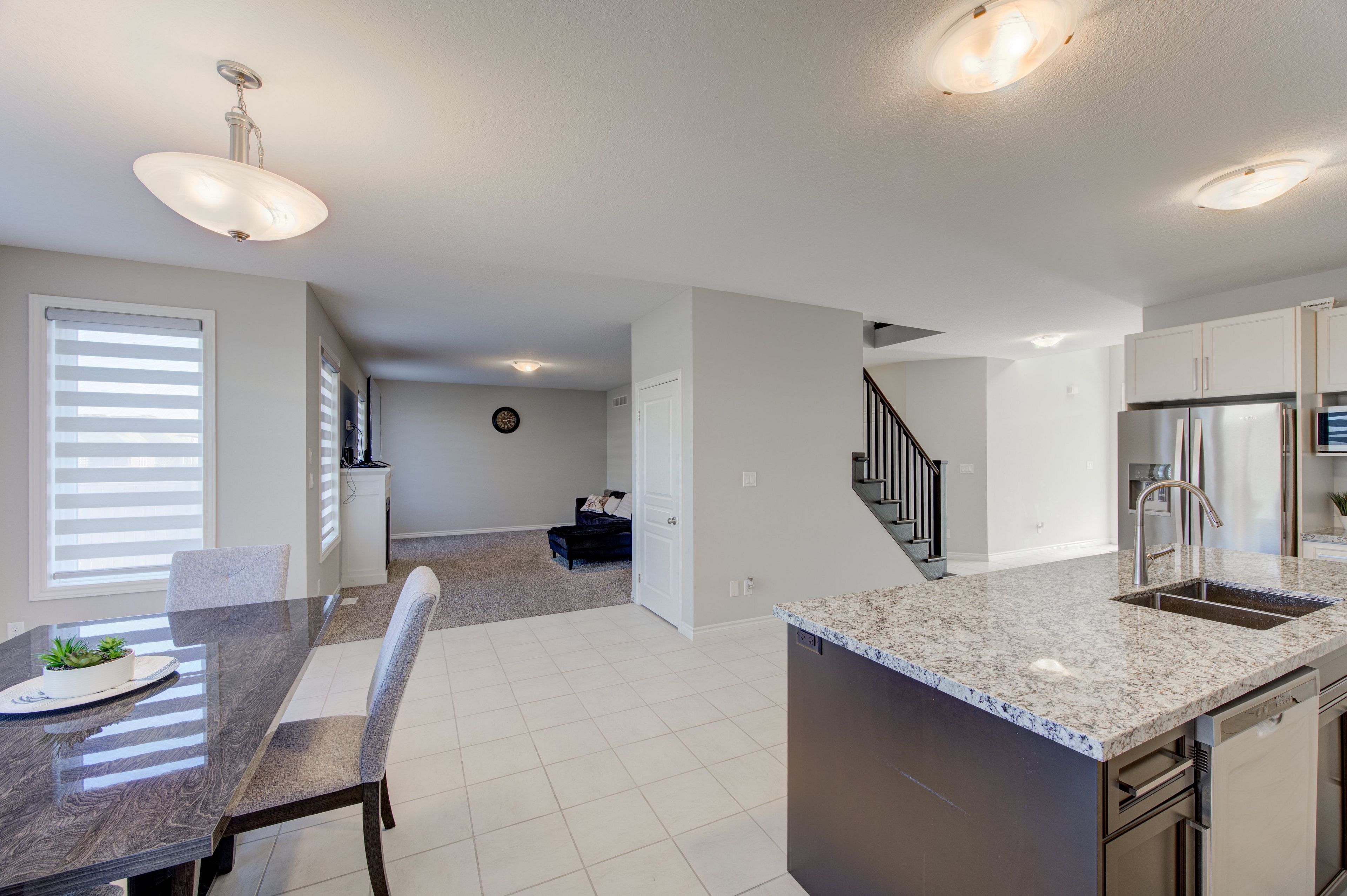 • Elegant kitchen features granite countertops, great for cooking and hosting.