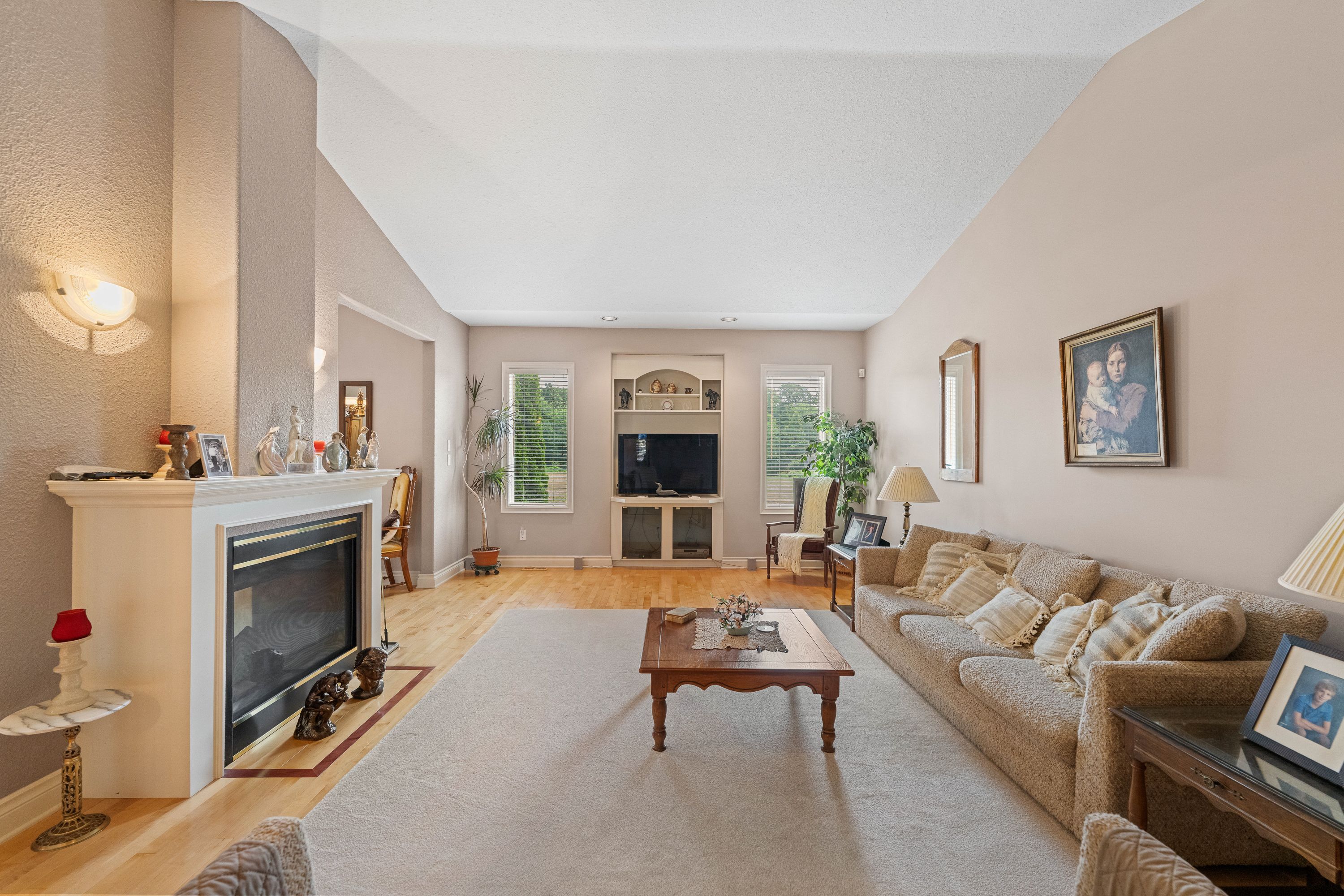 Welcome to this beautifully maintained, 2352 sqft one-owner brick bungalow in desirable fonthill neighbourhood, built by serafino homes in 1998. Offering timeless curb appeal and thoughtful design, this home features 9-ft ceilings with cathedral ceilings in the main living and dining areas, creating a bright and airy feel. The living room and formal dining room share a cozy two-way gas fireplace, while the open-concept kitchen and dinette lead to a rear wood deck perfect for entertaining. The main floor boasts a spacious primary bedroom with walk-in closet, 4-pc ensuite, and its own gas fireplace. Two additional bedrooms, a 4-pc main bath, powder room, and main-floor laundry add convenience, while hardwood flooring flows throughout the level. The fully finished basement extends the living space with a spacious rec room, cozy family room, kitchenette, additional bedroom, office, 3-pc bath, and utility room. Practical updates include a roof (2015), furnace and a/c (2021), and a rental water heater (2018). Additional features include central vacuum, concrete driveway, and a 2-car garage. Set in a quiet neighbourhood close to all amenities, this home blends comfort, functionality, and location ready for its next chapter.