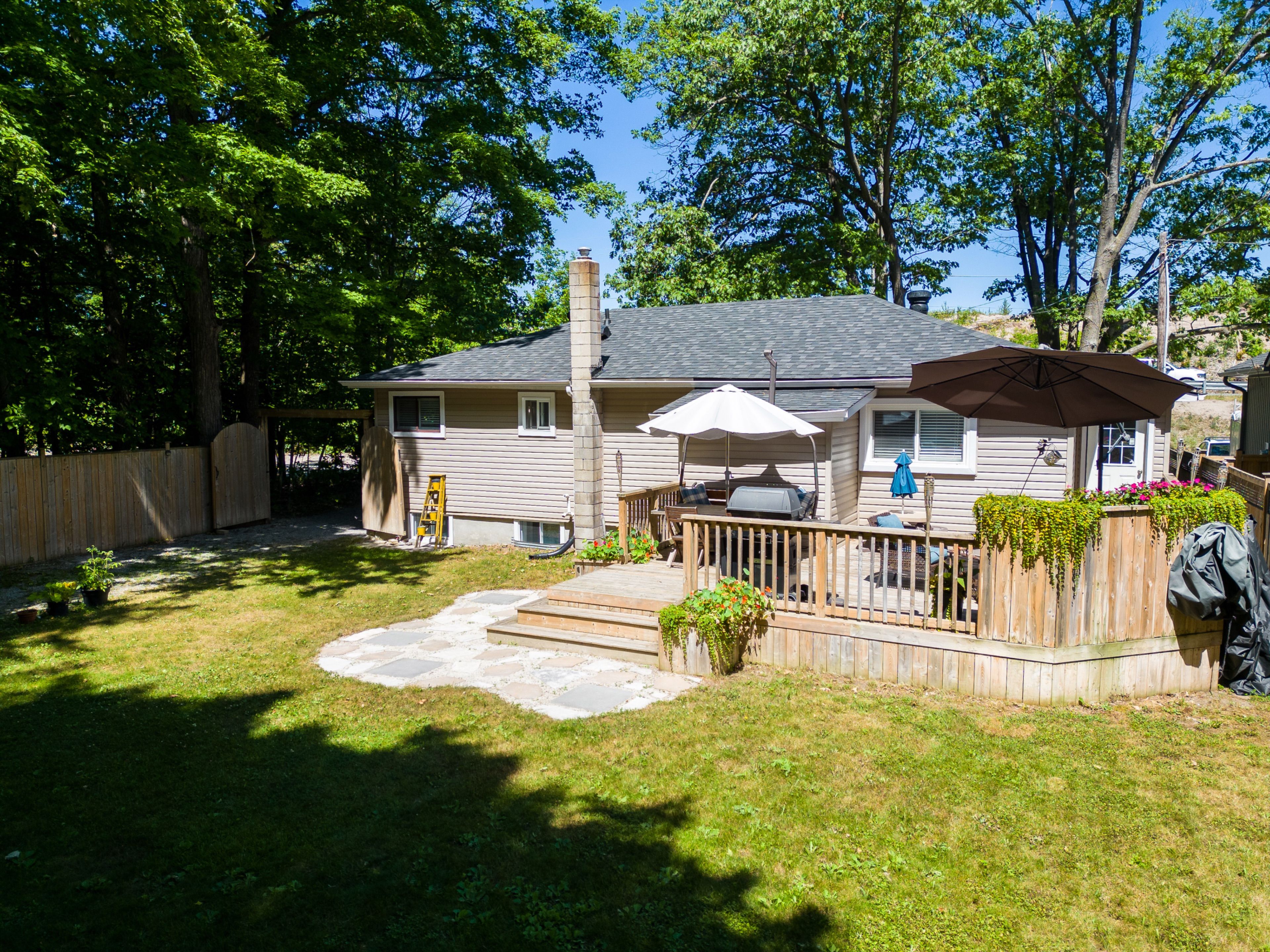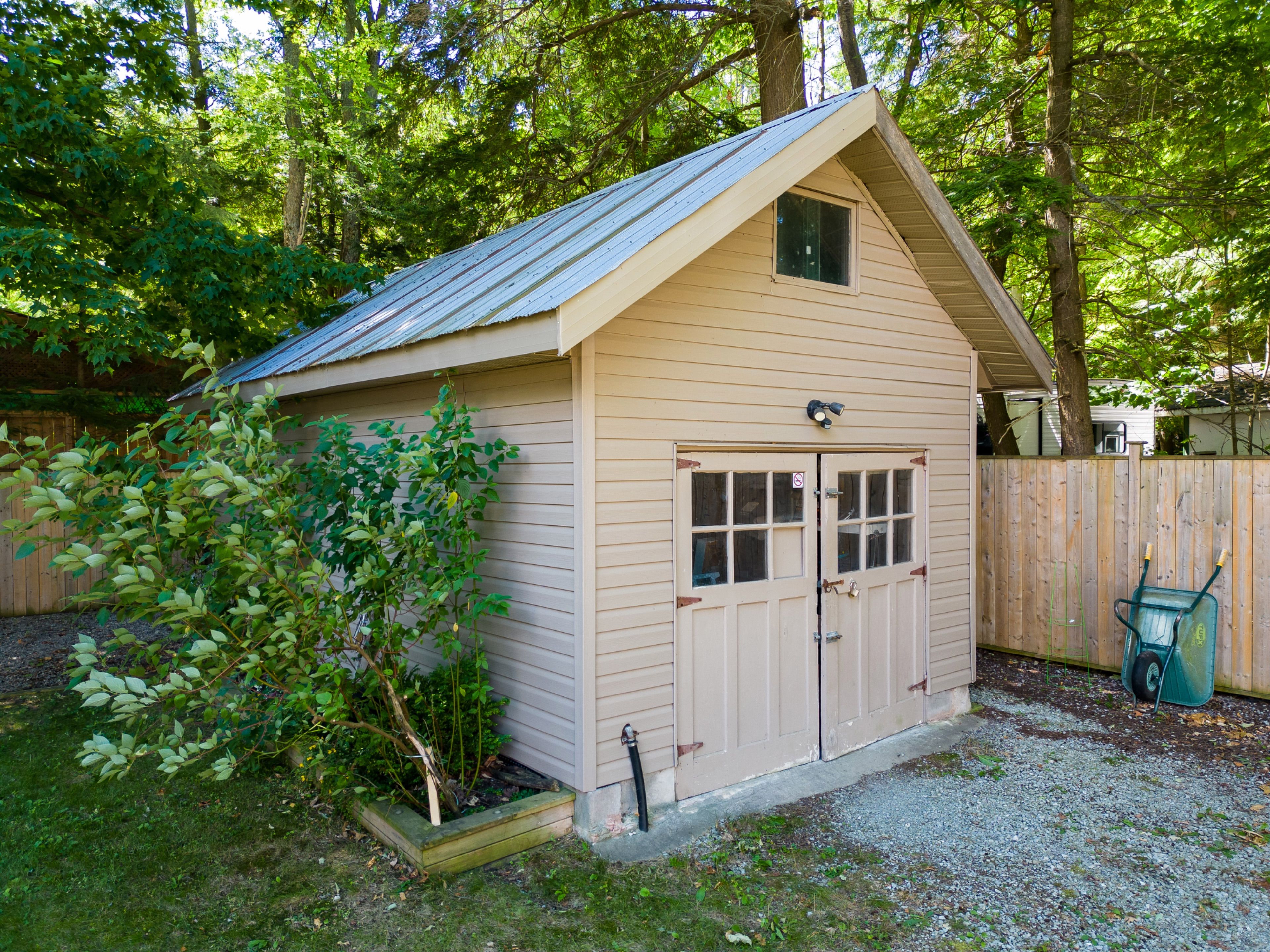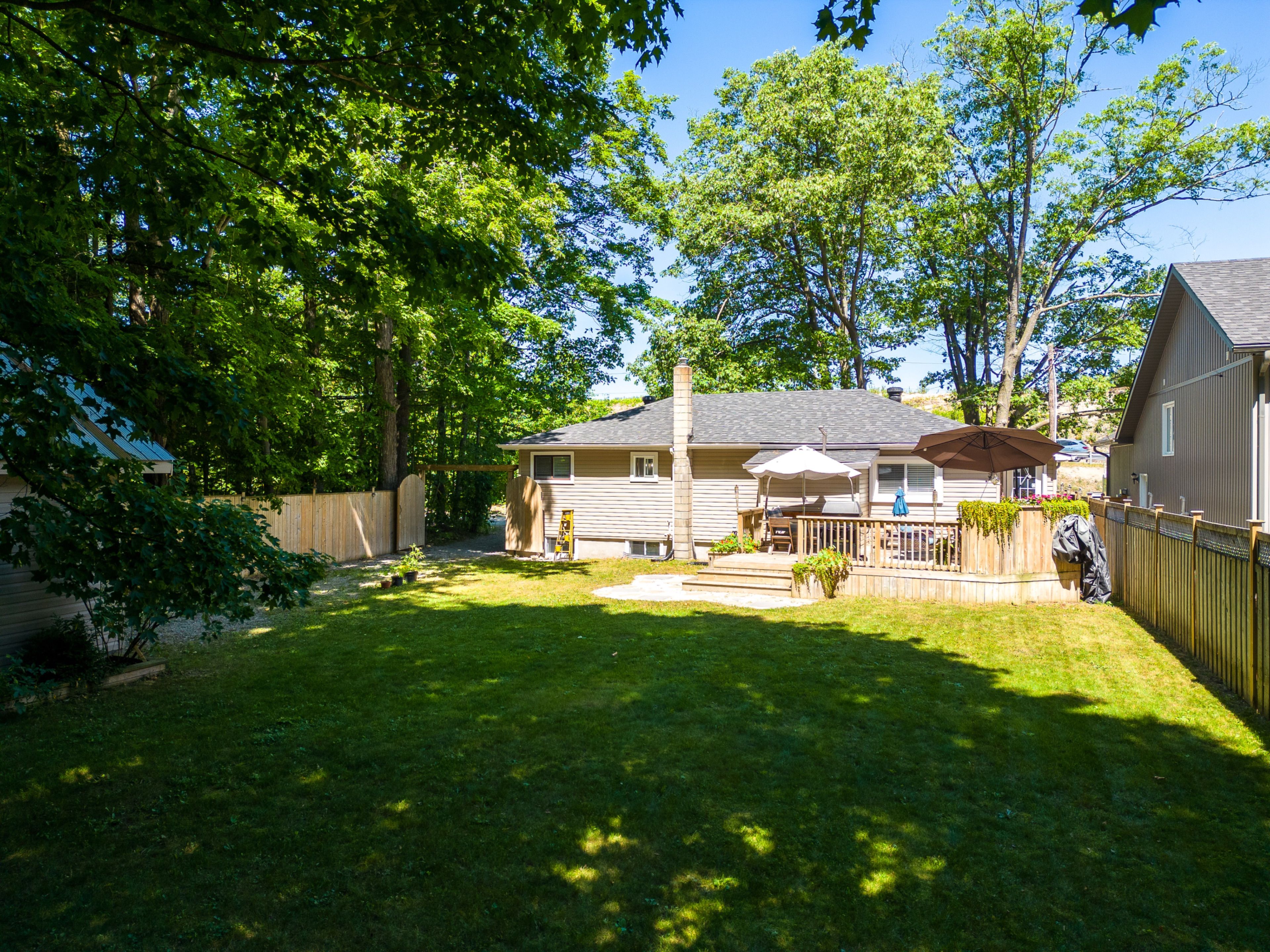 This move-in-ready bungalow, renovated in 2019, offers charm, comfort, and privacy. Set on a fully fenced lot surrounded by mature trees, this 2+1 bedroom home is perfect for those looking to escape crowded subdivisions. Inside, a bright, open main floor features large picture windows and a welcoming living space. The kitchen is equipped with corian countertops and stainless steel appliances. The oversized primary bedroom offers a walk-in closet and space for a sitting area or nursery. A second bedroom and spacious 4-piece bath complete the main level. The finished lower level includes a cozy rec room, 2-piece bath, laundry, built-in desk, additional bedroom, and storage. Outside, enjoy a large back deck, frequent visits from hummingbirds, and a wired outbuilding with loft-ideal for storage or a workshop. A 6-car driveway provides ample space for vehicles, boats, or trailers. Located minutes from the sandy shores of georgian bay, trails, shopping, and amenities, and within walking distance to the new arena and library, as well as a future school and community hub (sept 2027). No condo or maintenance fees.