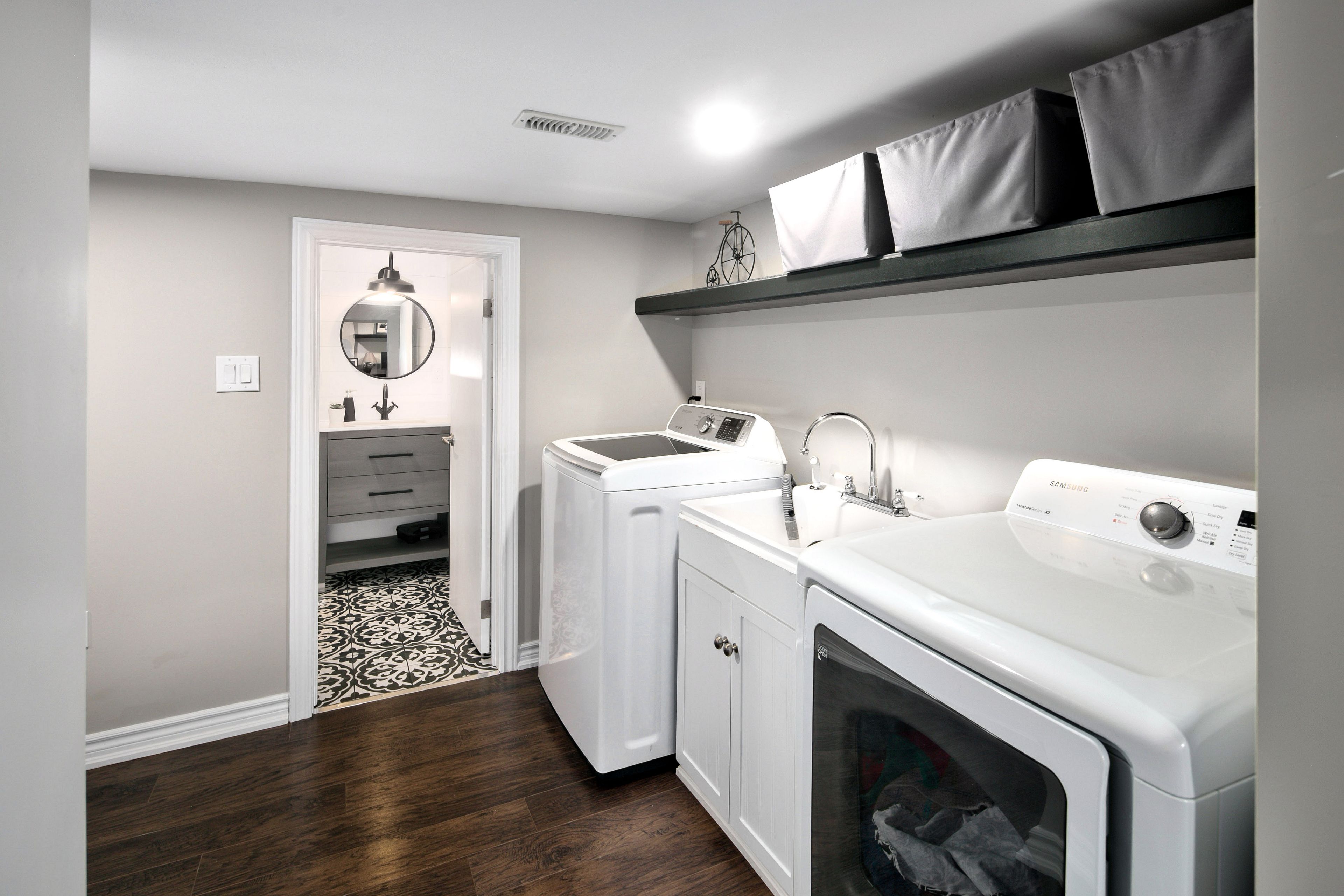 • Oversized primary bedroom with walk-in closet and extra space.
