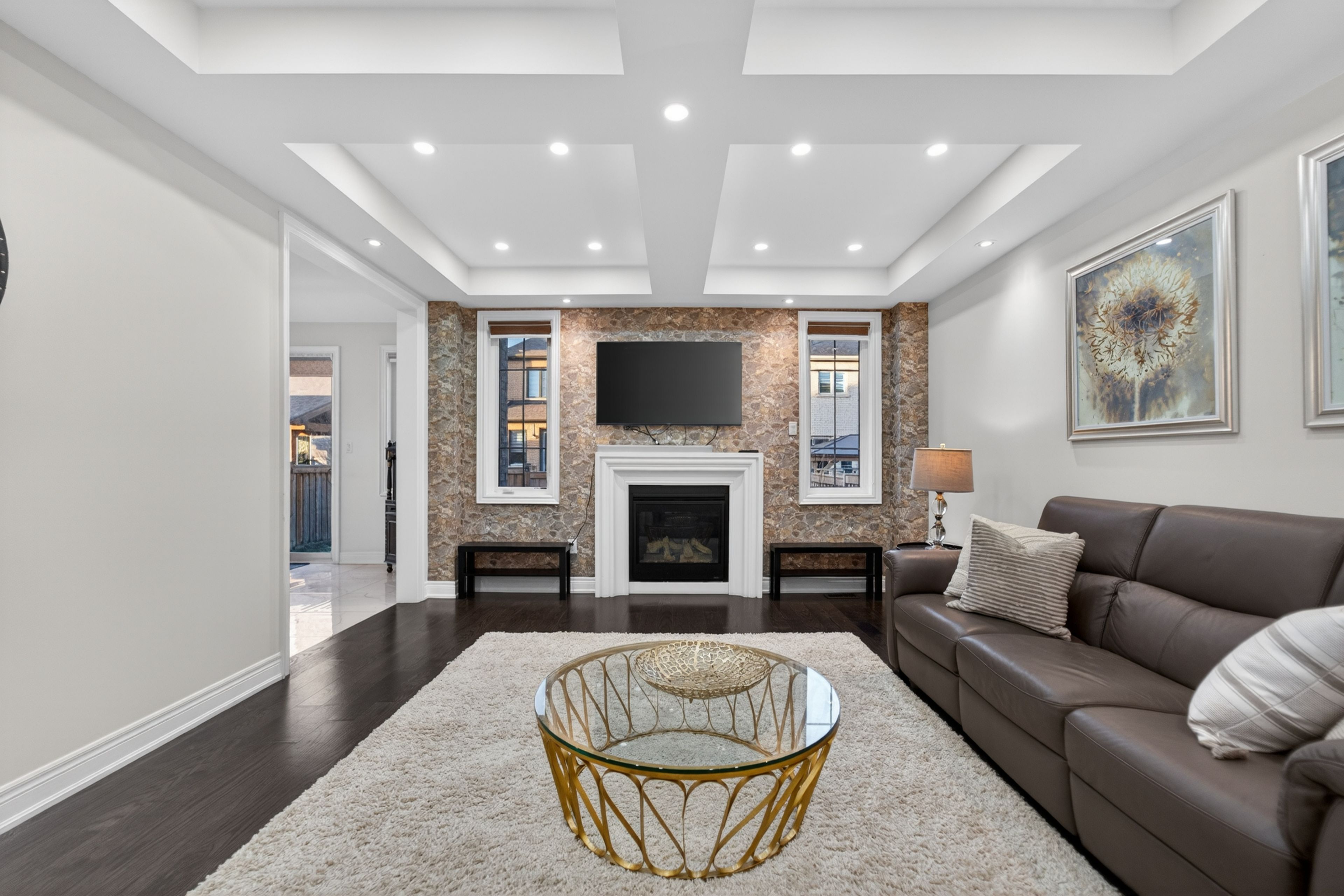 • Elegant open-concept layout features a cozy gas fireplace and formal areas.