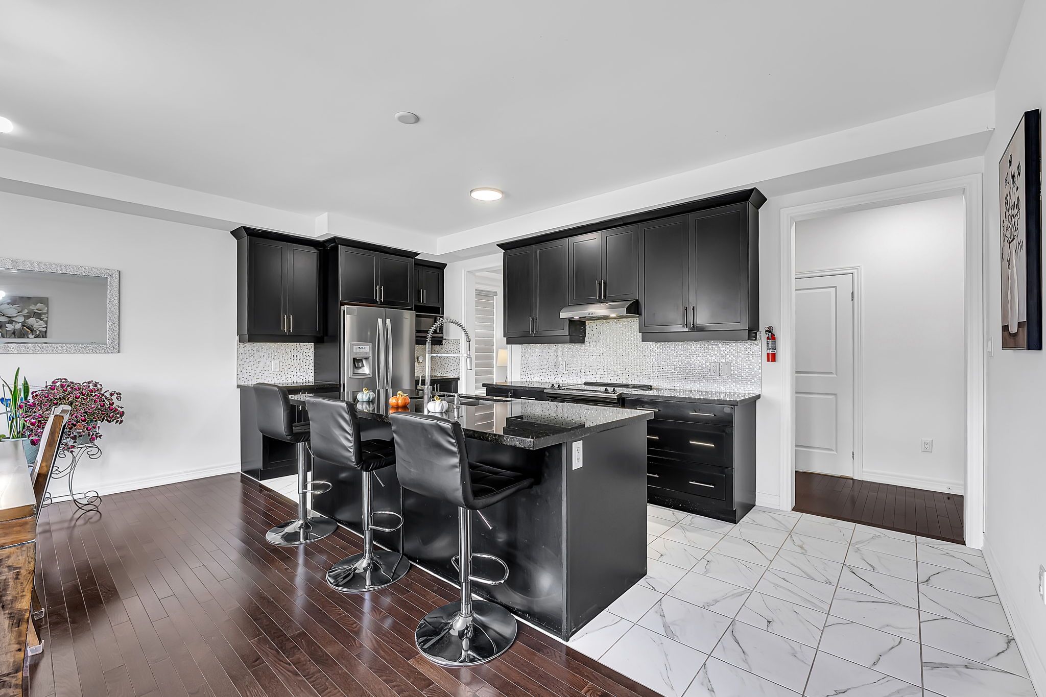 • Open-concept layout with hardwood flooring and smooth ceilings.