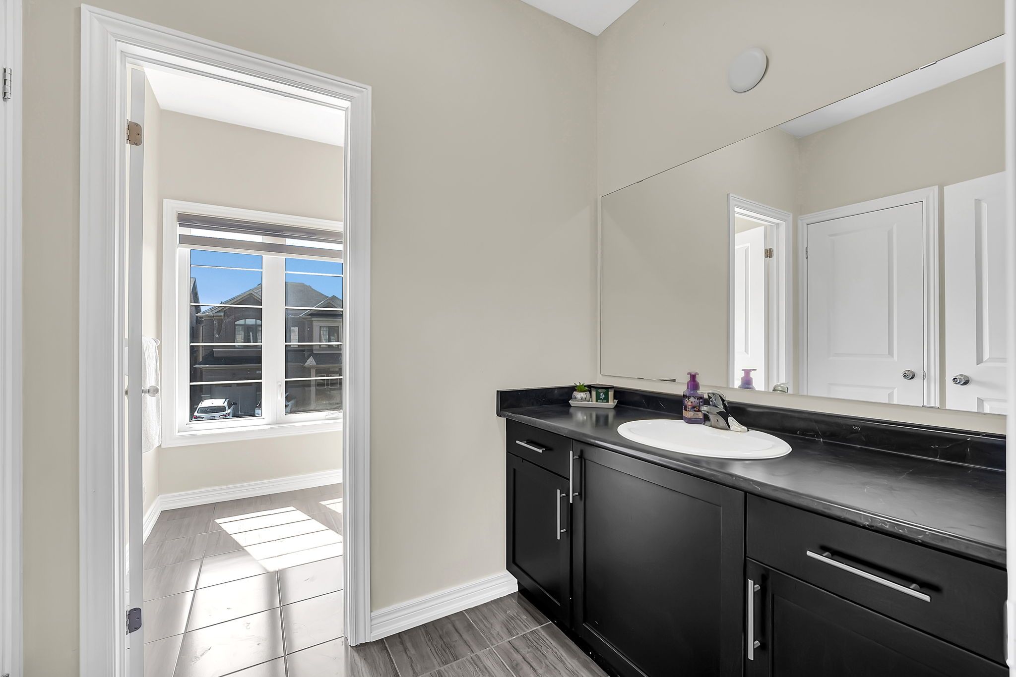 • Builder-designed side entrance leads to a spacious basement.