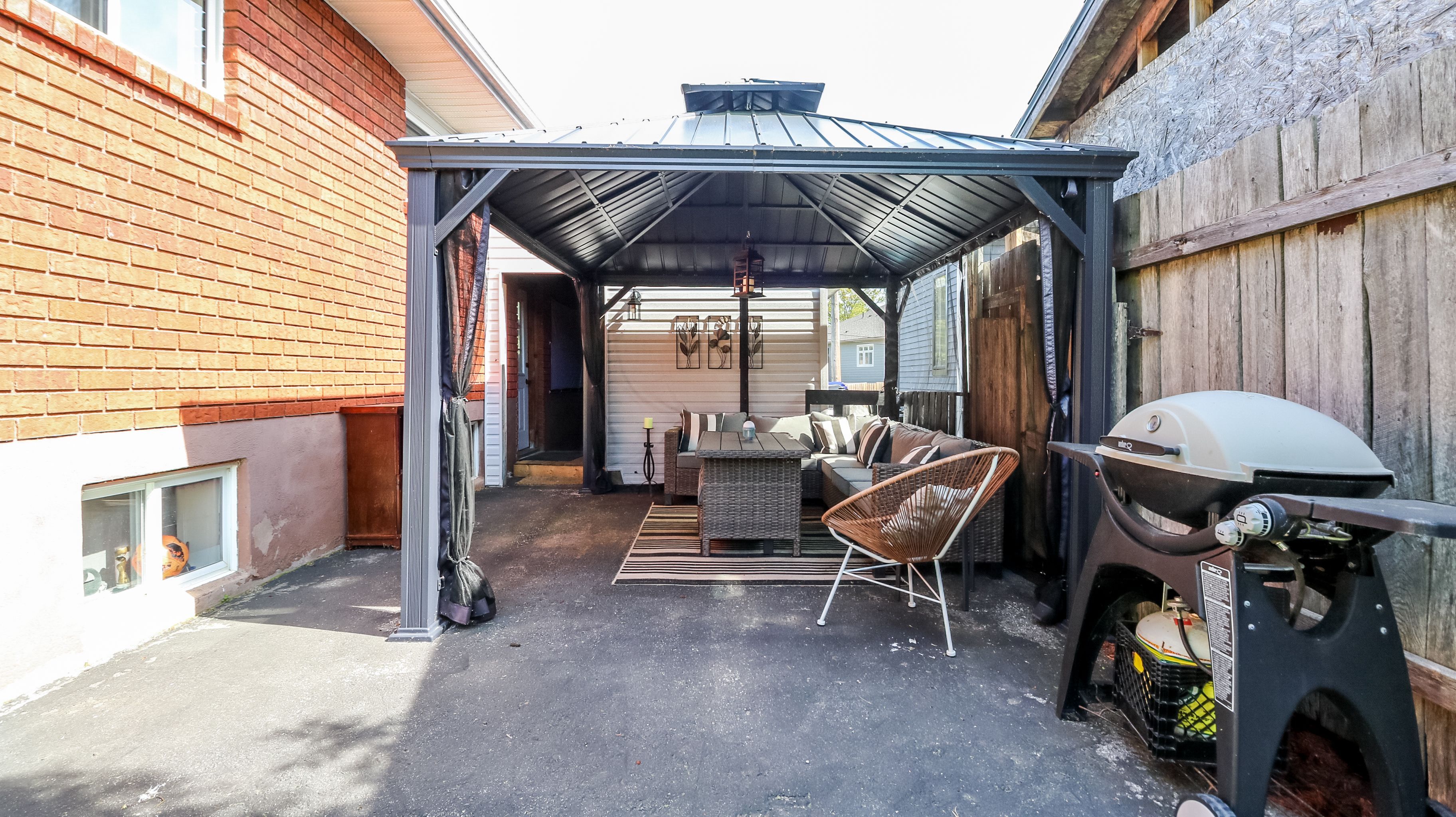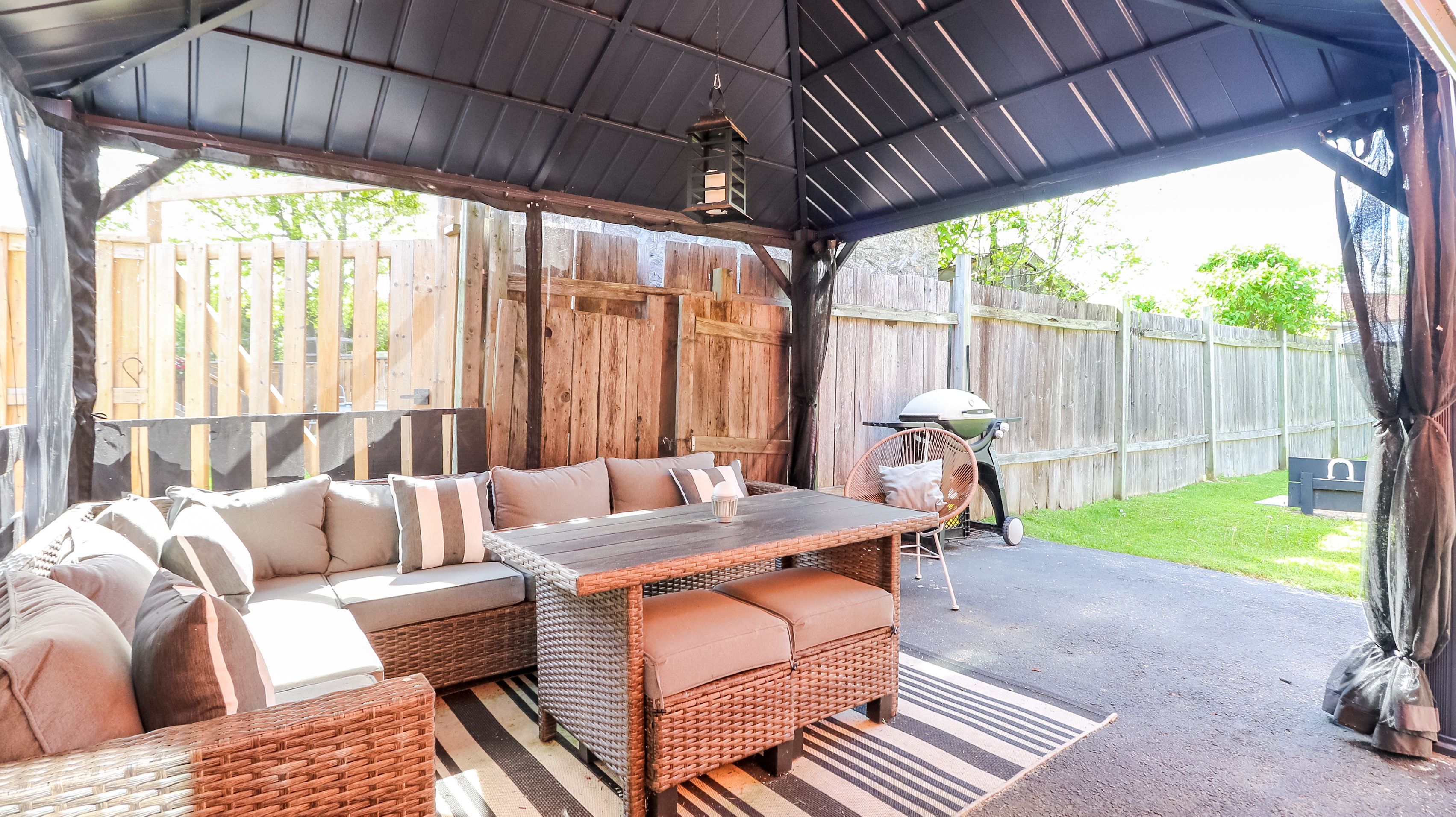• Private fully fenced backyard with gazebo for year-round enjoyment.