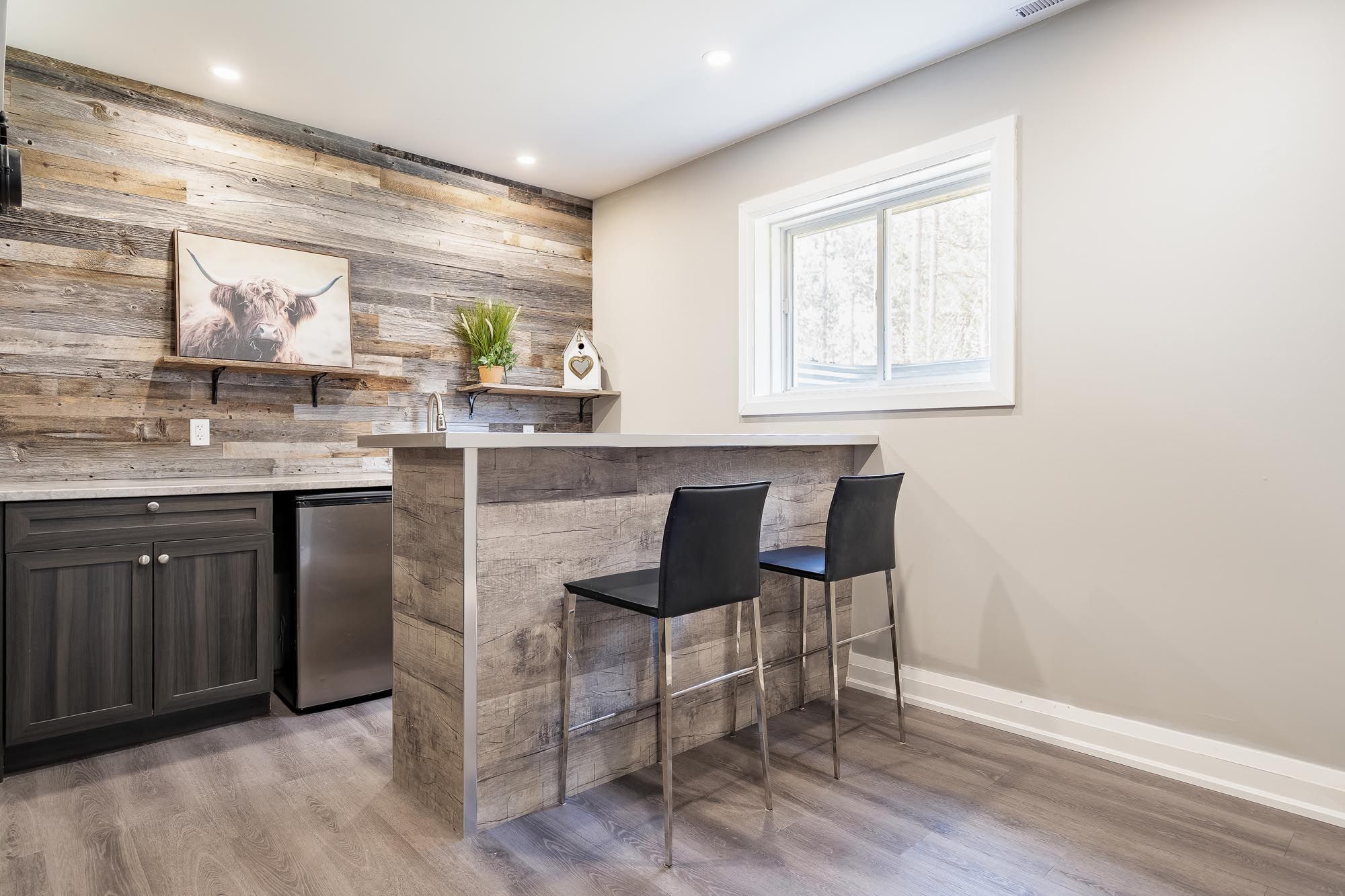 • Versatile finished basement with tall ceilings, wet bar, and ample guest options.