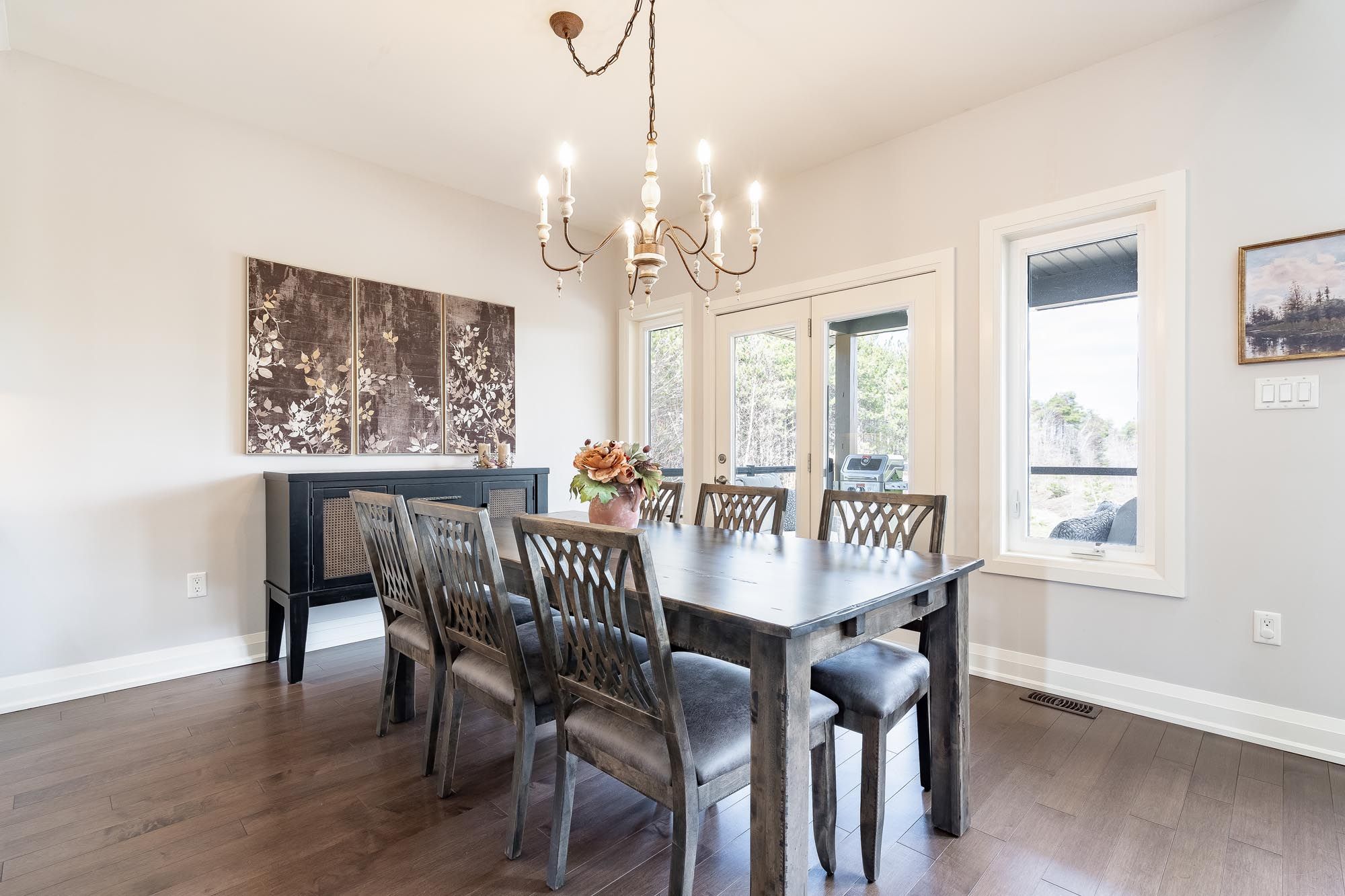 Top 5 reasons you will love this home: 1) enjoy an exceptional lifestyle location where year-round adventure is woven into everyday living, with vettä nordic spa, settlers' ghost golf club, horseshoe resort, hardwood ski and bike, and an extensive network of biking and hiking trails all just moments away, creating a rare four-season setting that truly stands apart 2) custom-built for elevated living, this home showcases a beautifully designed open-concept layout finished with upscale details, including a standout kitchen with premium jennair appliances, quartz surfaces, and a large centre island, all framed by soaring cathedral ceilings, dramatic feature windows, and a striking stone fireplace that brings warmth and character to the heart of the home 3) tucked away on a quiet cul-de-sac, the home enjoys a private and peaceful pie-shaped lot enhanced by professional landscaping, a newly paved driveway, and inviting outdoor living spaces, including a welcoming covered front porch and a stunning covered back deck that offers the perfect place to relax in complete privacy 4) fully finished basement adding incredible versatility with tall ceilings, oversized windows, a second gas fireplace, a custom wet bar, additional bedrooms, and space for an office, creating an ideal setup for extended family, overnight guests, or a flexible work-from-home lifestyle 5) comfort and thoughtful design continue throughout with a spacious primary retreat featuring a private walkout, a beautifully organized walk-in closet, and a luxurious ensuite complete with heated floors, a standalone tub, and a custom glass shower, while a finished garage and abundant storage further enhance everyday function and convenience. 1,655 above grade sq. Ft. Plus a finished basement.