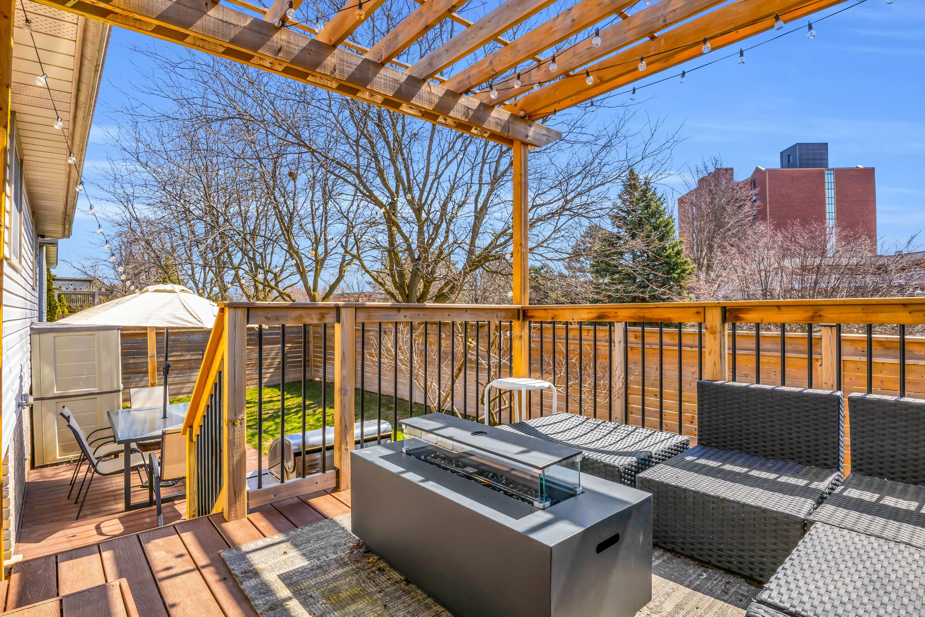 Welcome to 5 bradbury crescent in the charming town of paris, a beautifully renovated raised bungalow in the sought-after telferwood estates, with over $150,000 spent on thoughtful updates that elevate both style and function. Offering 2+1 bedrooms and 3 full bathrooms, this home has been thoughtfully renovated to create a bright and inviting space that feels both modern and comfortable. Step inside to an open and airy foyer with convenient garage access and stairs leading to the main floor, finished with a custom oak railing. The open concept living and dining area is filled with natural light from large windows and centered around a cozy gas fireplace. The fully renovated kitchen (2025) features quartz countertops, a large custom 4 ft by 8 ft island, natural gas stove, new stainless steel appliances, and plenty of cabinetry and prep space. Sliding doors off the kitchen lead to a composite deck with pergola, perfect for relaxing outdoors or hosting summer barbecues with the natural gas bbq hook up. The fully fenced backyard offers added privacy with no rear neighbours. The main level includes a spacious primary bedroom with a walk-in closet featuring custom built-ins and a newly added private ensuite with a tiled glass walk-in shower. A second bedroom and full bathroom complete this level. Downstairs, the finished lower level provides additional living space with a large recreation room featuring a second gas fireplace, an additional bedroom, a full bathroom, and a generous utility room and workshop. Additional features include waterproof laminate flooring throughout the main floor, an owned hot water tank (2024), central vacuum, reverse osmosis system, water softener, irrigation system, and a double car garage with partial 12 ft ceilings. Located within walking distance to catholic and public elementary schools as well as the local high school, and just minutes from restaurants, shopping, and the scenic downtown of paris.