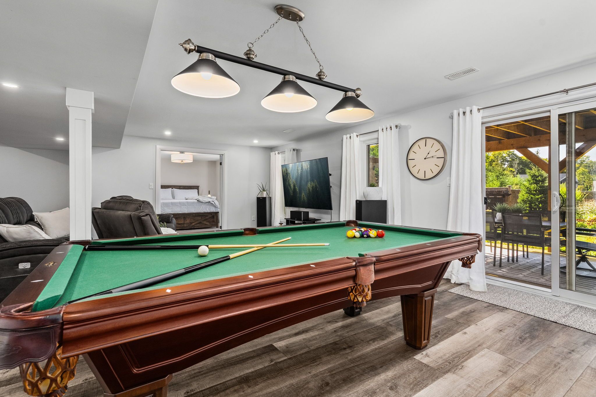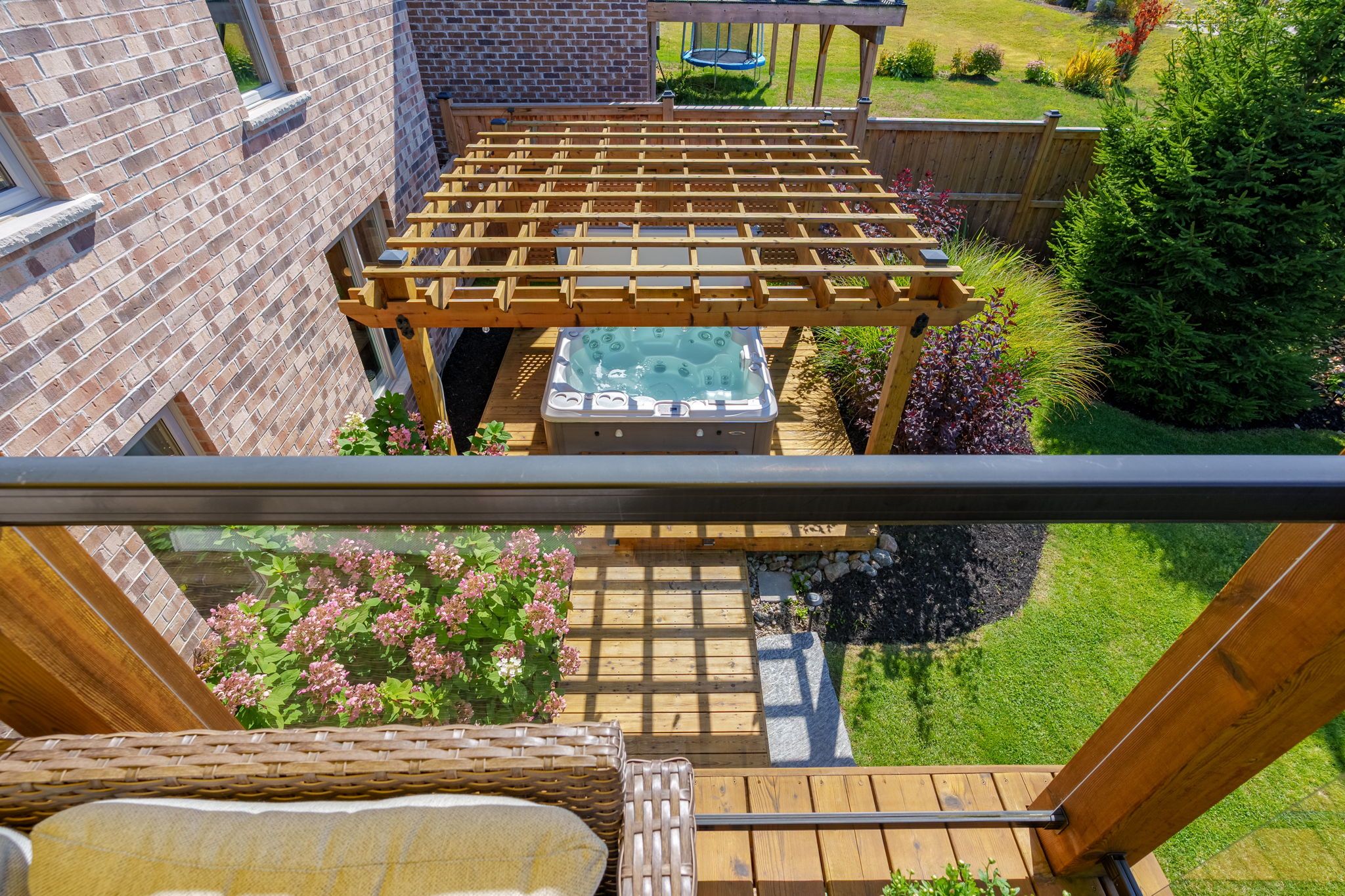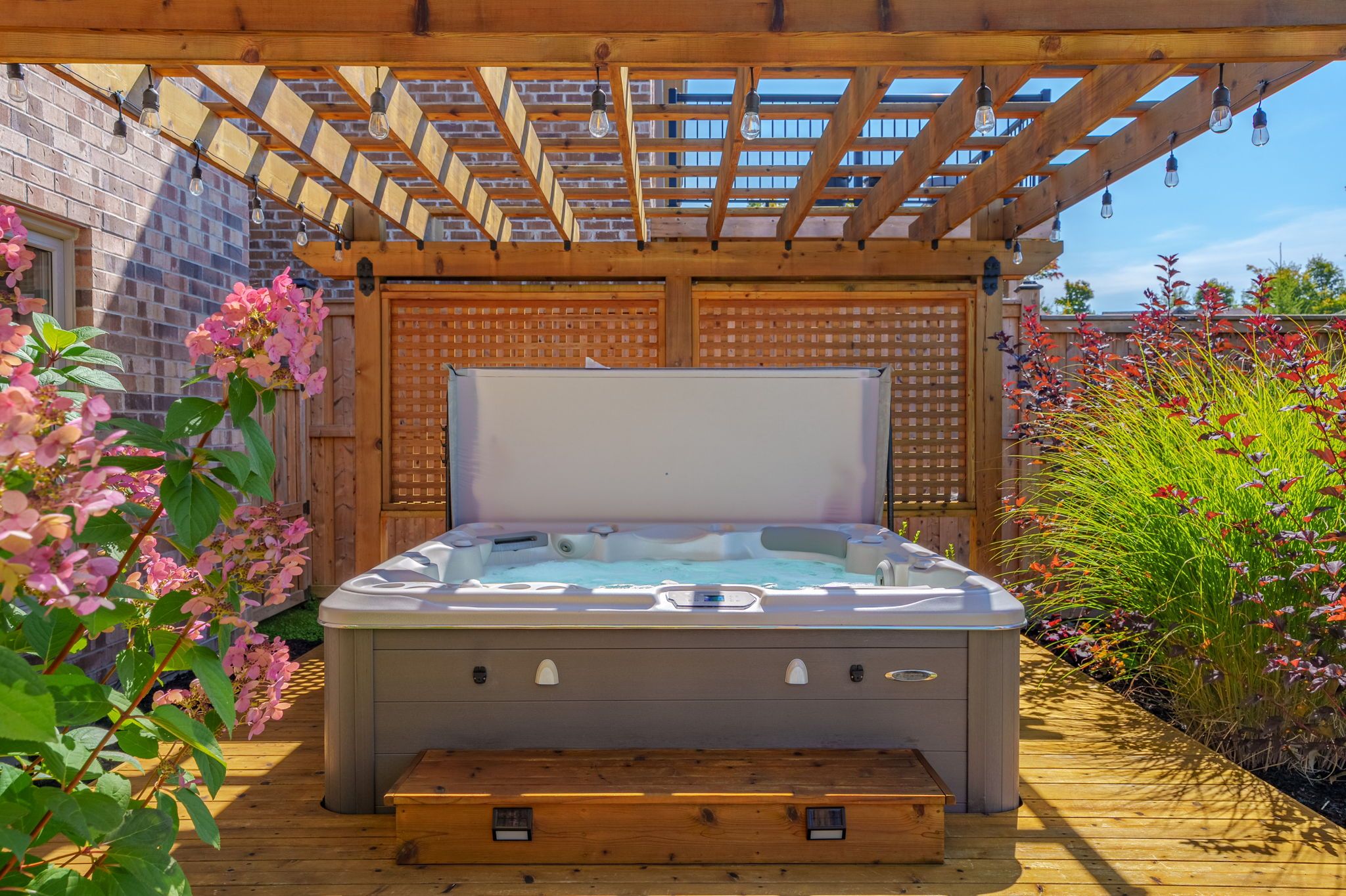 Situated in the highly sought-after settlers ridge community, this stunning 2700+sqft bungalow is the perfect blend of style, comfort, and sophistication. With its family-friendly location close to a park, elementary school, hospital, and just minutes from highways and downtown huntsville, convenience is at your doorstep. Step inside to discover an open-concept layout designed for both everyday living and effortless entertaining. The heart of the home is the show-stopping kitchen, featuring quartz countertops, a sprawling island, abundant storage, and top-of-the-line ge café appliances that bring both beauty and performance. The living room exudes warmth with its gas fireplace, while the dining area ideal for hosting family and friends flows seamlessly to a custom deck with sleek glass railings, creating the ultimate indoor-outdoor connection. Freshly painted and finished with engineered hardwood flooring throughout the main level, this home radiates modern elegance. The primary suite is a true retreat with a walk-in closet and 4-piece ensuite, complemented by upgraded vanities and designer lighting. Motorized blinds add a touch of luxury and convenience to the bright and airy spaces. The lower level is equally impressive, boasting a spacious recreation room, bright bedroom, a versatile den or additional bedroom, and a stylish 3-piece bath. From here, walk out to a fabulous outdoor seating area that overlooks your backyard sanctuary. Fully fenced for privacy and beautifully landscaped with mature perennial gardens, a pergola, and a hot tub, this outdoor haven feels like your own private resort. Every detail of this home has been meticulously maintained and thoughtfully upgraded, offering a lifestyle that is as functional as it is luxurious. Move in and experience a sanctuary where every day feels like a getaway.
