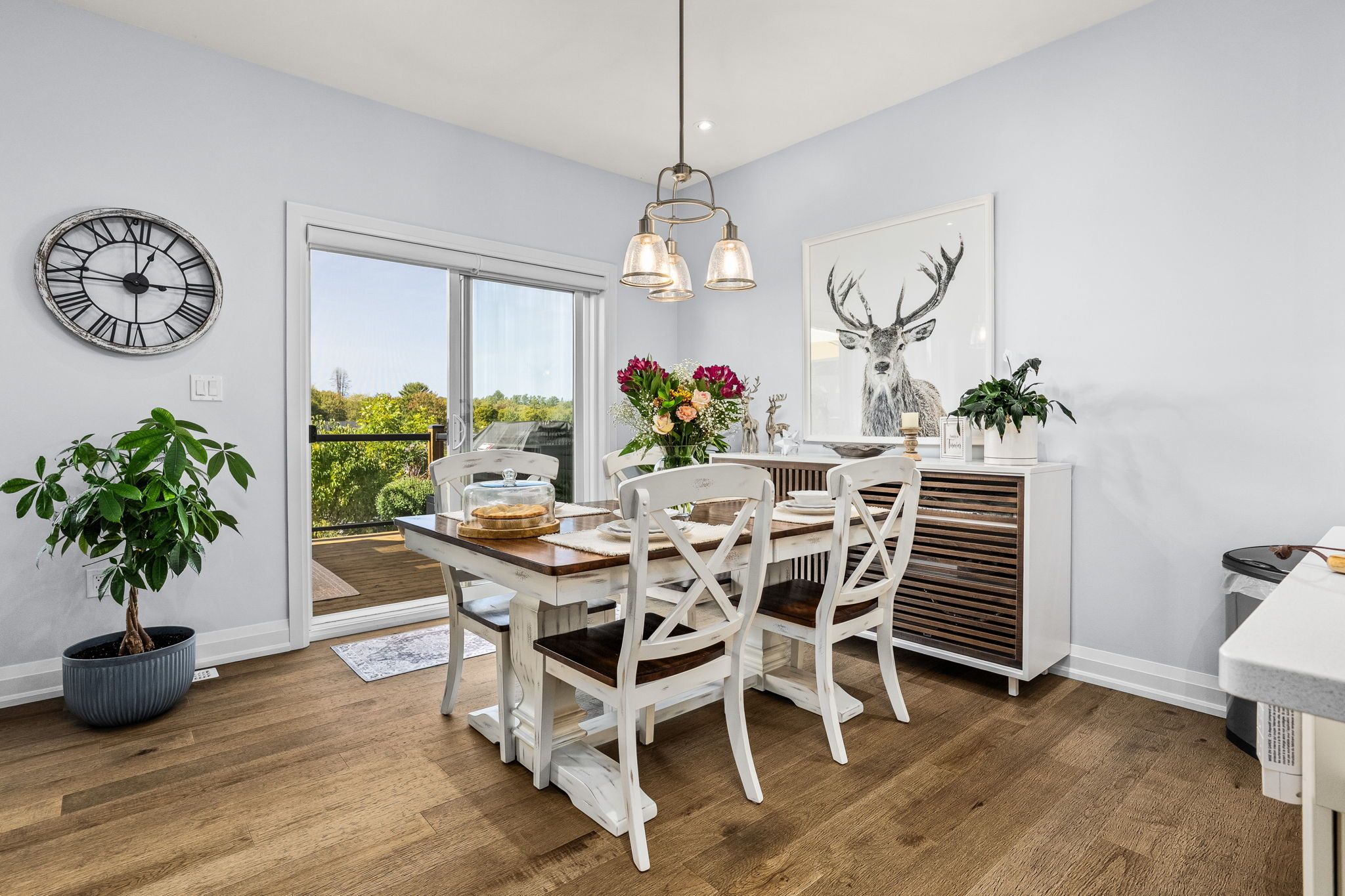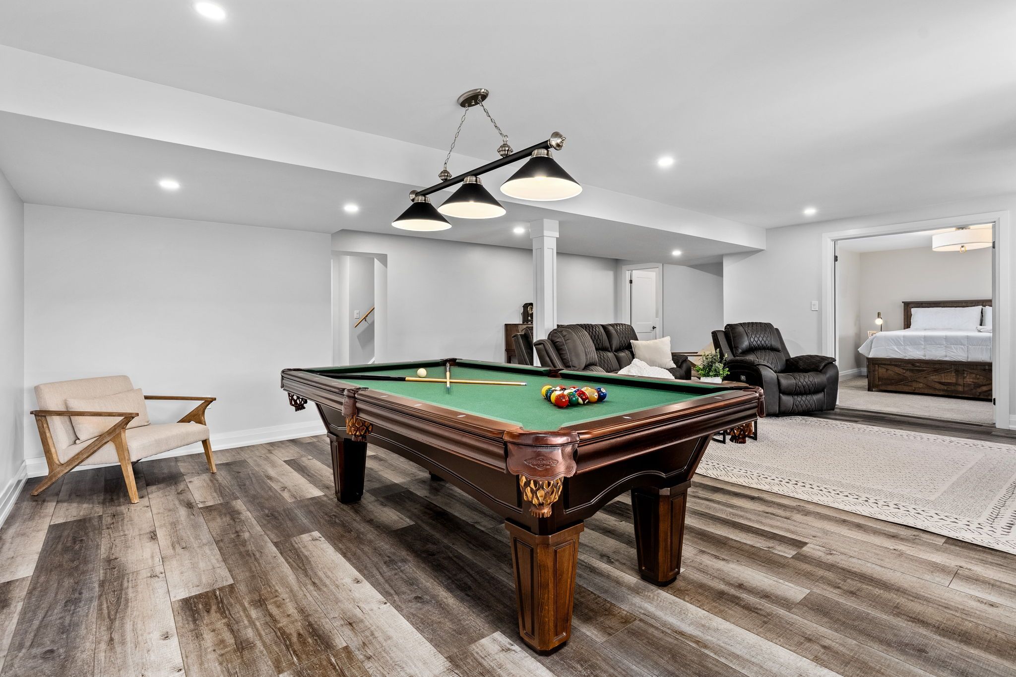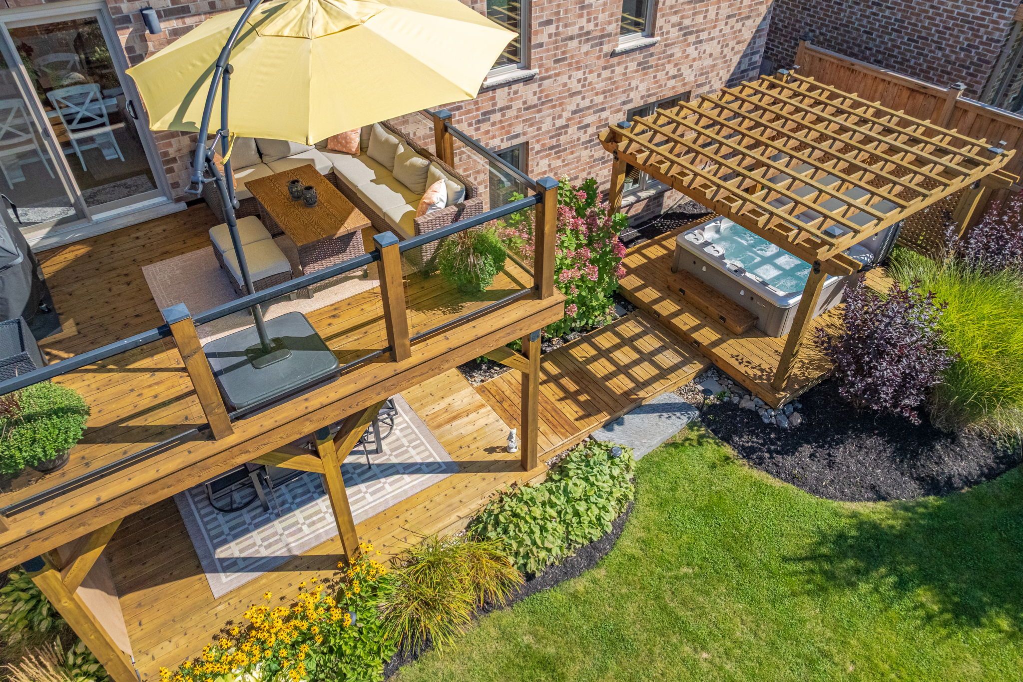 Situated in the highly sought-after settlers ridge community, this stunning 2700+sqft bungalow is the perfect blend of style, comfort, and sophistication. With its family-friendly location close to a park, elementary school, hospital, and just minutes from highways and downtown huntsville, convenience is at your doorstep. Step inside to discover an open-concept layout designed for both everyday living and effortless entertaining. The heart of the home is the show-stopping kitchen, featuring quartz countertops, a sprawling island, abundant storage, and top-of-the-line ge café appliances that bring both beauty and performance. The living room exudes warmth with its gas fireplace, while the dining area ideal for hosting family and friends flows seamlessly to a custom deck with sleek glass railings, creating the ultimate indoor-outdoor connection. Freshly painted and finished with engineered hardwood flooring throughout the main level, this home radiates modern elegance. The primary suite is a true retreat with a walk-in closet and 4-piece ensuite, complemented by upgraded vanities and designer lighting. Motorized blinds add a touch of luxury and convenience to the bright and airy spaces. The lower level is equally impressive, boasting a spacious recreation room, bright bedroom, a versatile den or additional bedroom, and a stylish 3-piece bath. From here, walk out to a fabulous outdoor seating area that overlooks your backyard sanctuary. Fully fenced for privacy and beautifully landscaped with mature perennial gardens, a pergola, and a hot tub, this outdoor haven feels like your own private resort. Every detail of this home has been meticulously maintained and thoughtfully upgraded, offering a lifestyle that is as functional as it is luxurious. Move in and experience a sanctuary where every day feels like a getaway.