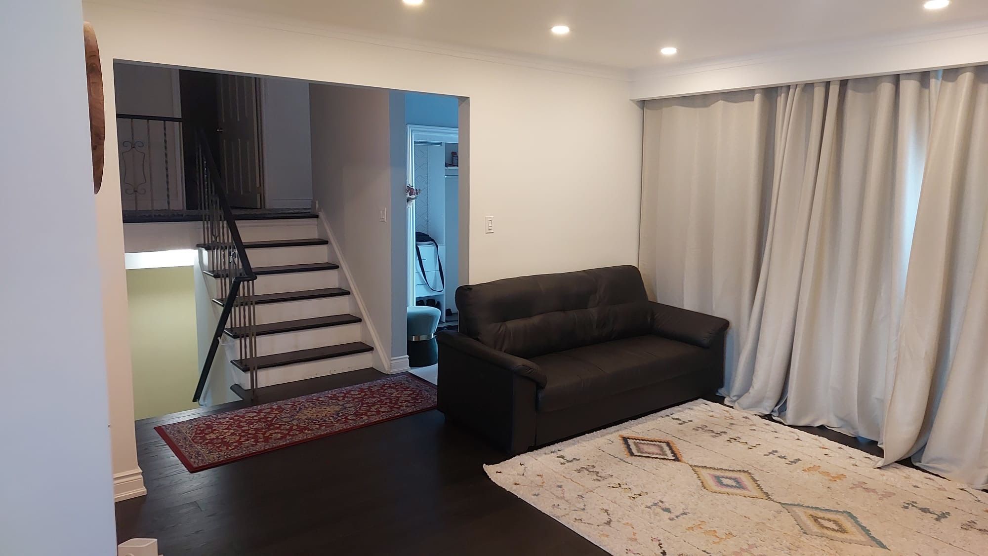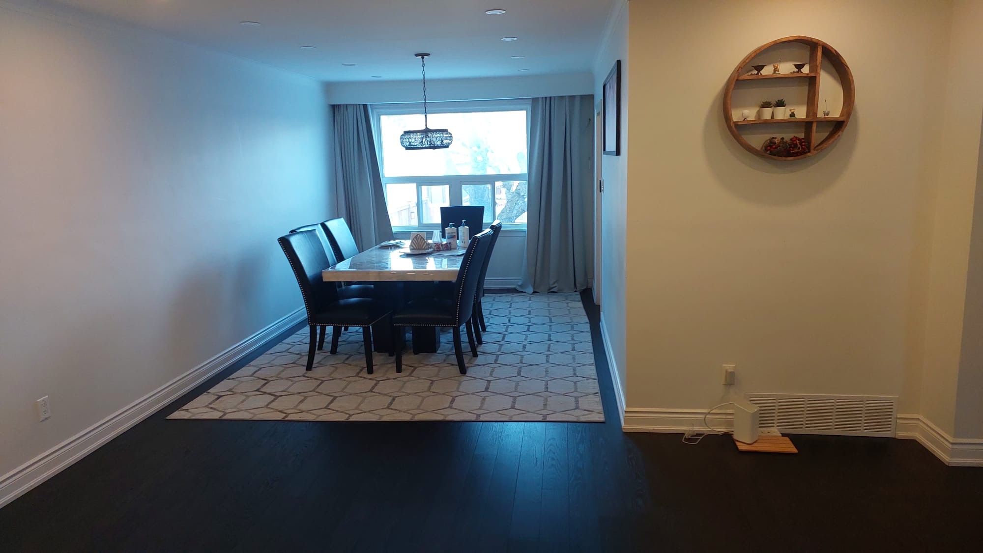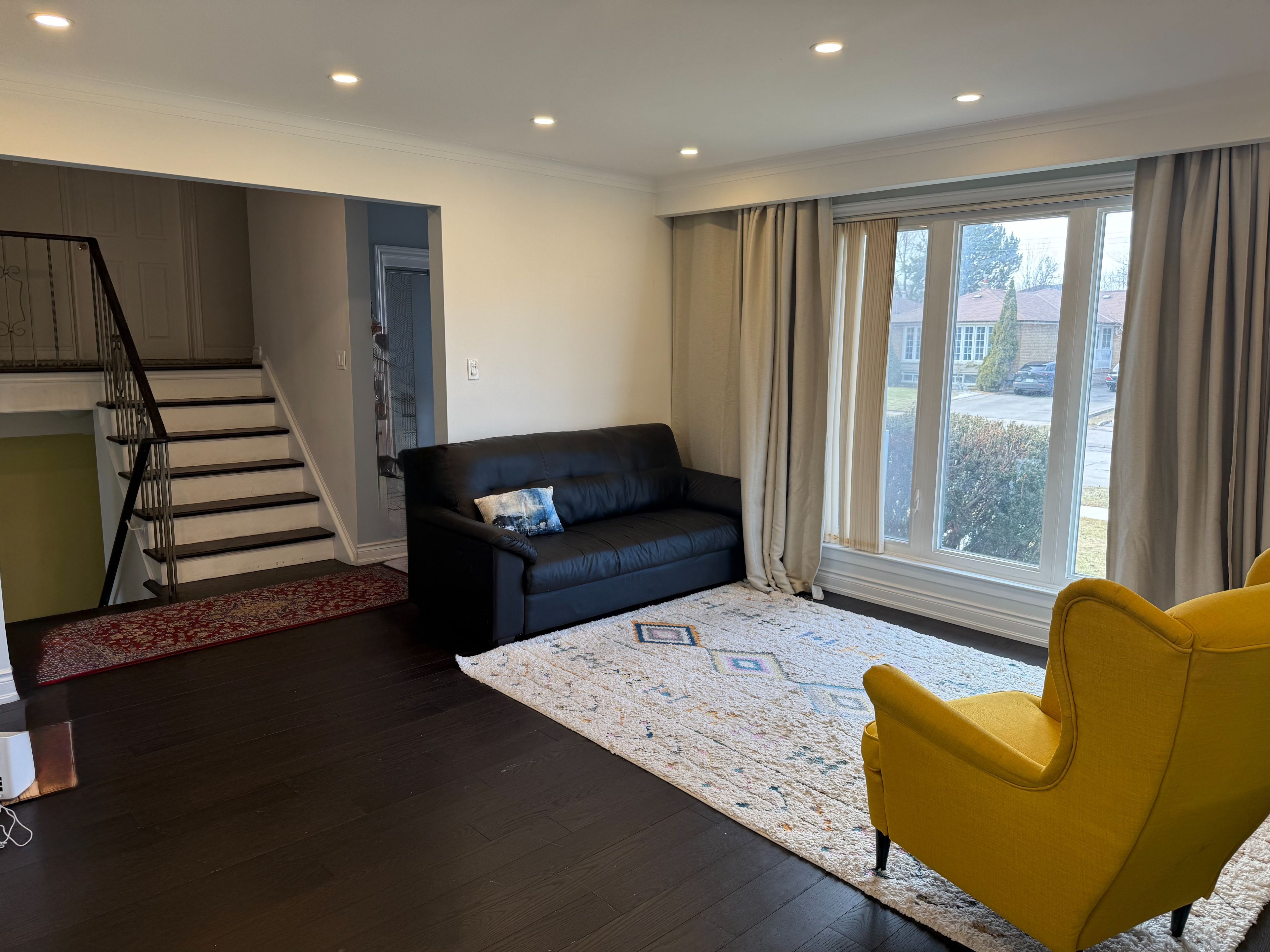 Welcome to this warm and well-maintained 4-level side-split home offering generous living space in a highly convenient etobicoke location. The main floor features a bright and spacious living area with hardwood flooring, recessed lighting, and a cozy fireplace, flowing seamlessly into a large dining space ideal for everyday living and entertaining. The eat-in kitchen offers ample cabinetry and workspace, along with a window overlooking the backyard. This home includes three well-sized bedrooms plus a versatile den that can easily function as a fourth bedroom, home office, or guest space. The finished lower level provides a spacious family room with a second fireplace, creating a comfortable area for relaxing or additional living space. A beautifully updated 3-piece bathroom features heated floors and a modern glass shower. Situated on a large lot, the property offers a private backyard retreat complete with a gazebo and mature trees, perfect for outdoor gatherings or quiet relaxation. Ideally located just minutes to highways 401, 427, and 400, pearson airport, go transit, and everyday shopping and amenities, this home offers both comfort and exceptional convenience.