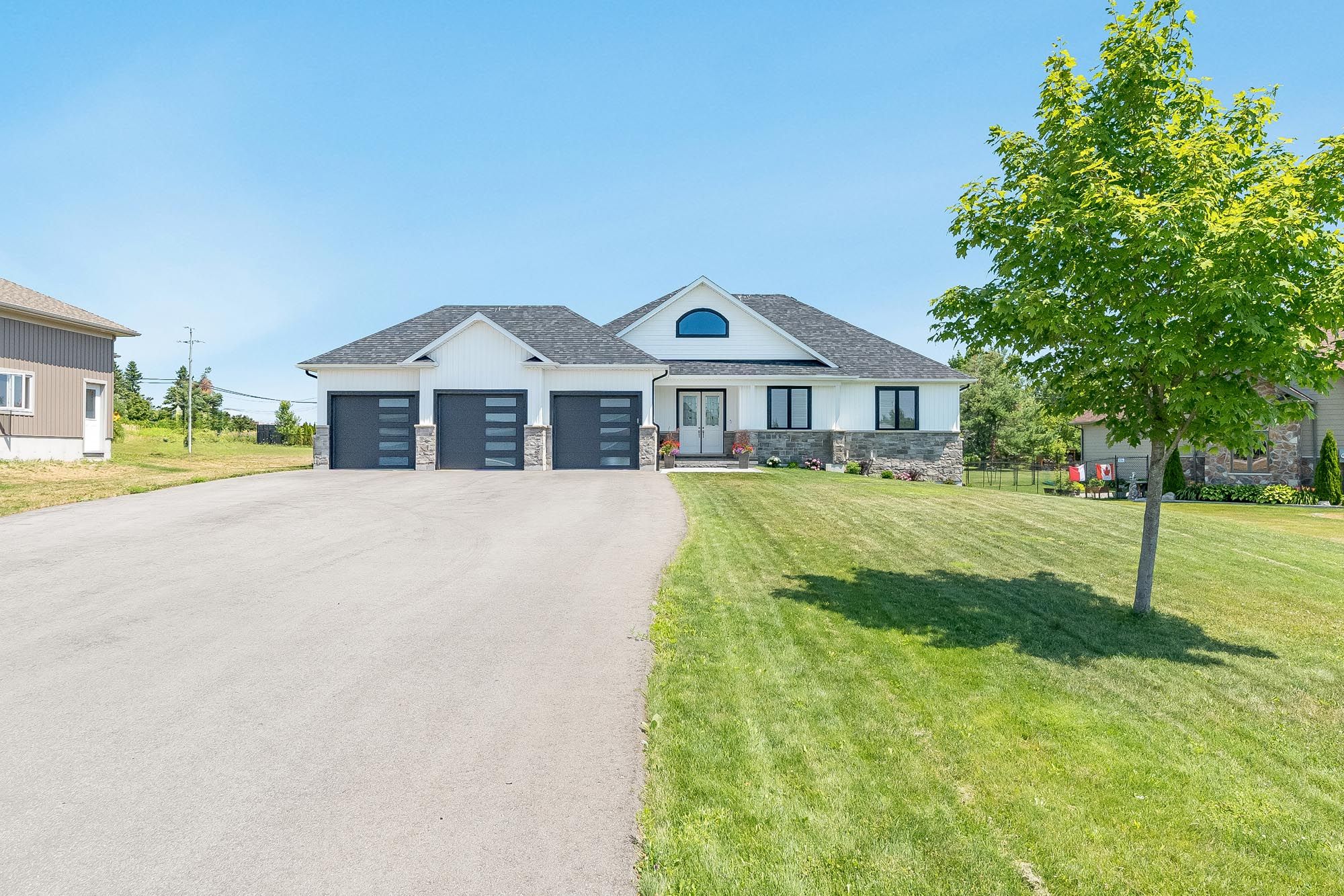Top 5 reasons you will love this home: 1) set on a 0. 75-acre lot, this stunning custom-built home offers breathtaking sunrise views from the backyard and unforgettable sunsets from the front, all within a 15 minute walk to bass lake, the striking white board & batten ranch style bungalow with sleek black accents creates an impressive first impression, with an oversized three-car garage, featuring extra depth in the centre, perfect for a truck or van 2) the twice-paved driveway (2024) provides ample, secure parking for rvs, boats, and multiple vehicles, with the eye-catching jewel stone interlock walkway leading to the front entrance, while the rear of the home features a poured concrete covered porch, complete with a gas barbeque hookup and perched atop a scenic hill, framing panoramic countryside views 3) instantly feel at home in the grand, light-filled entryway showcasing soft white and grey porcelain tile, leading to a stunning wall of windows and doors overlooking the expansive backyard, along with a kitchen featuring an impressive quartz island, vaulted ceilings, a beautiful gas fireplace, and black-trimmed doors topped with transom windows flooding the space with natural light 4) designed for modern comfort and convenience, the home is equipped with stainless-steel appliances, including a new stainless-steel stove, an owned humidifier, water softener, full water filtration system, and upgraded wood flooring on the main level, with a well-designed laundry room providing direct access to the garage 5) appreciate the full basement thoughtfully prepared with an installed subfloor, insulated exterior walls, and high-grade vinyl flooring (approximately $1,900), ready for two bedrooms and a bathroom; located just six minutes from orillia and essential amenities, with a gas station and shops nearby, and access to skiing, biking, and water sports. 1,929 above grade sq. Ft. Plus an unfinished basement.