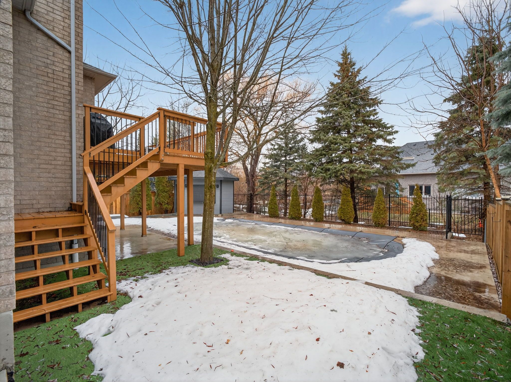 • Large deck and landscaped backyard with an in-ground pool.