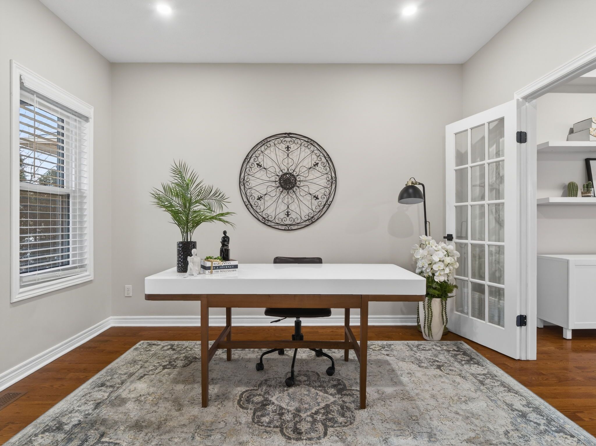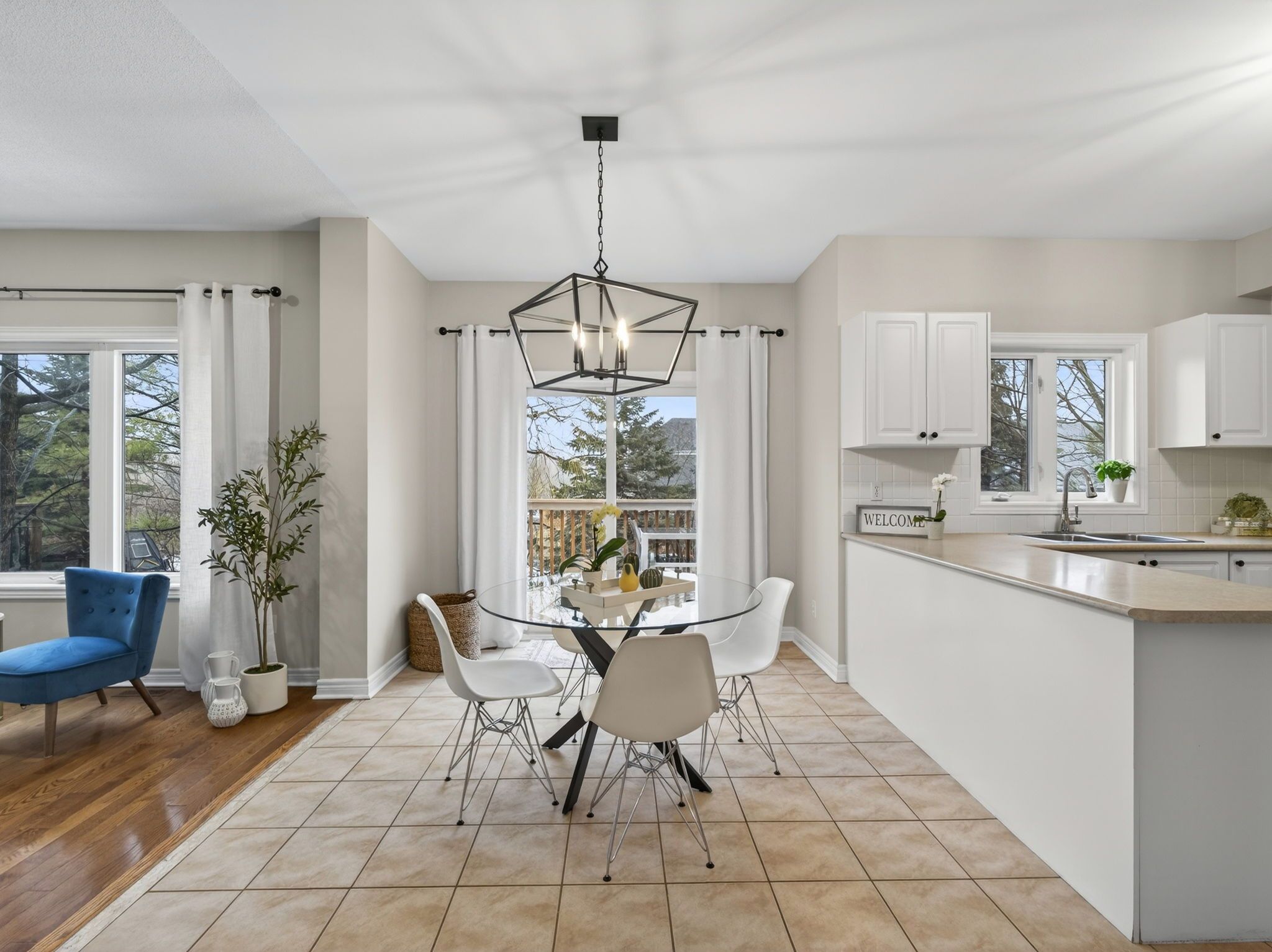 • Bright open-concept layout with 9' ceilings and hardwood floors.