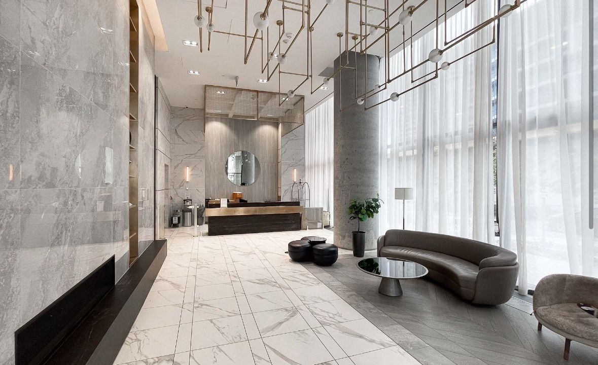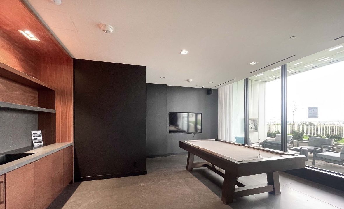 • Amenities include a gym, party room, and golf simulator.