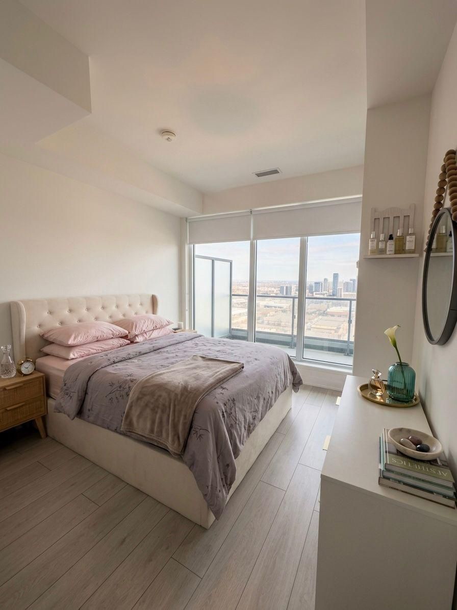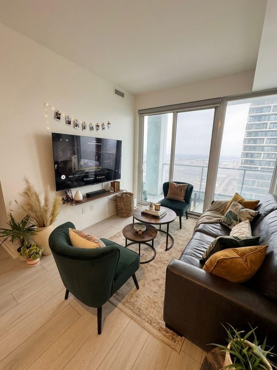 Spacious 2 bed + den + 2 full bath suite located in 100 acre smart vmc master planned community. Open concept with 9 ft. Ceiling and laminate throughout. Functional large den with sliding doors can be used as office or 3rd bed, large balcony with fabulous north view, parking and locker! Fantastic location just steps to the vmc subway, bus station and ymca. Steps to subway, regional transit and major highways. Close to york university & vaughan mills shopping centre, and all amenities.