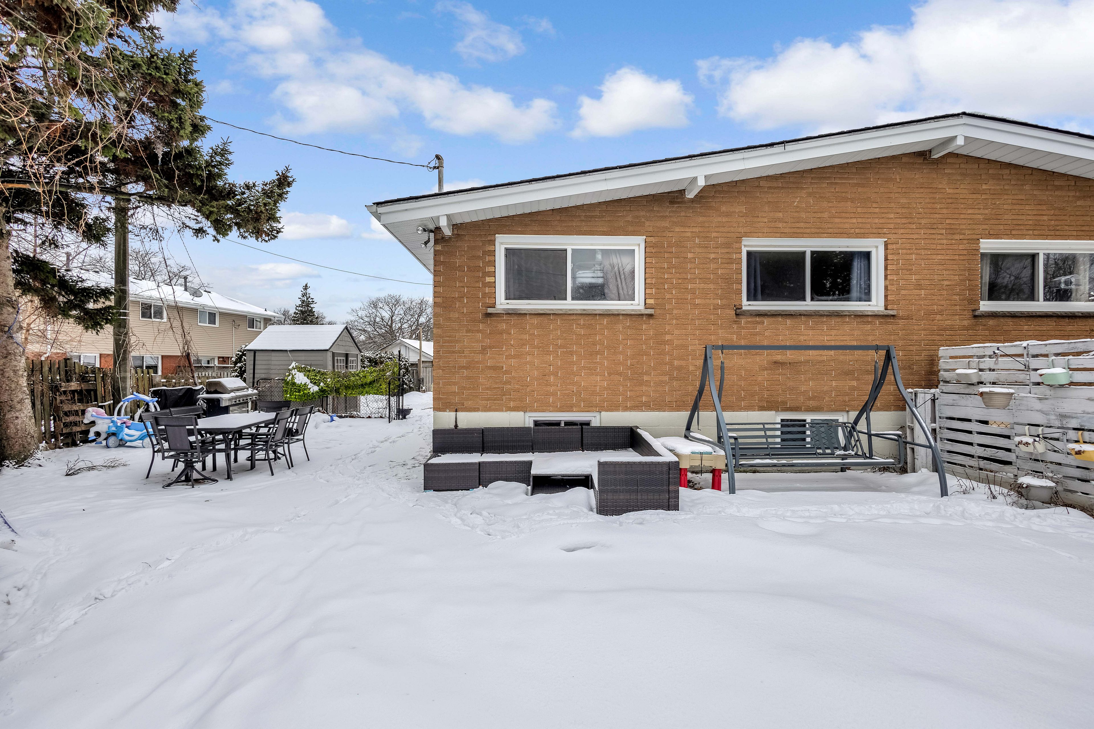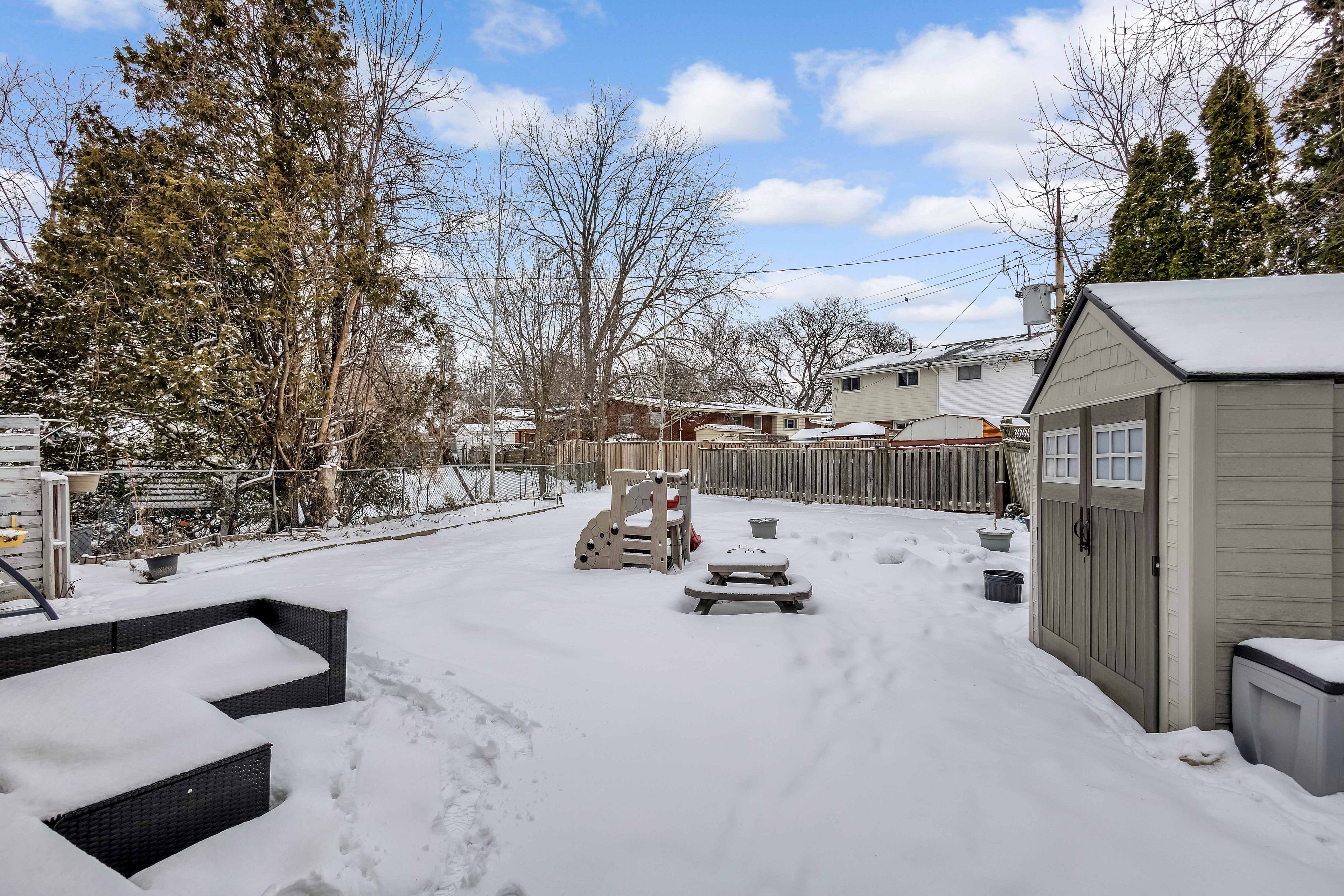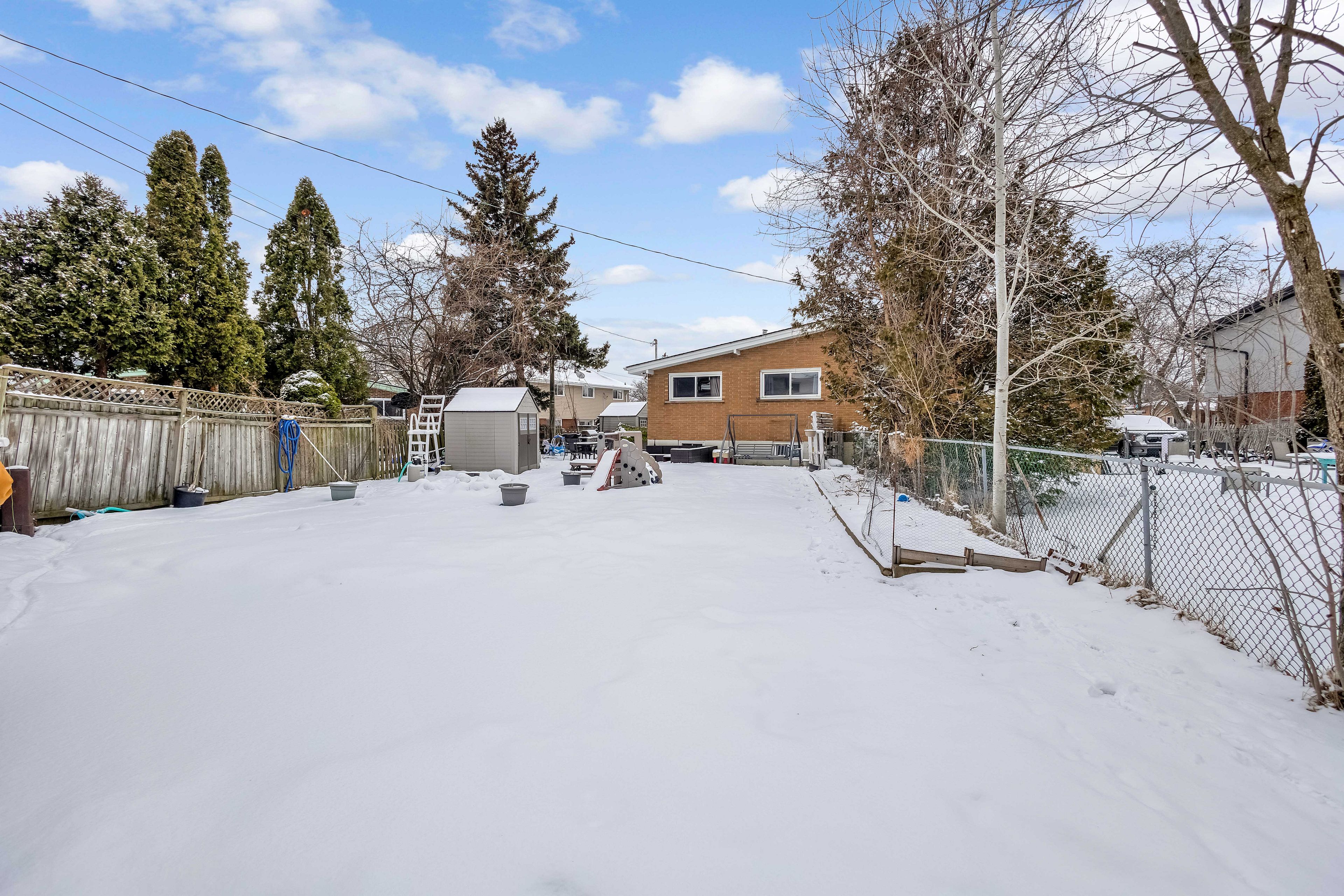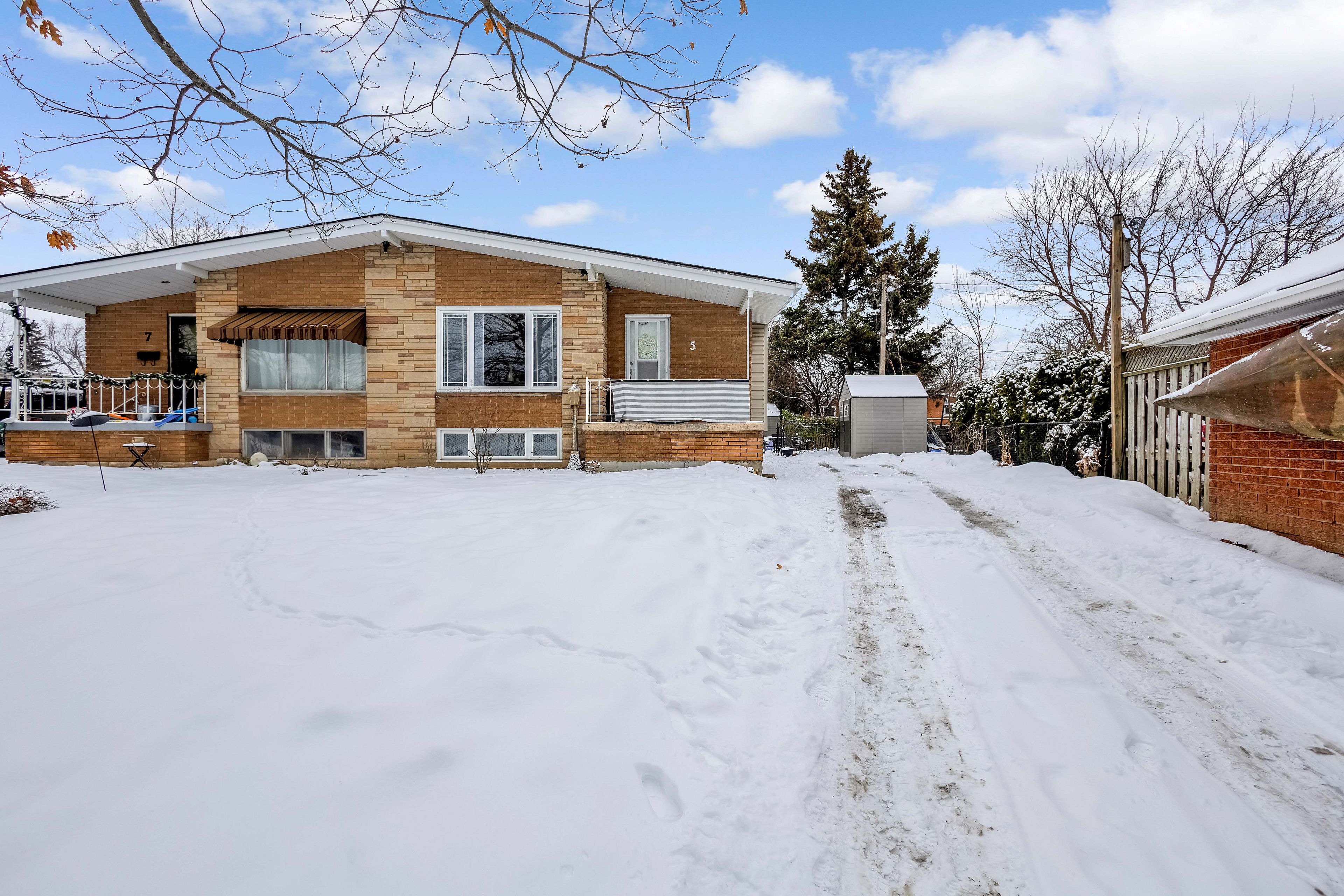 Welcome to 5 carrington court, tucked away in the highly desirable bruleville neighbourhood on hamilton mountain, a quiet family friendly community close to excellent schools, shopping, transit, and major commuter routes. This exceptional location offers the perfect balance of peaceful cul de sac living with easy access to everyday amenities and nearby recreational trails. Inside, this thoughtfully updated 3 plus 1 bedroom, 2 bathroom home blends style and functionality with ease. The bright family room features a vaulted ceiling and a striking rustic fireplace feature wall, creating a warm and inviting focal point for cozy evenings. The refreshed kitchen showcases two tone cabinetry, a modern backsplash, and pot lighting for a clean contemporary look. A sleek 3 piece main bathroom with a stand up shower complements the main level, while the generously sized bedrooms include a comfortable primary retreat with a full wall closet. The separate side entrance to the basement offers outstanding versatility with the potential to convert the space into an in law suite or rental opportunity for ultimate flexibility. The lower level is complete with a spacious rec room with pot lights, a full 4 piece bathroom, an additional well sized bedroom, a storage room and laundry room for all your needs. Step outside to a truly rare find, a massive backyard approximately 165 feet deep, offering exceptional privacy and endless possibilities for entertaining, play, gardening, or future outdoor projects. A home that truly checks all the boxes. Rsa