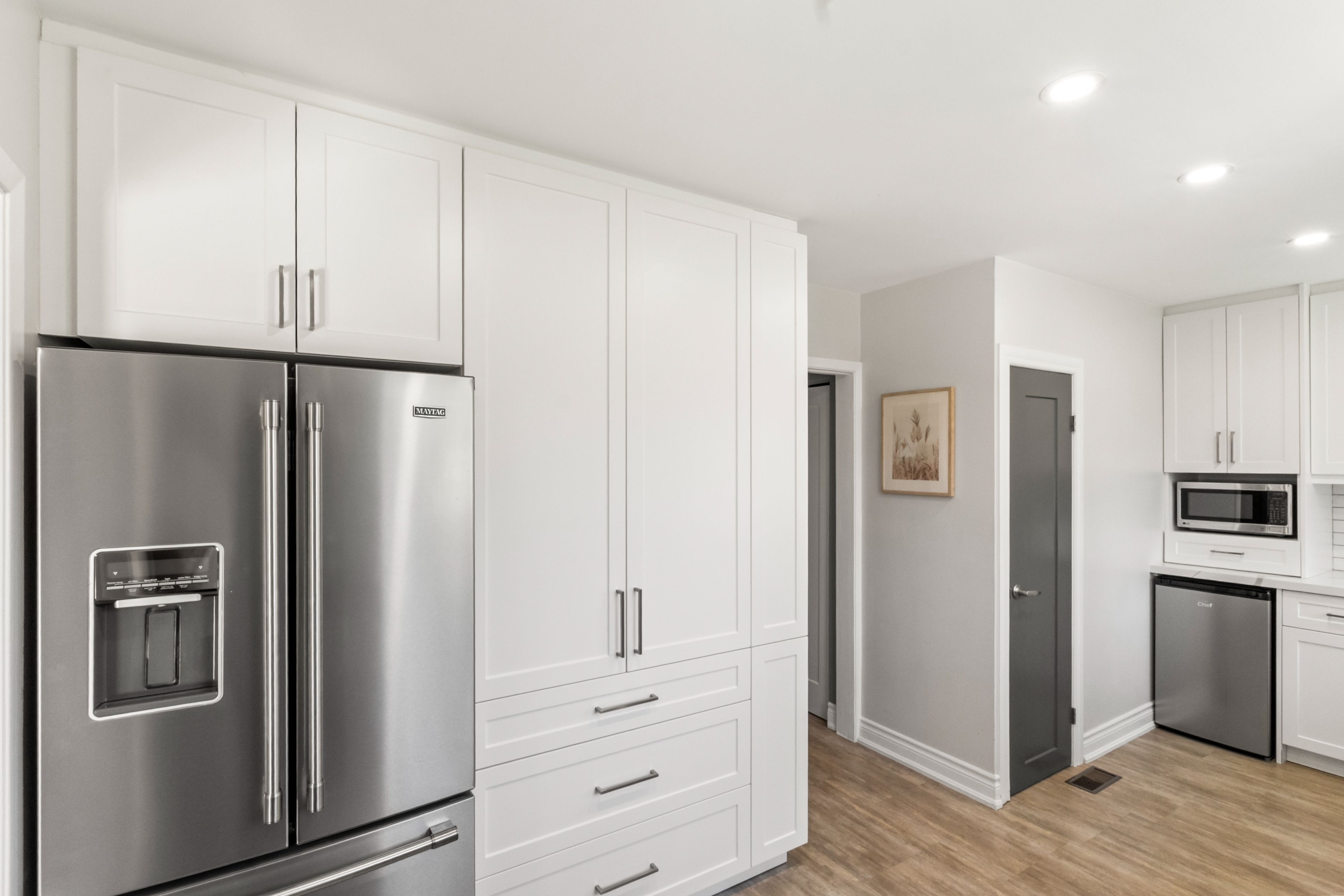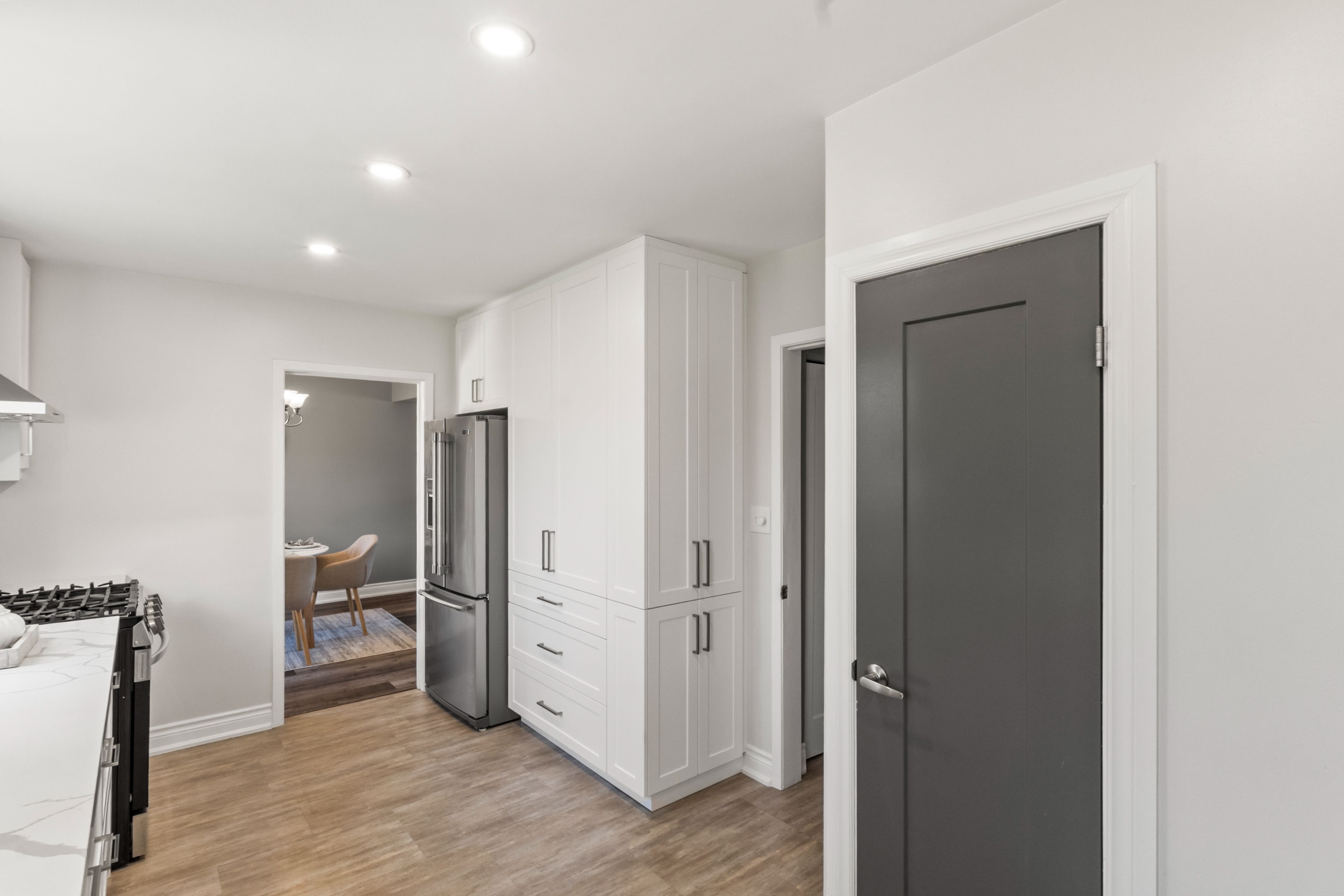 • Private, fully fenced backyard with a large new deck for gatherings.
