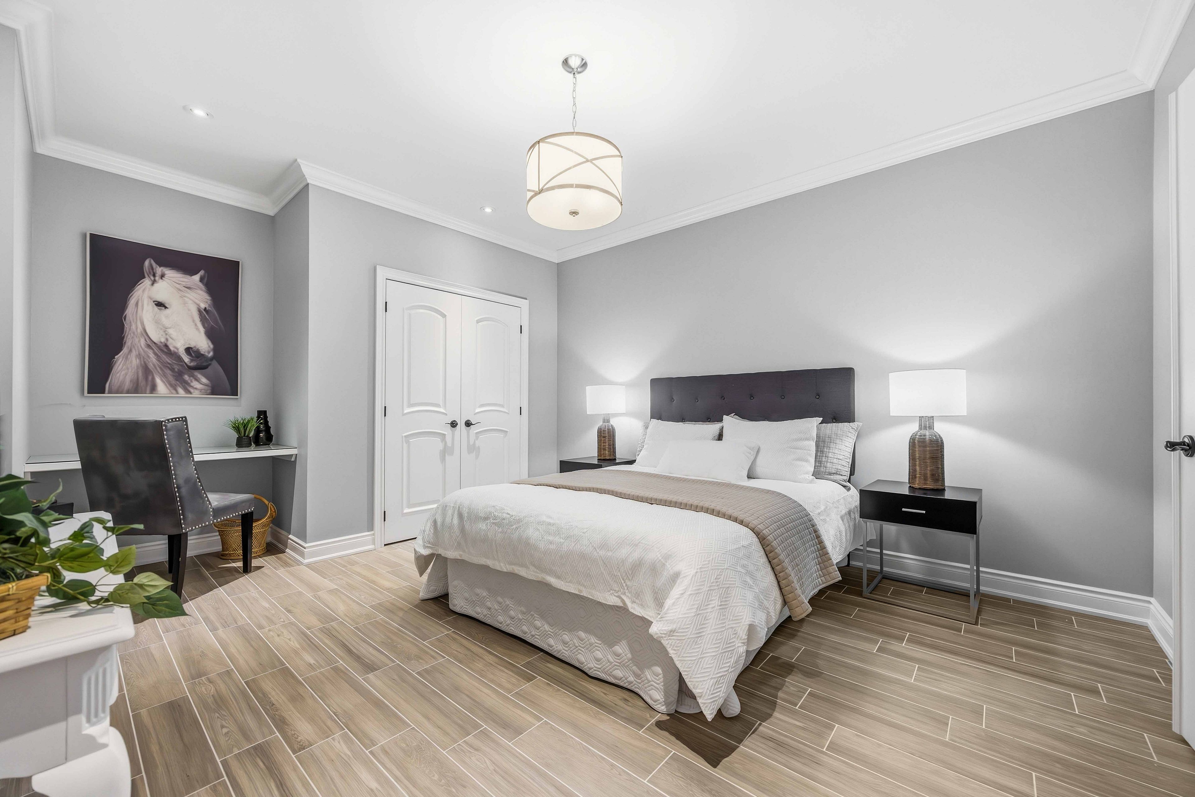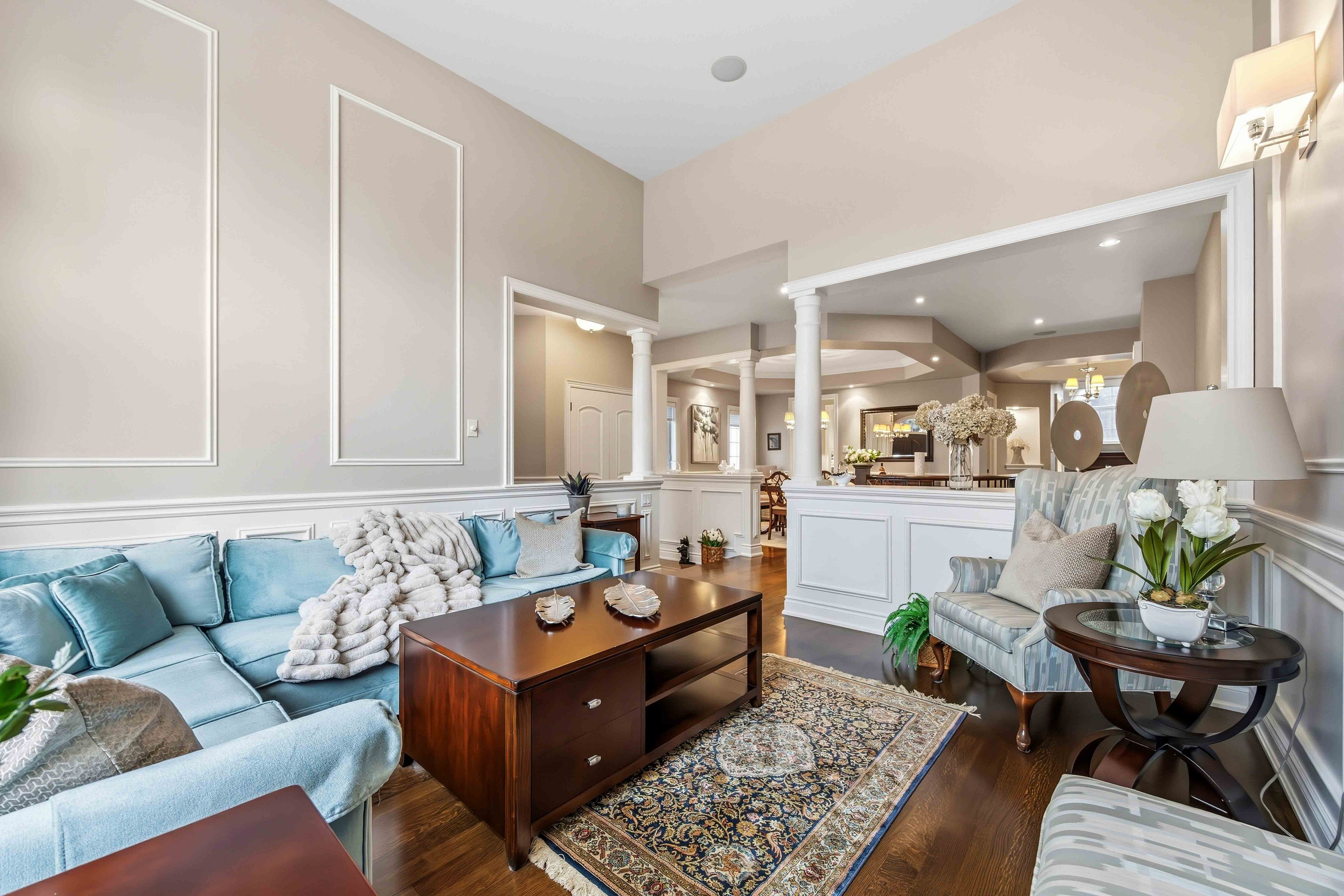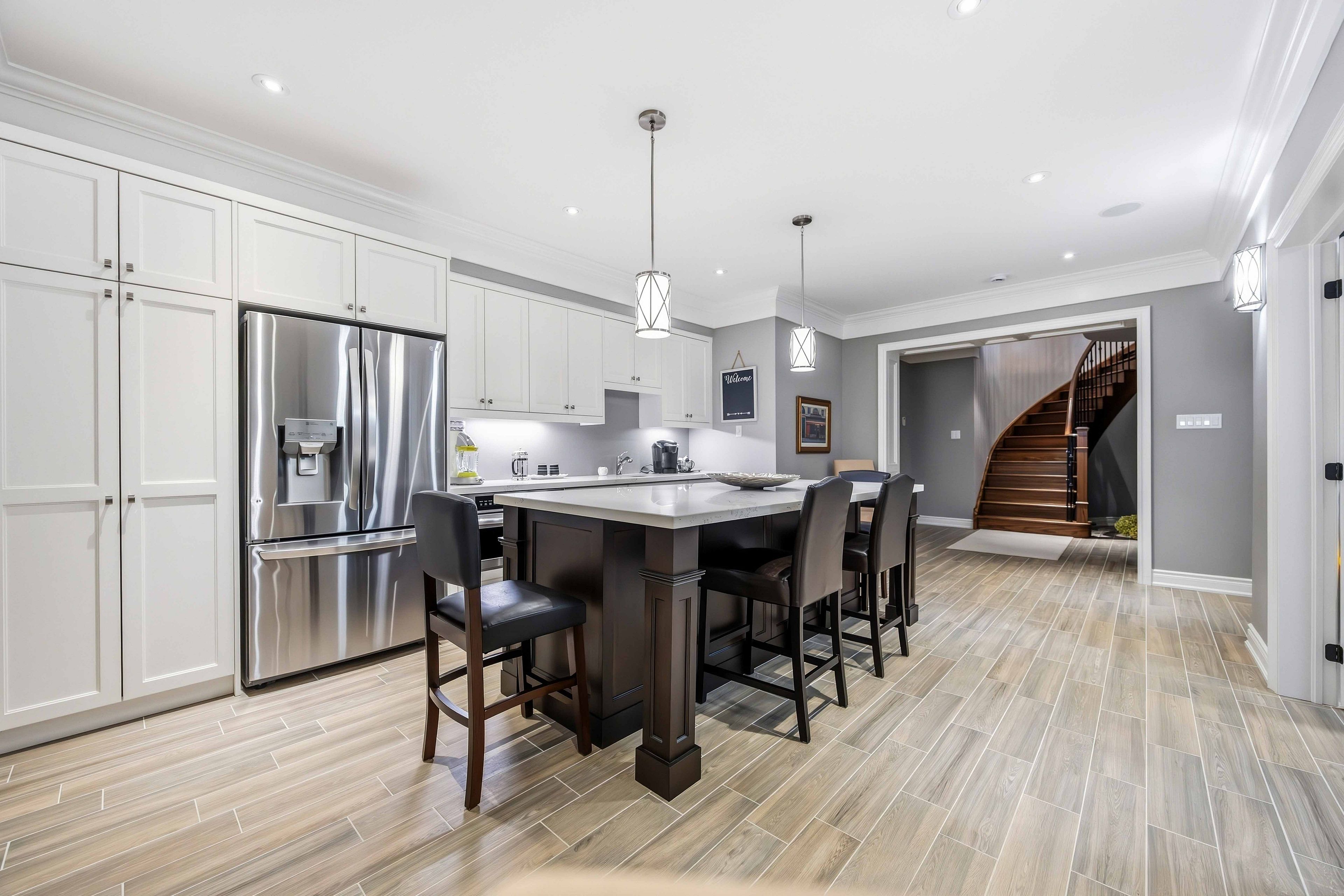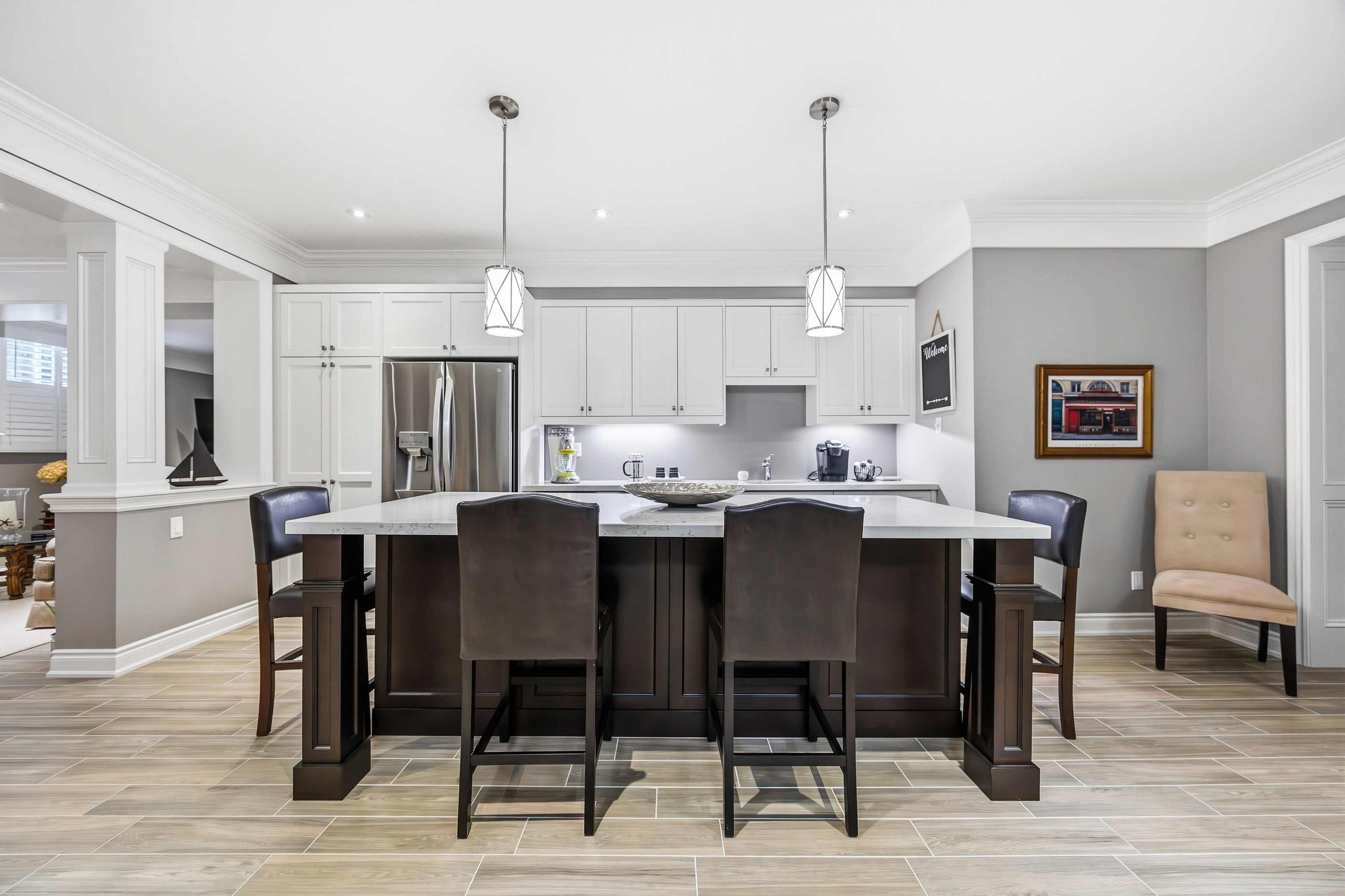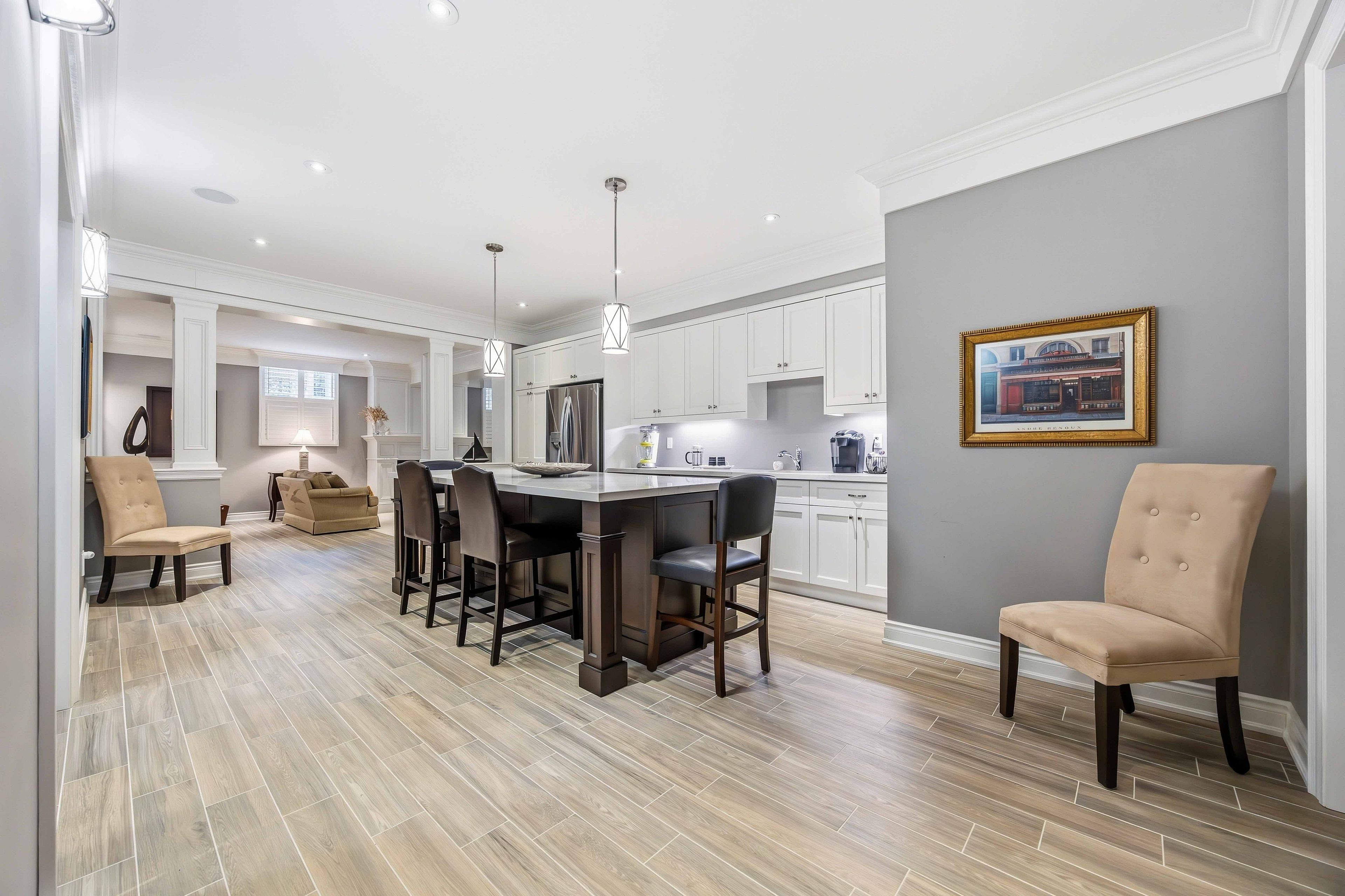 • Open-concept design with premium hardwood floors and high ceilings.