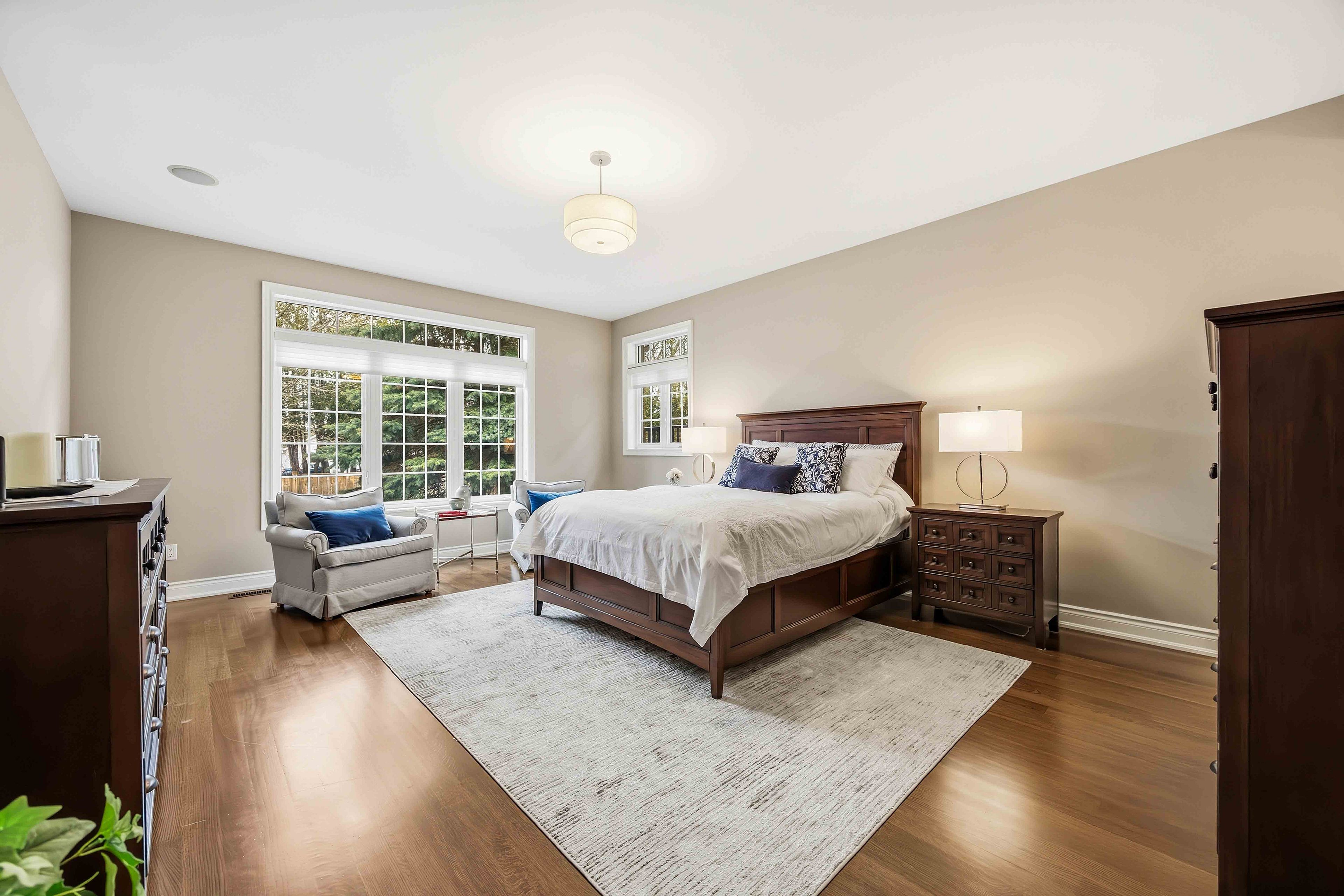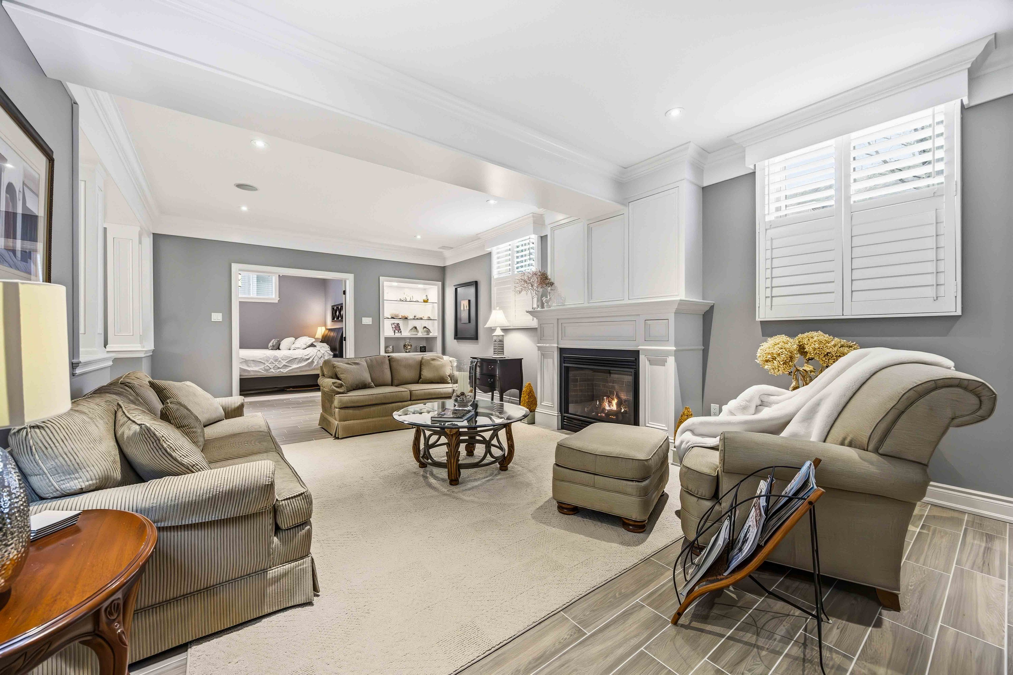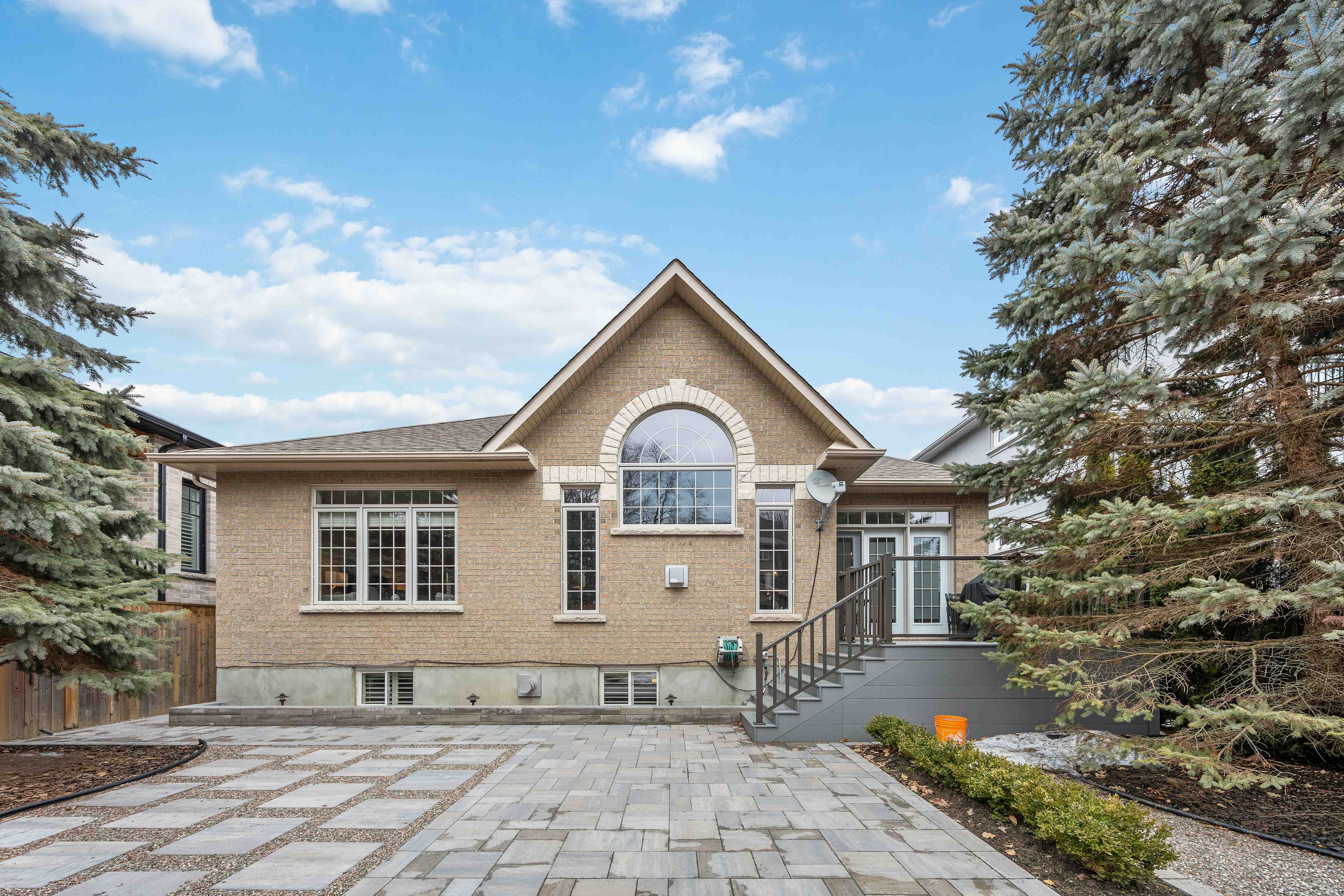 Stunning custom-built executive bungalow offering 2+2 bedrooms, 4 bathrooms, and a beautifully finished in-law suite! This open-concept home features premium upgrades throughout, including extensive hardwood flooring, hardwood staircase with wrought iron spindles, pot lighting, crown moulding, custom millwork, wainscotting, art niches, built-in surround sound, and 9 ft ceilings on both levels. The formal living room impresses with a 12 ft ceiling and a striking palladian window. Designed for entertaining, the elegant dining room showcases a coffered ceiling. The gourmet kitchen boasts granite countertops, built-in appliances, gas range with pot filler, custom backsplash, butler's pantry, and breakfast bar. The breakfast area offers a walk-out to a maintenance-free 10x10 composite deck with glass railings, overlooking a private newly landscaped backyard with 12x12 interlocking patio, mature trees, and lush gardens. Inviting family room featuring a vaulted ceiling, cozy gas fireplace, and serene backyard views. The main floor includes two spacious bedrooms, including a primary retreat with walk-in closet and spa-like 4-piece ensuite with glass rain shower. Main floor laundry offers quartz counters, garage access, and ample storage. The finished lower level with icf construction includes above-grade windows, hydronic heated porcelain floors, a full second kitchen with 98" quartz island, large rec room with gas fireplace, 3-piece bath, two additional bedrooms, office, exercise room, workshop, cold cellar, and generous storage. Located on a sought-after brooklin street, just steps to parks, schools, downtown shops, and with easy access to hwy 407. See attached for a complete list of upgrades!