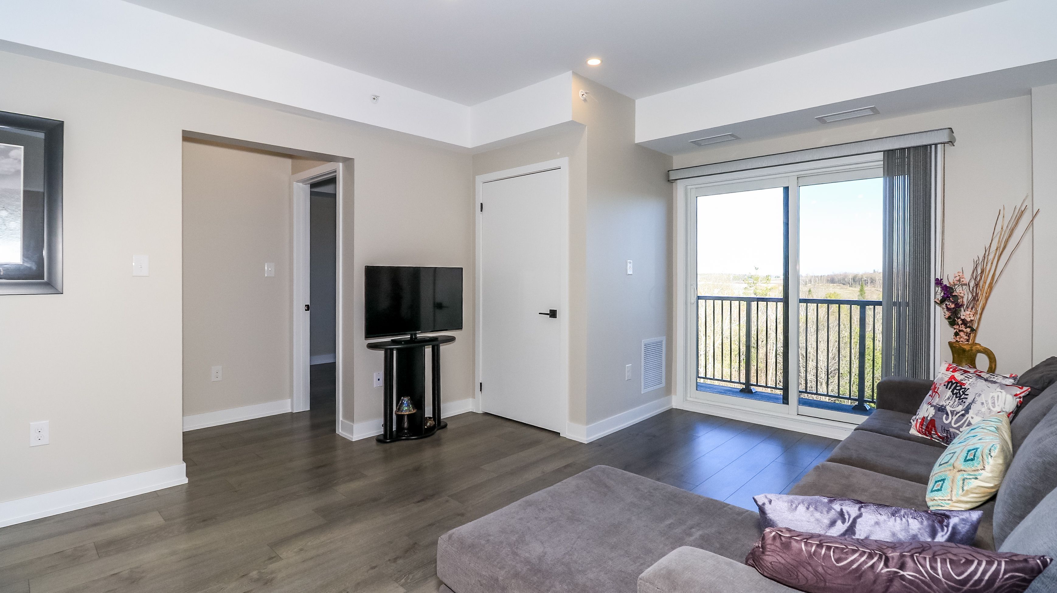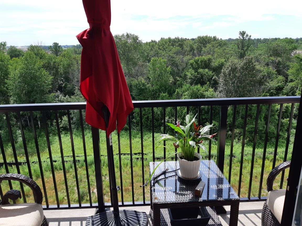 Luxury living at an affordable price! Located in well sought after south east barrie close to all amenities including go train. This spacious 1123 sq ft home has spectacular woodland views from your private enclosed balcony, great room and bedrooms. Freshly painted and immaculate! Spacious primary bedroom with walk through closet and beautiful 3 piece ensuite washroom with walk in shower. Generous size 2nd bedroom with view of woodlands. Den/office/library/guest room allows for extra space for whatever your needs may be. Gleaming modern kitchen with high quality quartz counters including large island with quartz waterfall. Smooth ceilings with extra pots lights. Quartz countertops in both bathrooms. Property has a community kitchen and gym. Natural gas hookup on balcony. This amazing home is a must see. Move in ready!!