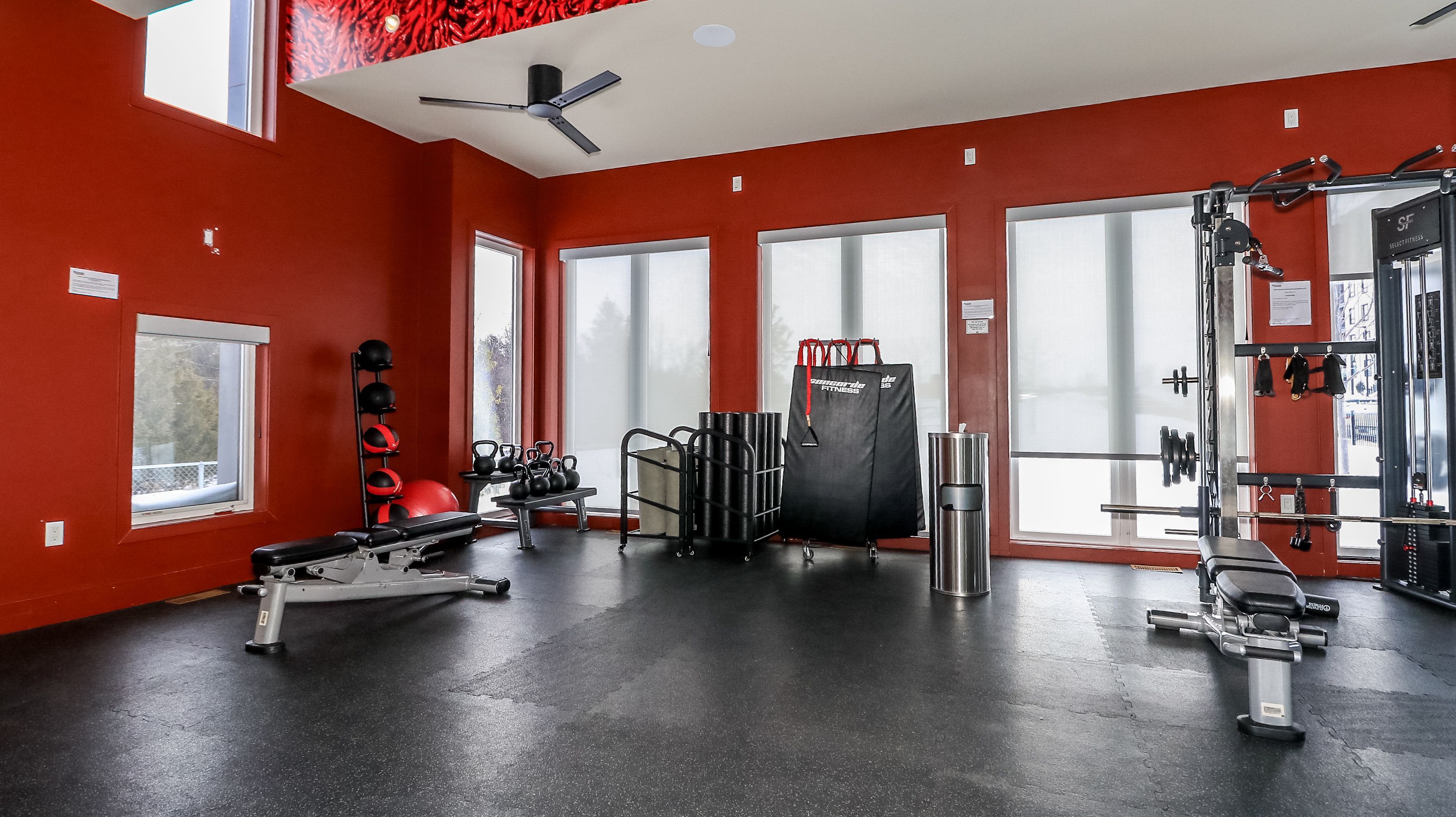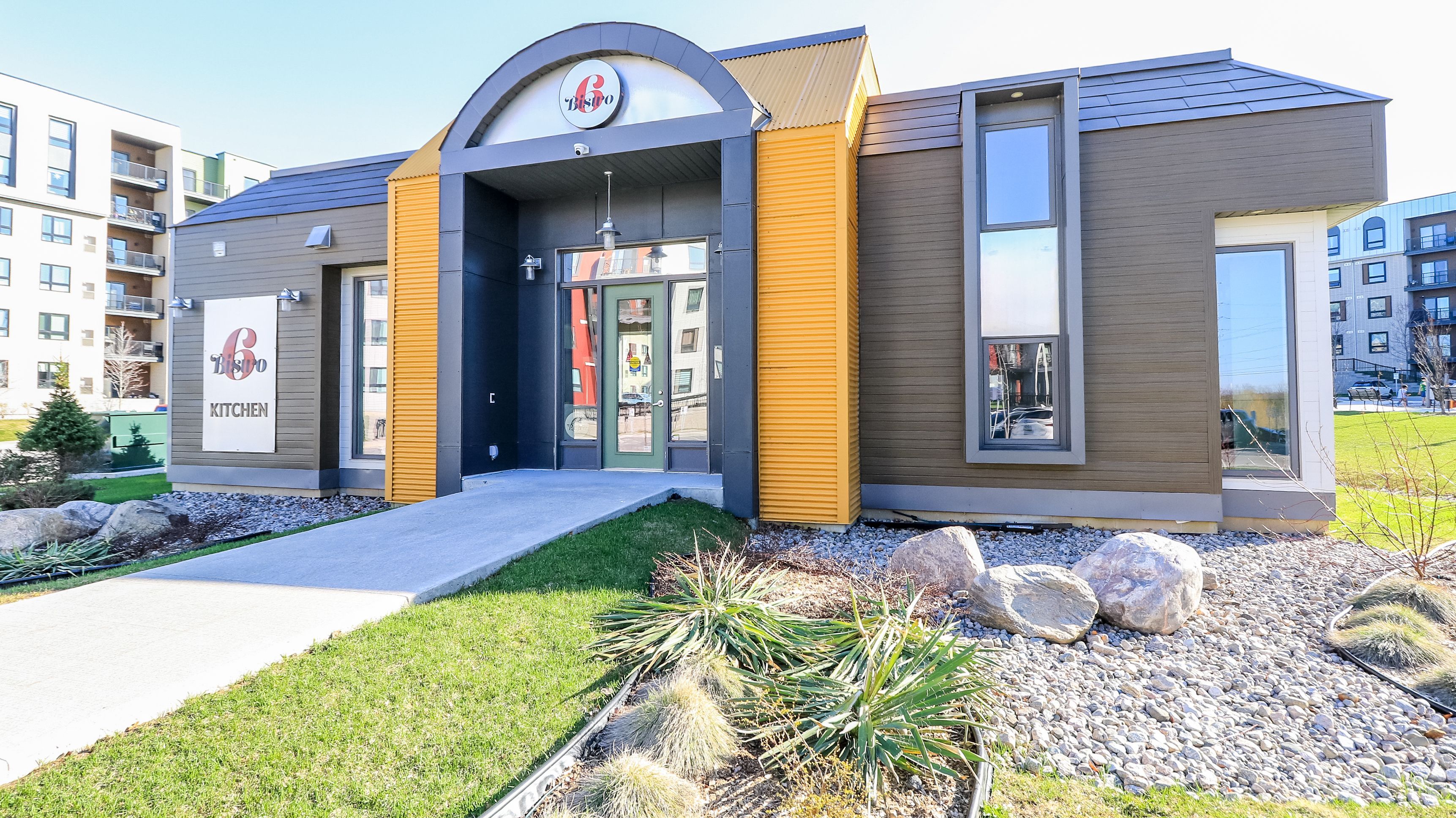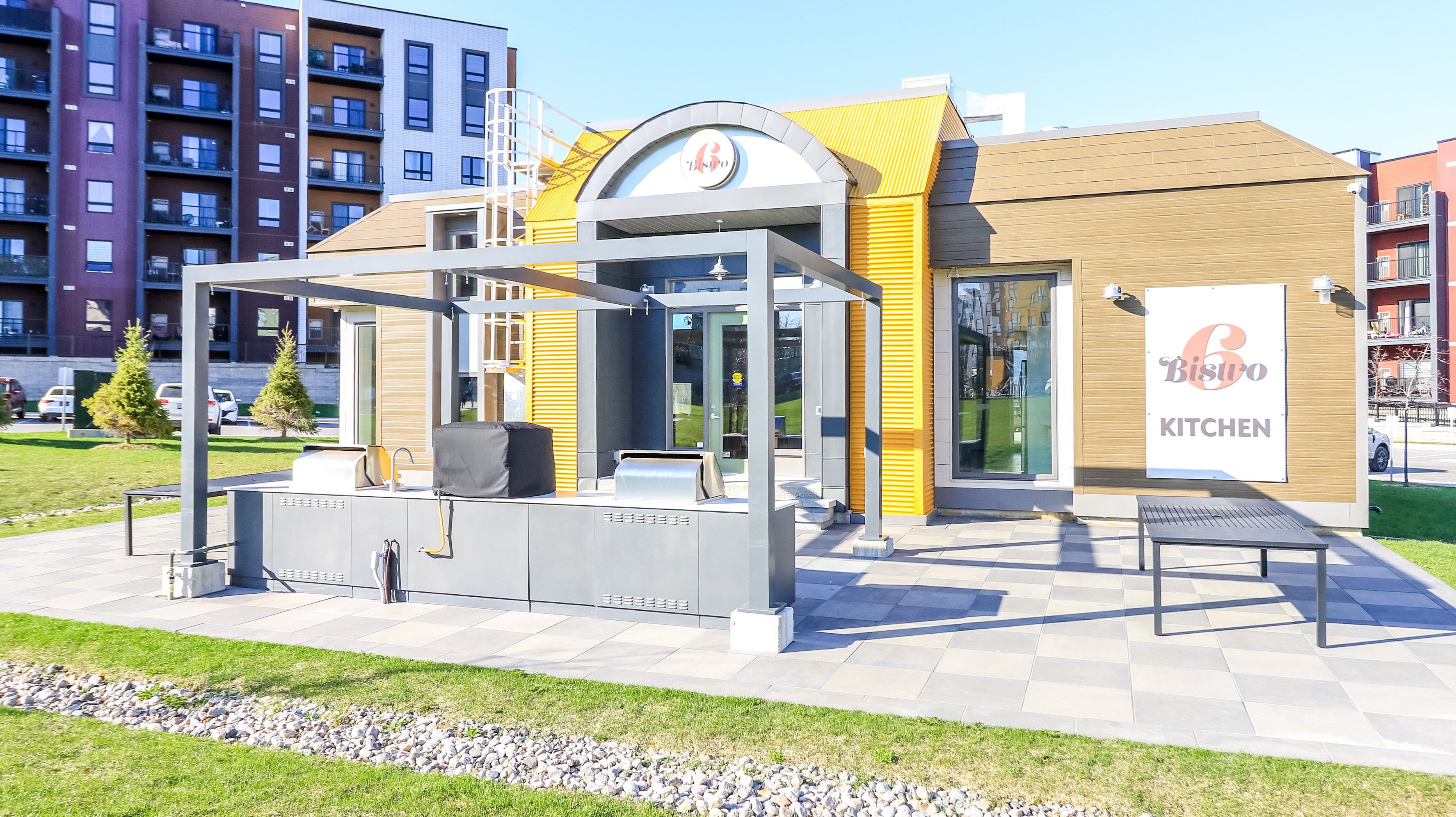 • Community amenities include a kitchen and gym for residents.