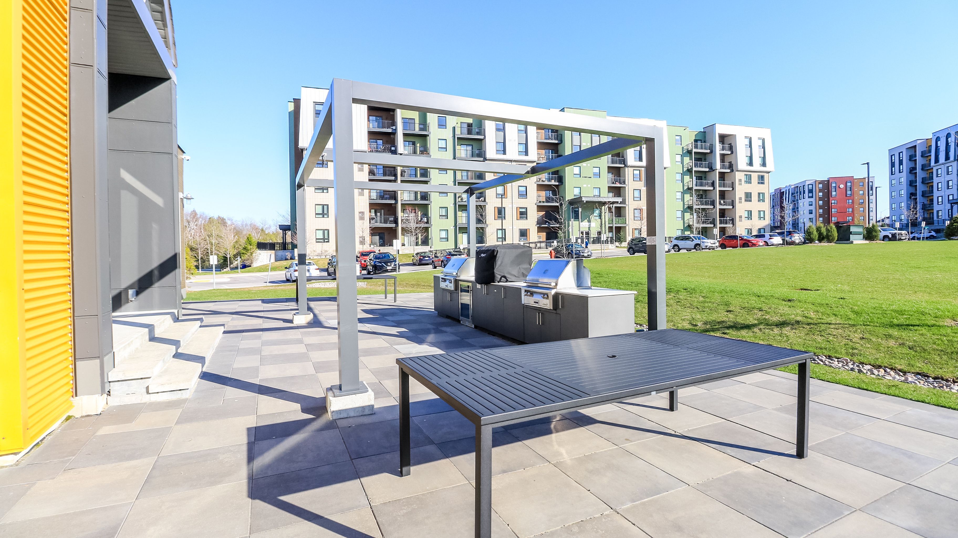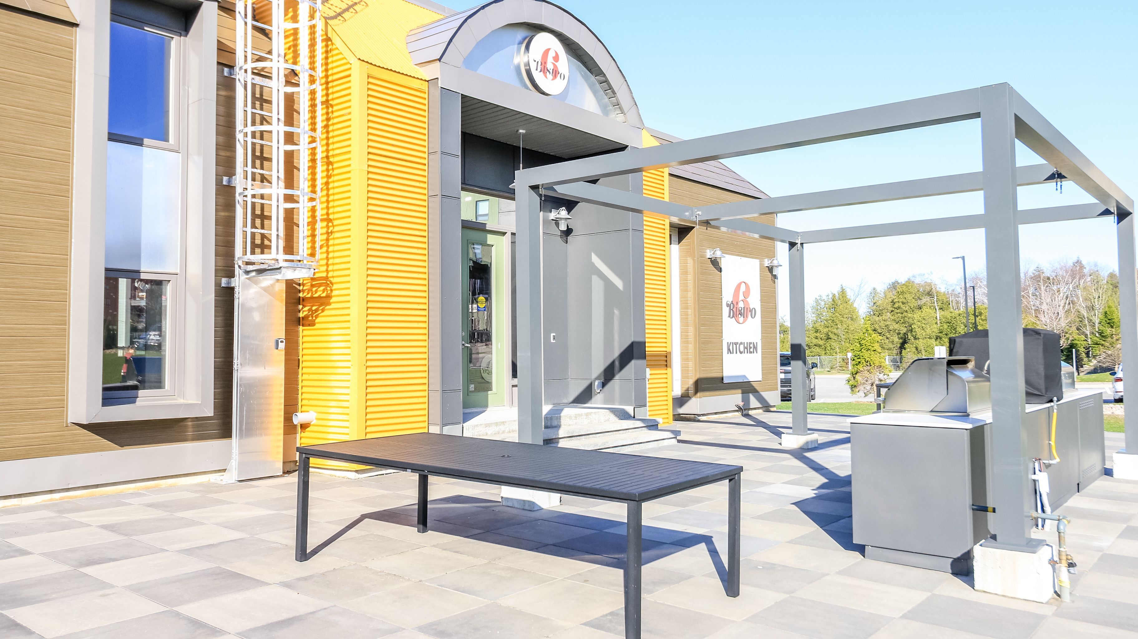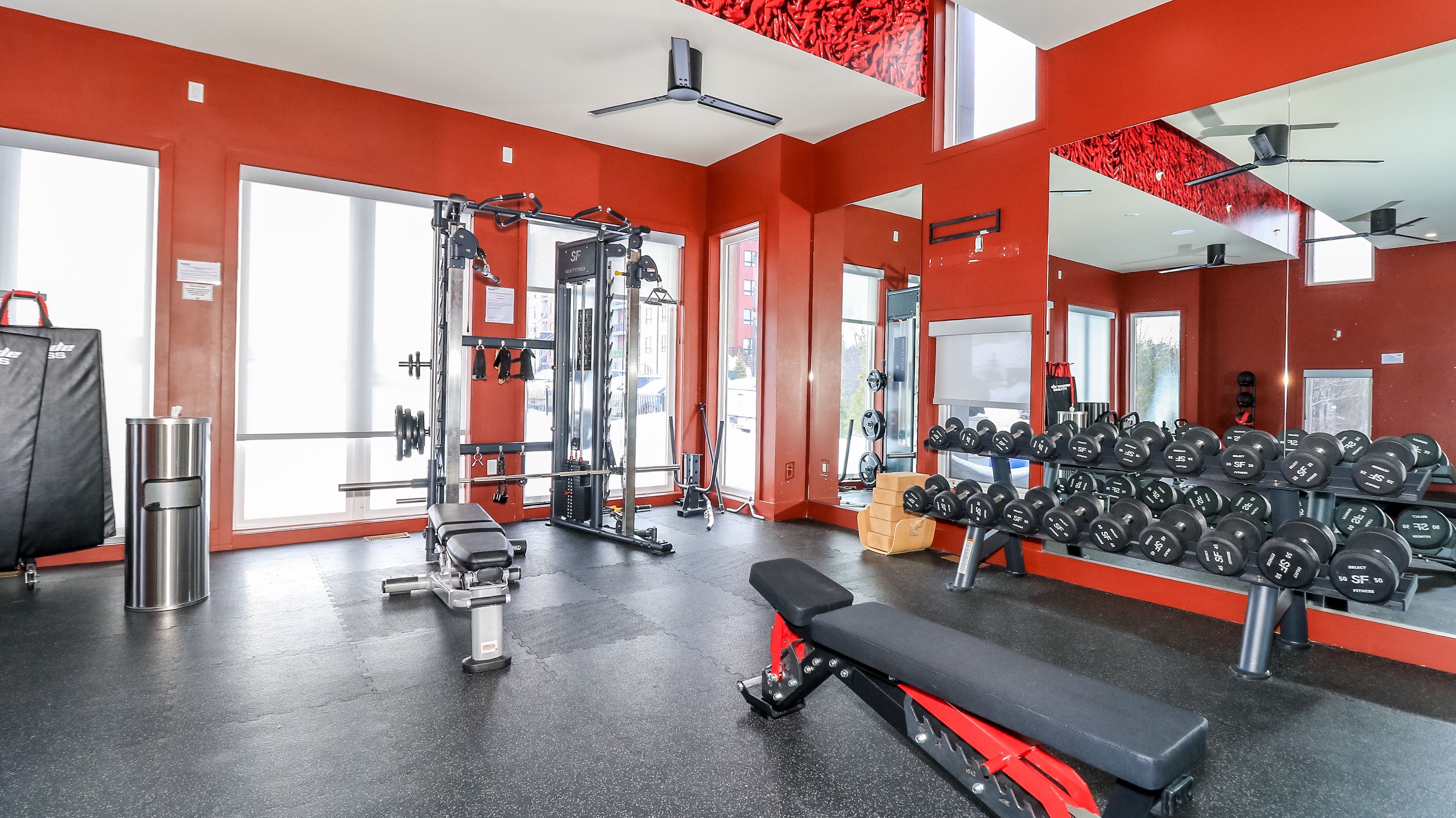 • Community amenities include a kitchen and gym for residents.
